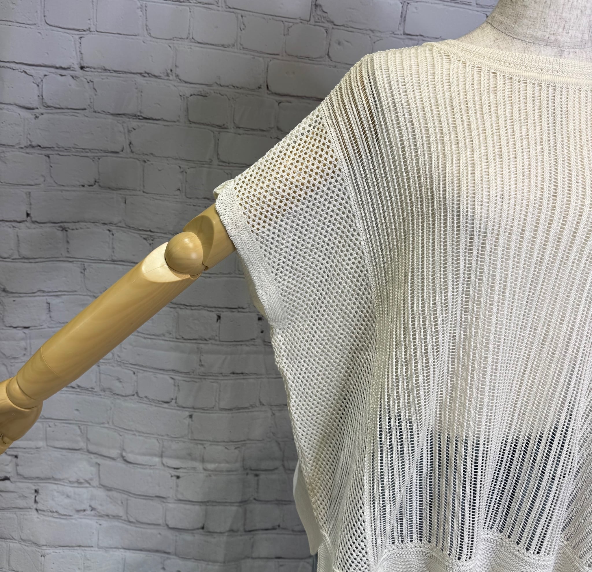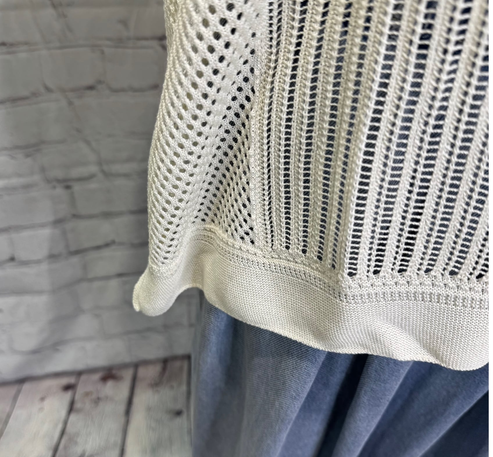 さらっとした肌触りの涼しい着心地の夏ニットです。はしご編みとメッシュ編みを組み合わせた大人な印象の透かし編みニット。クールな着こなしにおすすめです。日本製。
