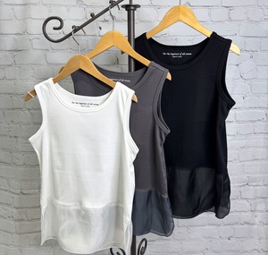 肌触りの良い本体部分と裾のシアーがポイントのタンクトップです! シアー部分はサイドにスリットが入っているので動きやすく、インナーとして着用した場合少し丈が欲しい時などレイヤードコーデができて活躍してくれるアイテムです。お家で洗えます。