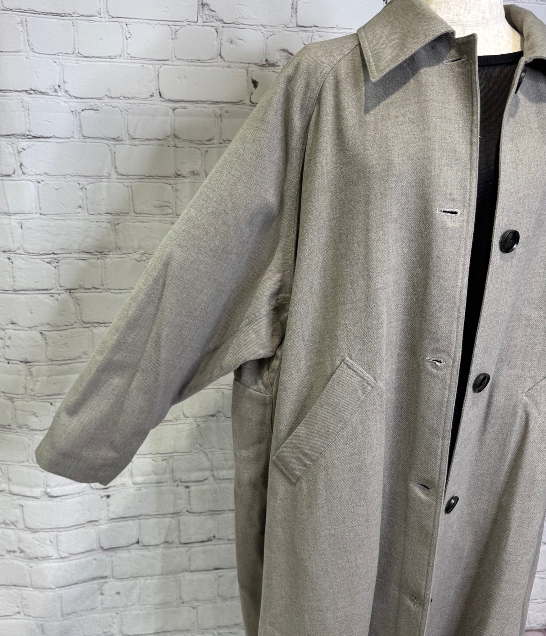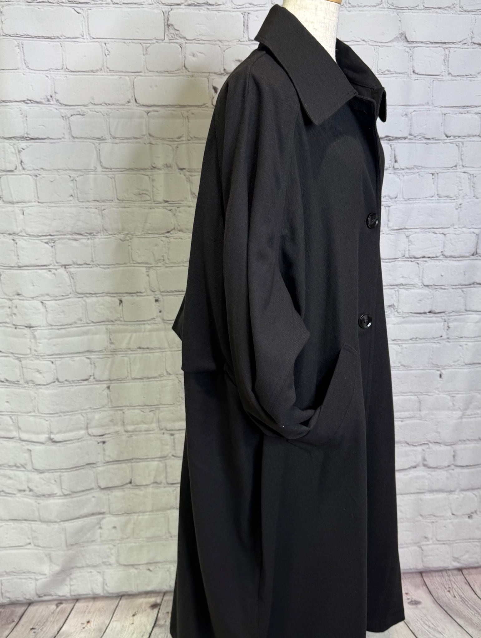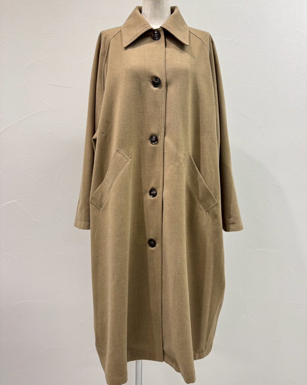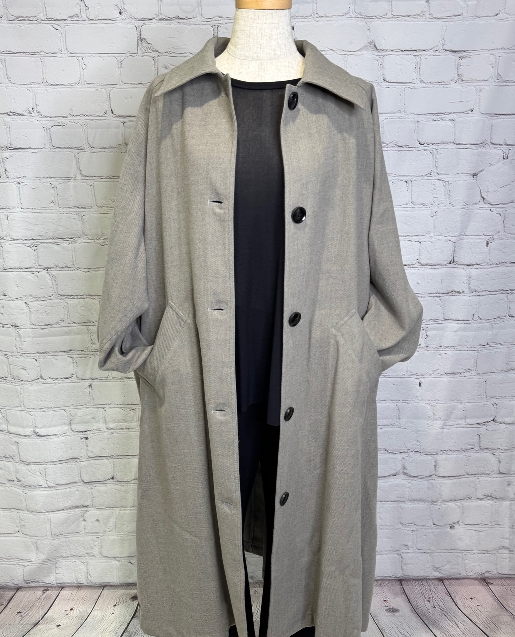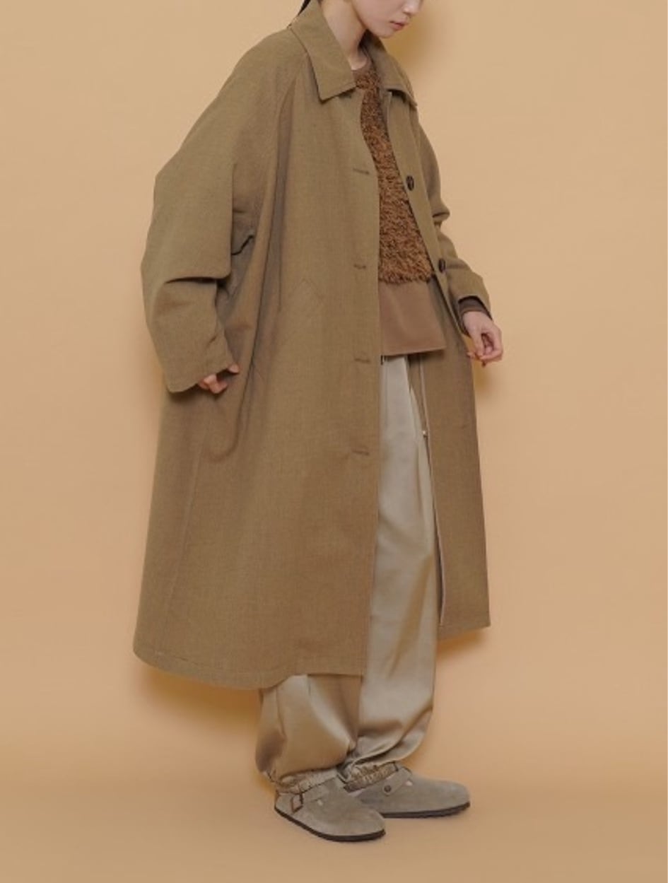 軽くて柔らかいウーリー素材のロングコートです!バックスタイルの切替デザインがポイントです。深めのバックスリット入りで足さばきも良く、サッと羽織れて、かっこ良くておすすめアイテムです。
