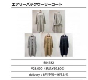 SALE!CYAN TOKYO シアントーキョー エアリーバックウーリーコート 504382