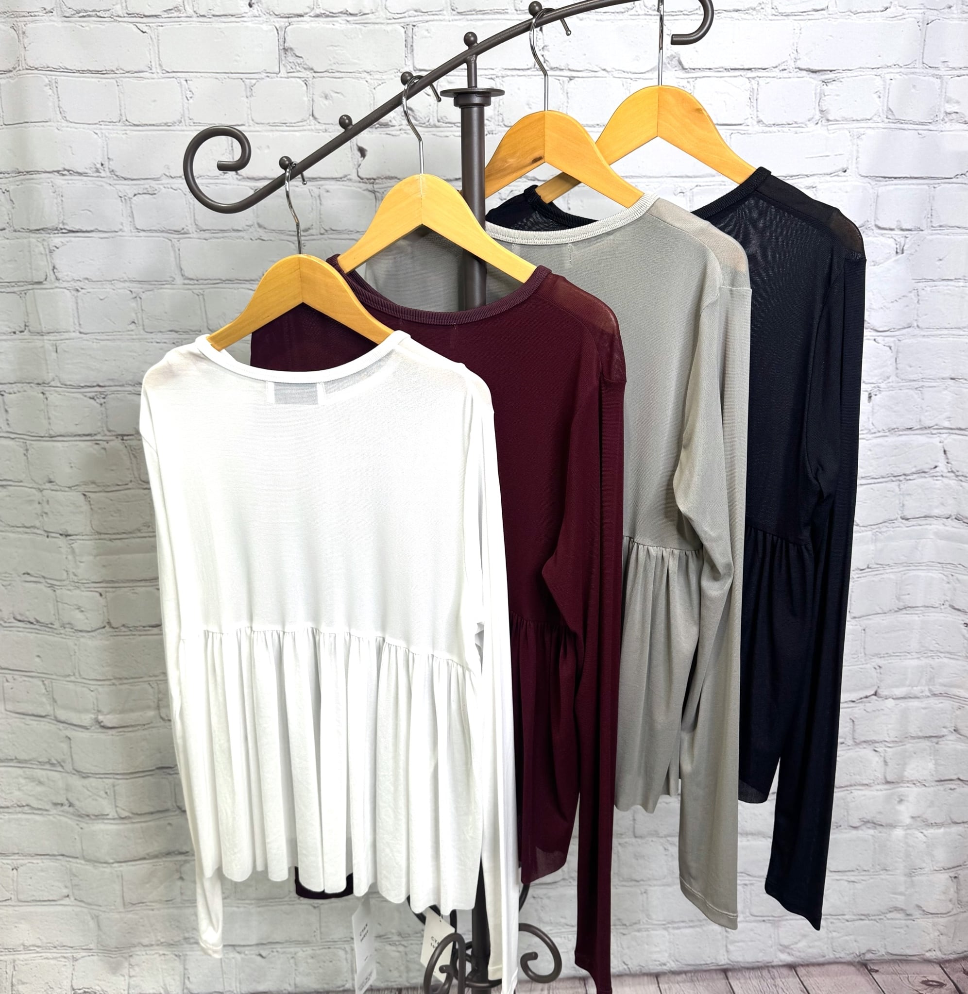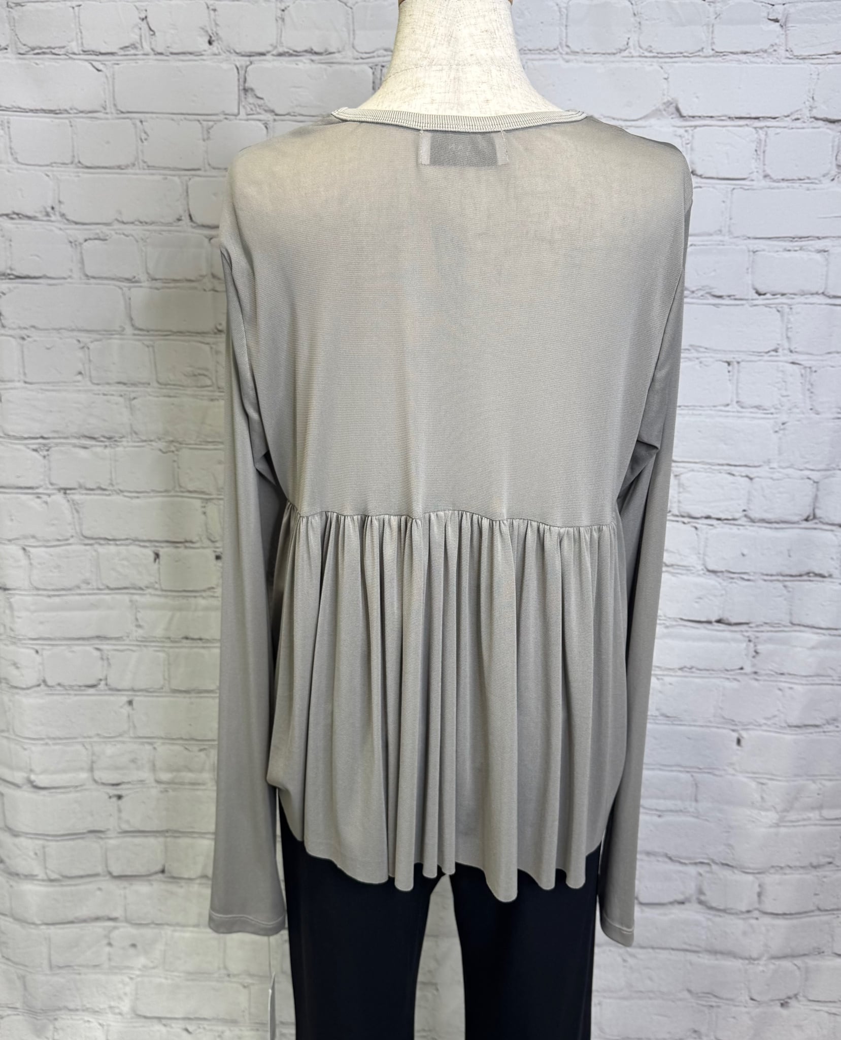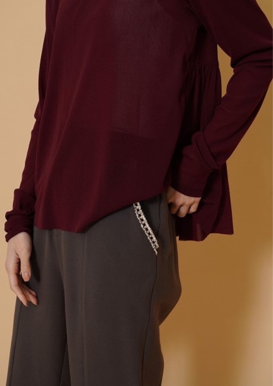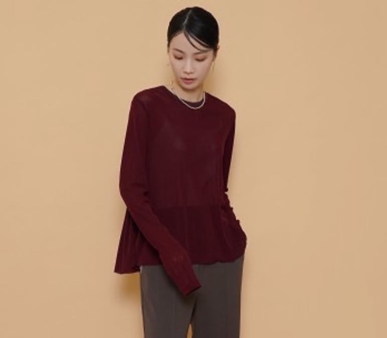 フロントはシンプルでパックギャザーがポイントのプルオーバーです。ストレッチがとても効いていて、柔らかくしなやかで繊細な高品質ナイロン生地を使用。袖口や裾からちらっと見える感じが上品で大人可愛いく、様々なアイテムのインナーに活用できる人気のおすすめ商品です。お家で洗えます。