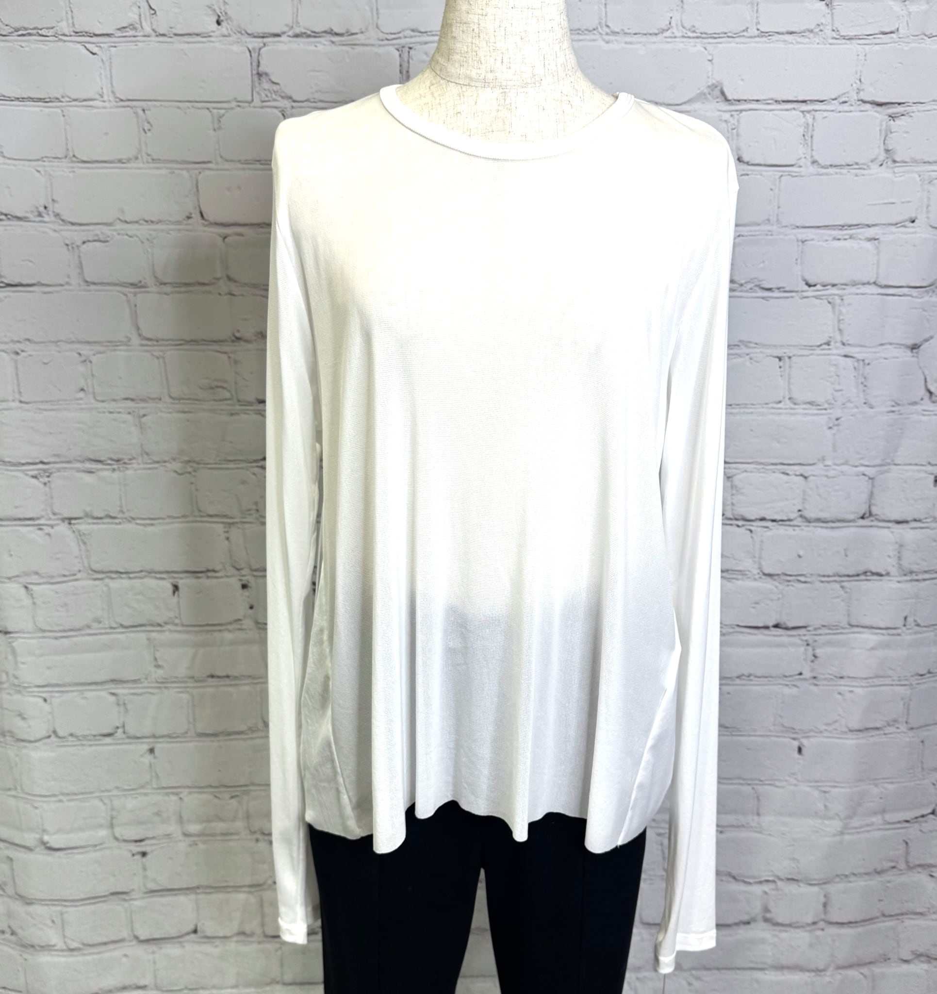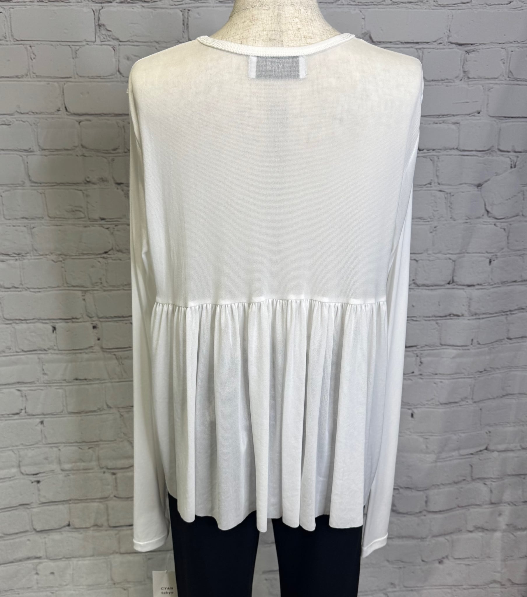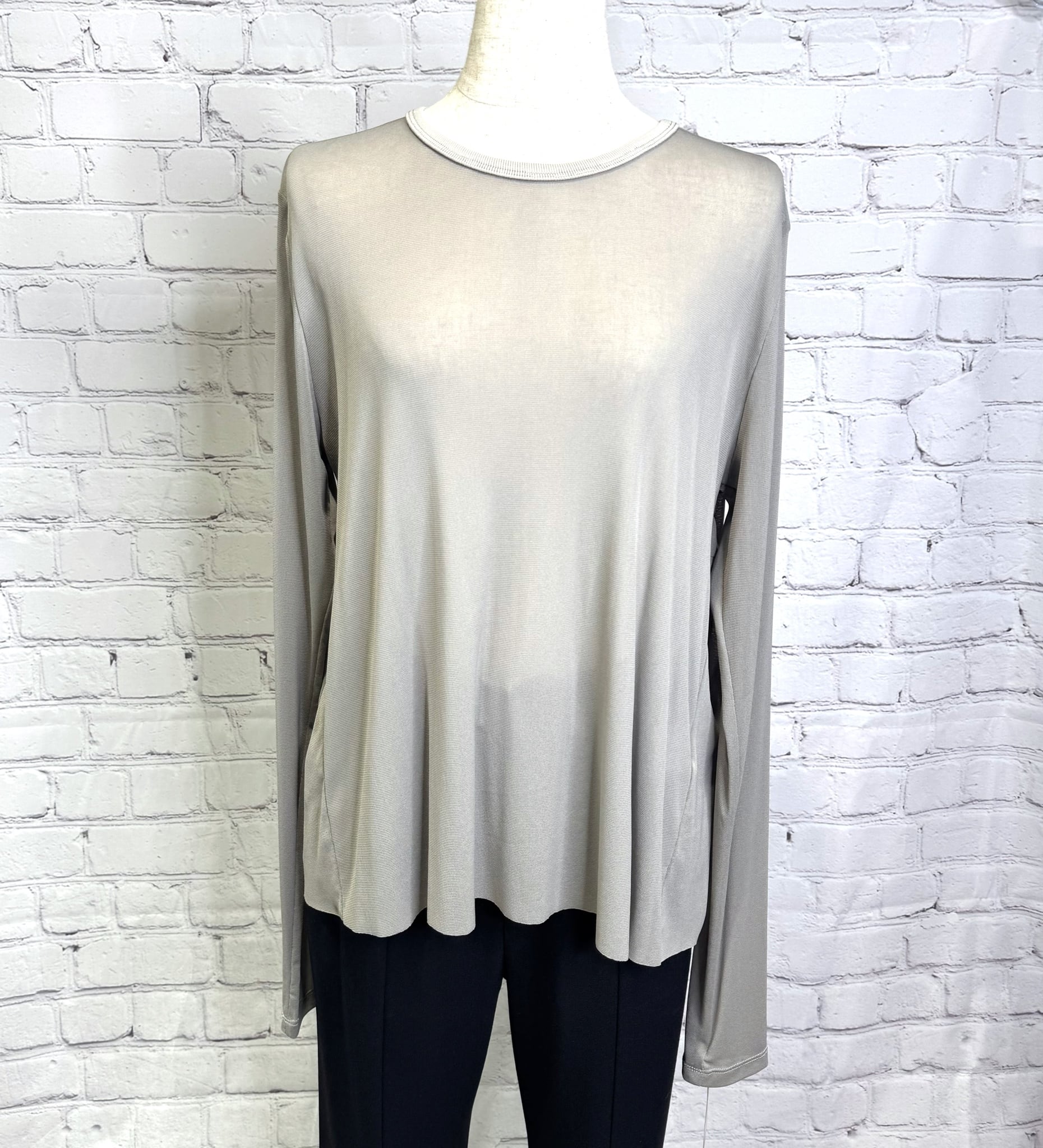 フロントはシンプルでパックギャザーがポイントのプルオーバーです。ストレッチがとても効いていて、柔らかくしなやかで繊細な高品質ナイロン生地を使用。袖口や裾からちらっと見える感じが上品で大人可愛いく、様々なアイテムのインナーに活用できる人気のおすすめ商品です。お家で洗えます。
