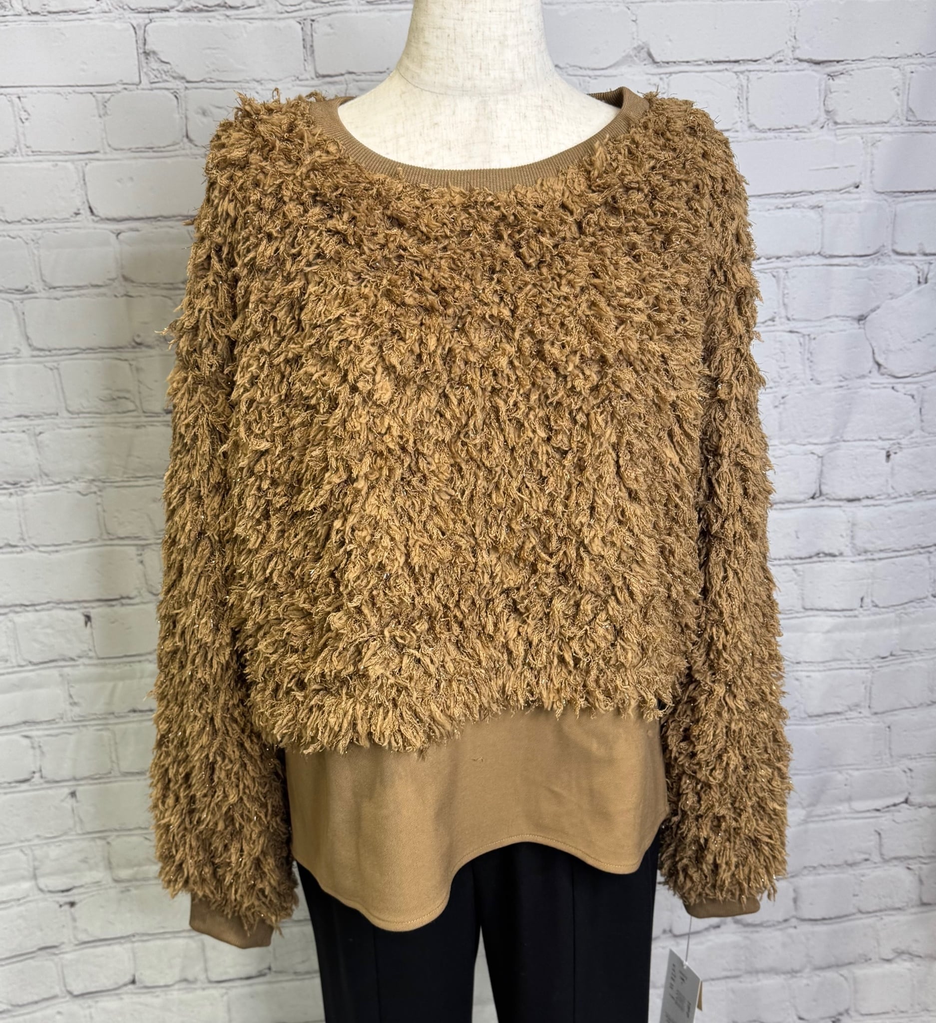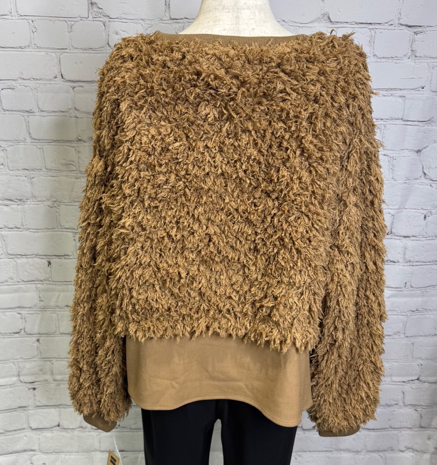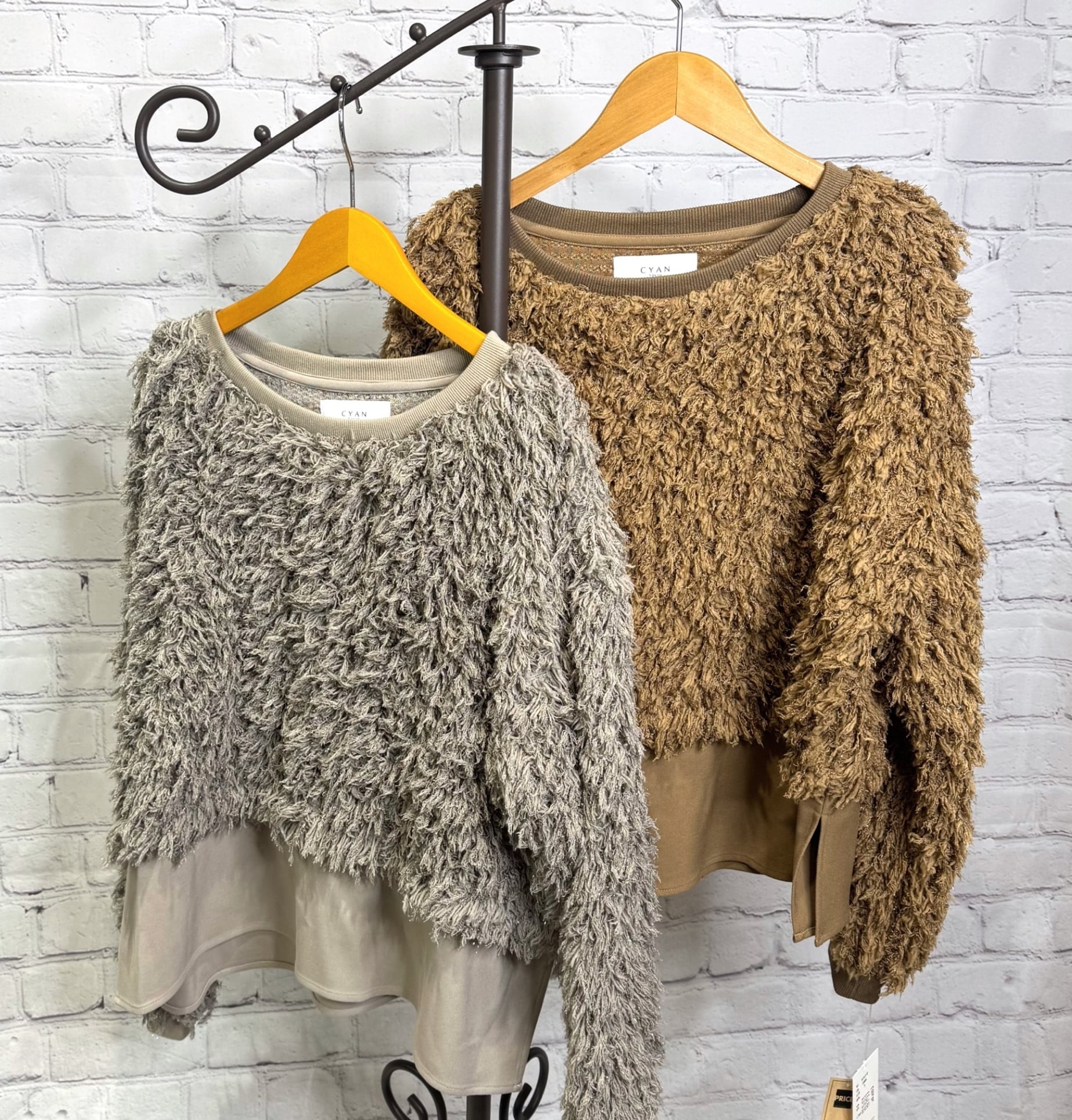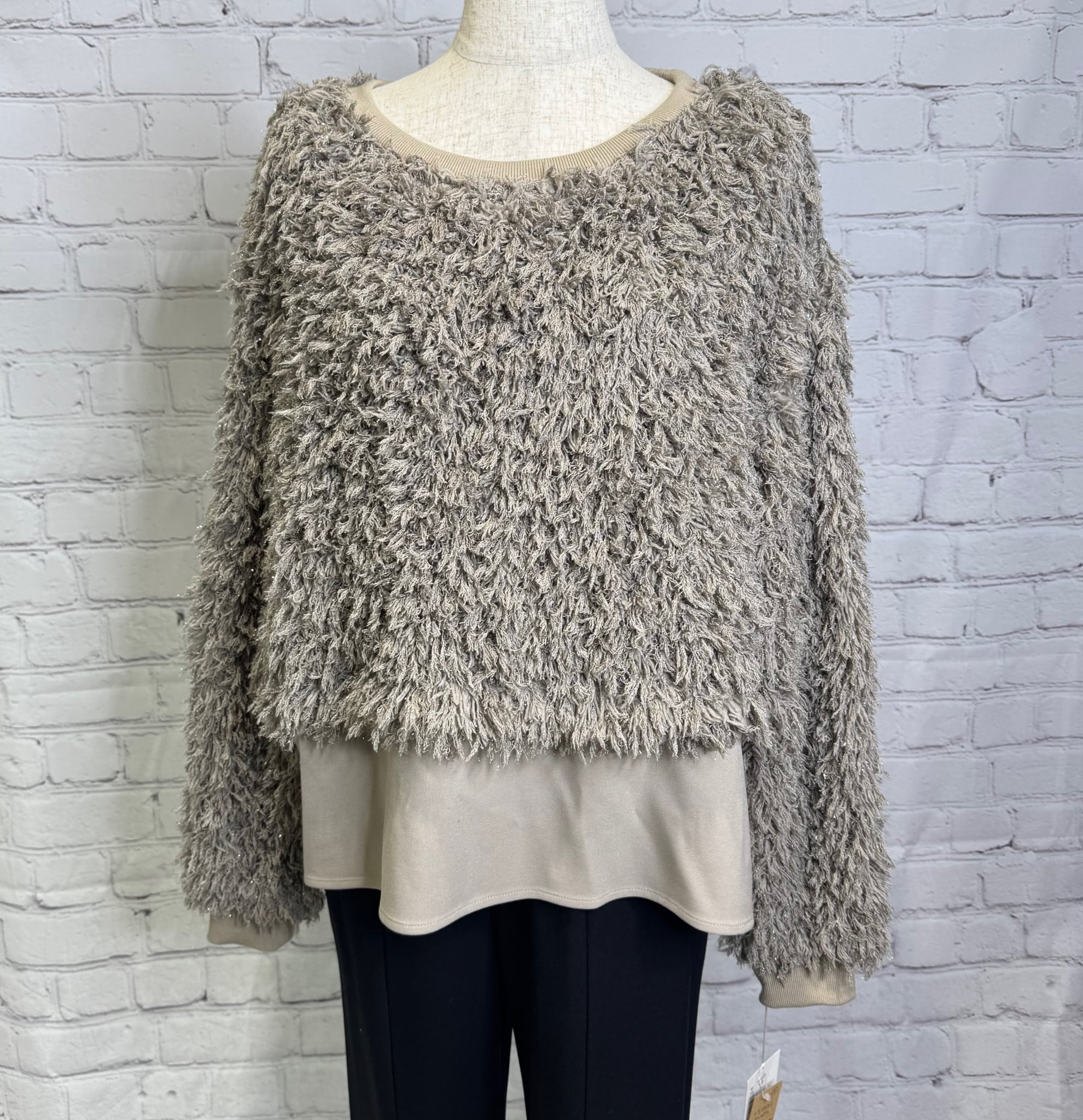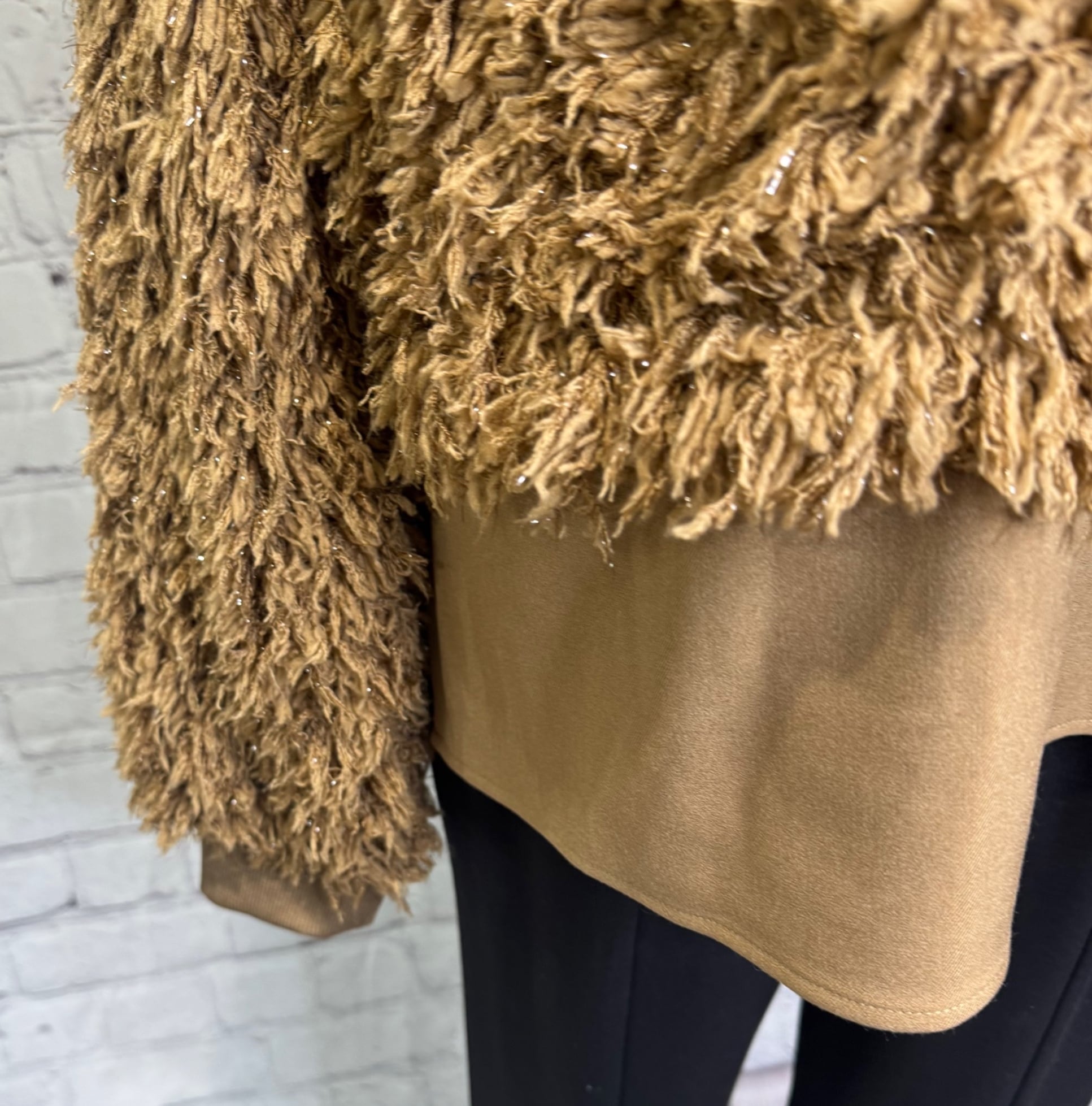 程よいラメが入ったボアシャギーブラウスです。裾の部分に別布をドッキングさせてウエストまわりをスッキリみせてくれます。袖口リブも嬉しいポイント!