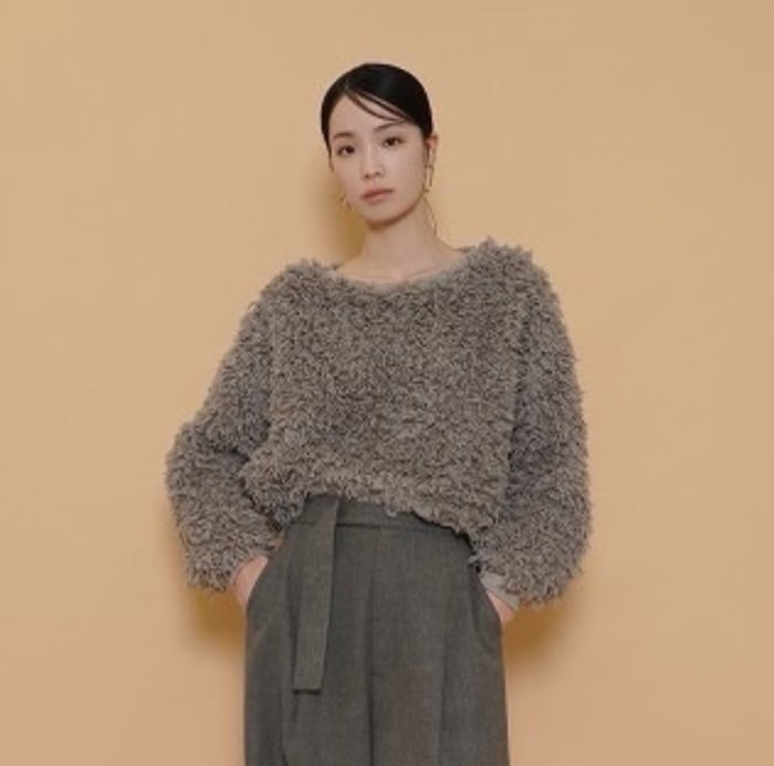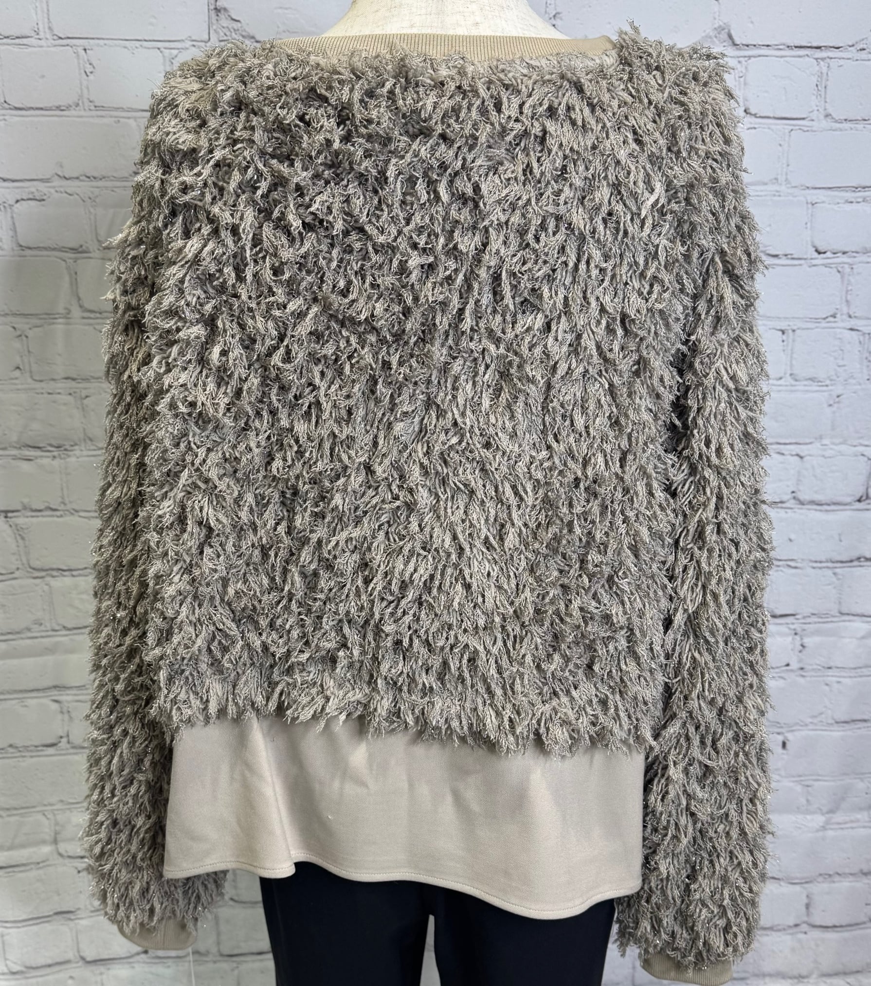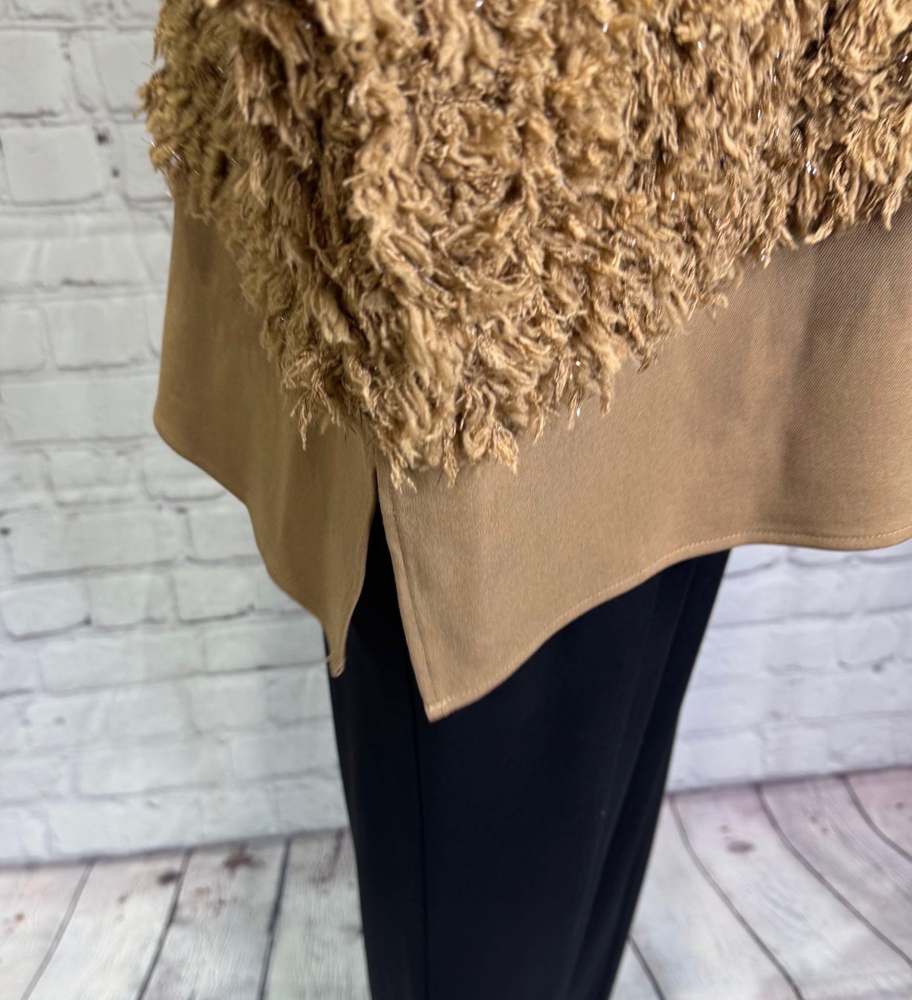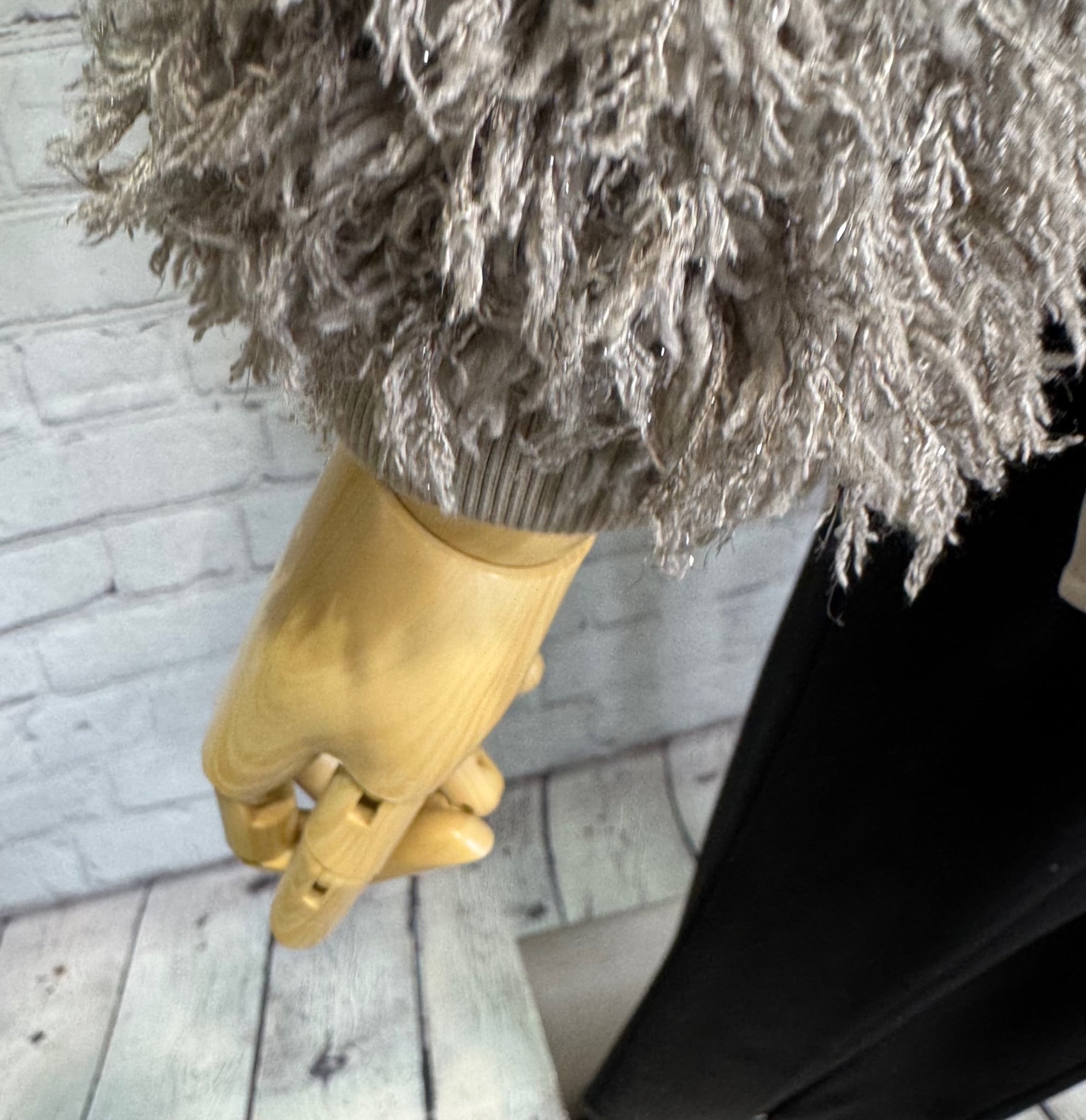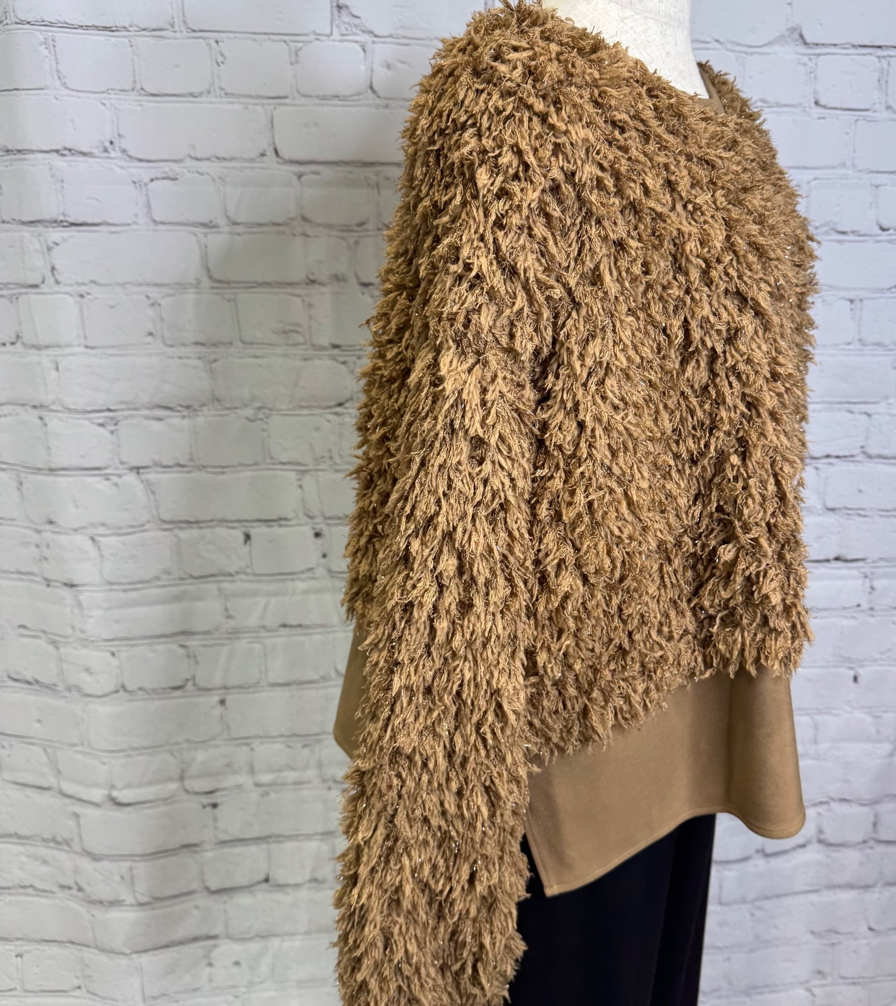程よいラメが入ったボアシャギーブラウスです。裾の部分に別布をドッキングさせてウエストまわりをスッキリみせてくれます。袖口リブも嬉しいポイント!