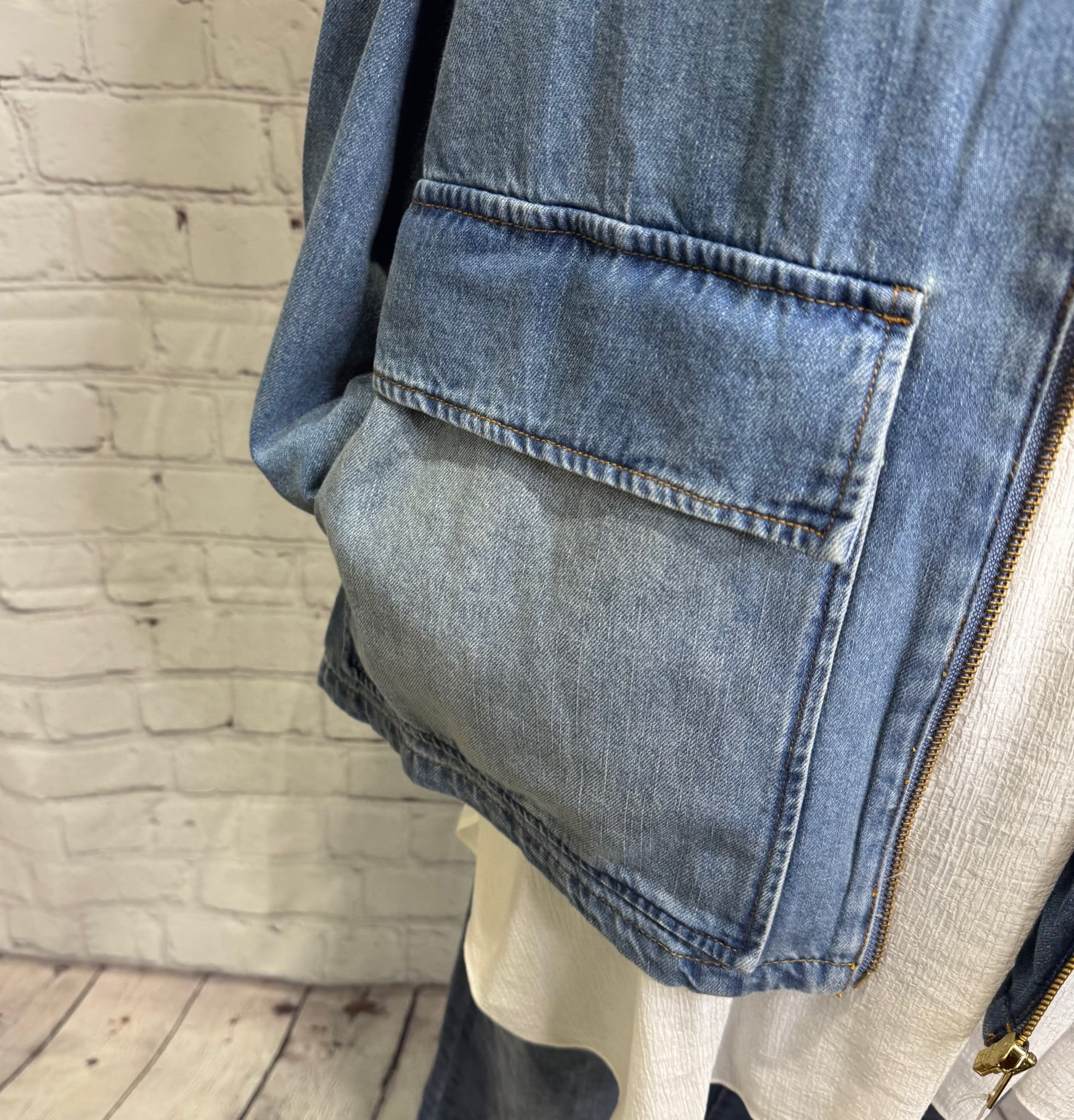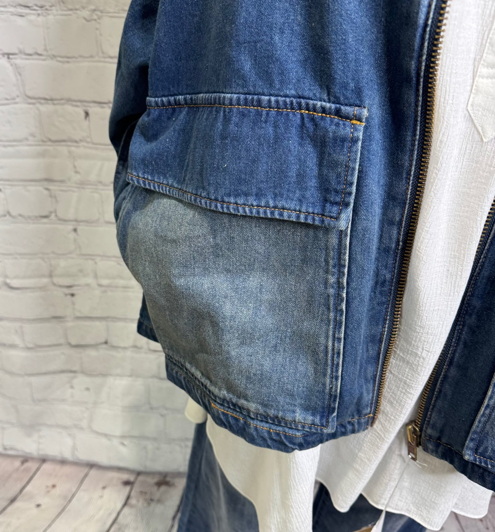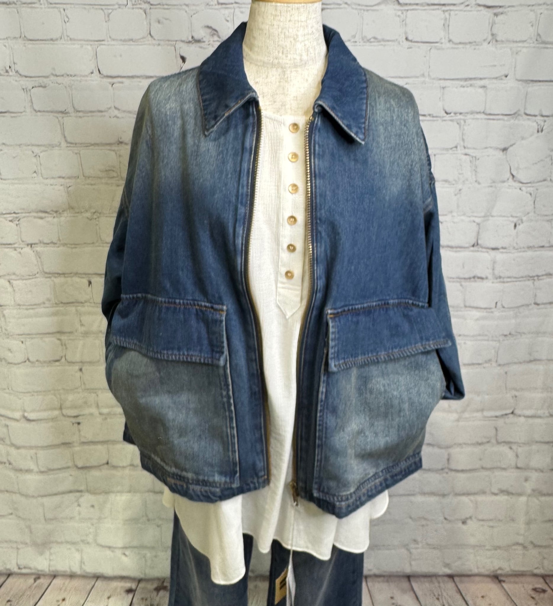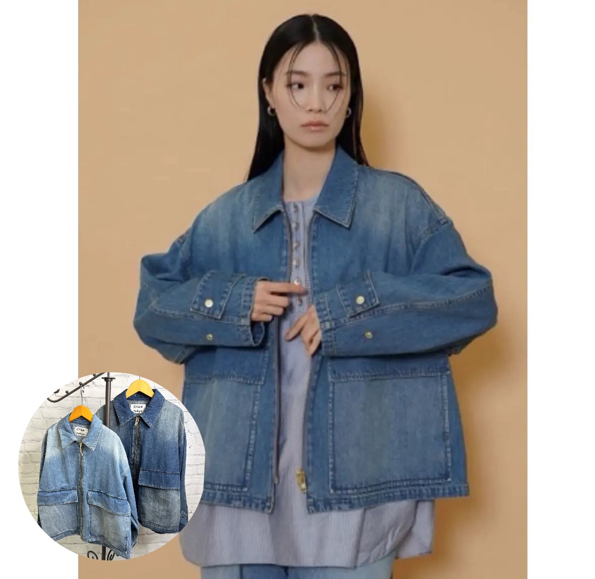 ゆったりシルエットで、BIGポケットがポイントのデニムブルゾンです。ZIP開閉で着心地も良く、さっと羽織るだけでトレンド感がでておしゃれ見えしてくれます。お家で洗えます。