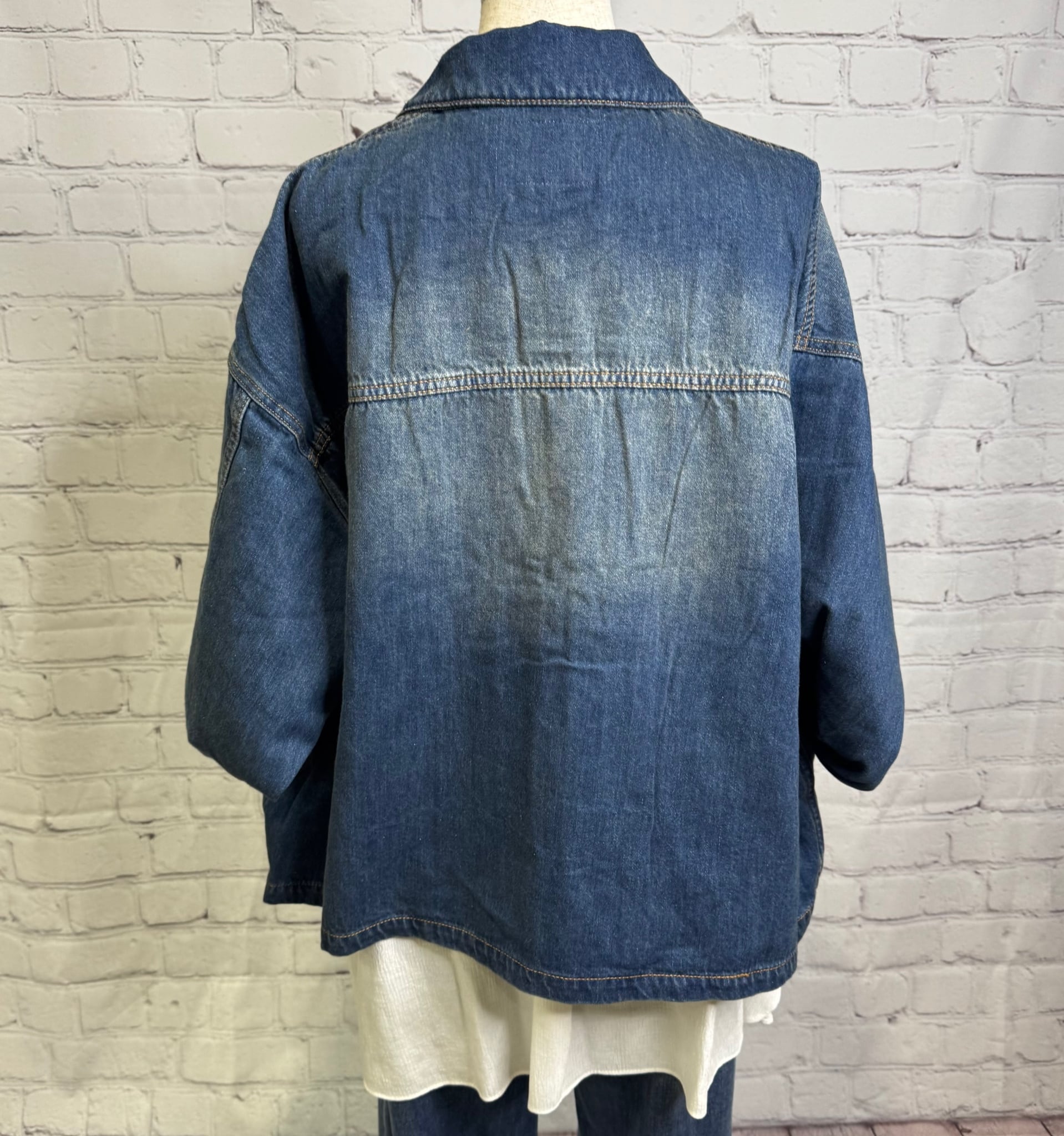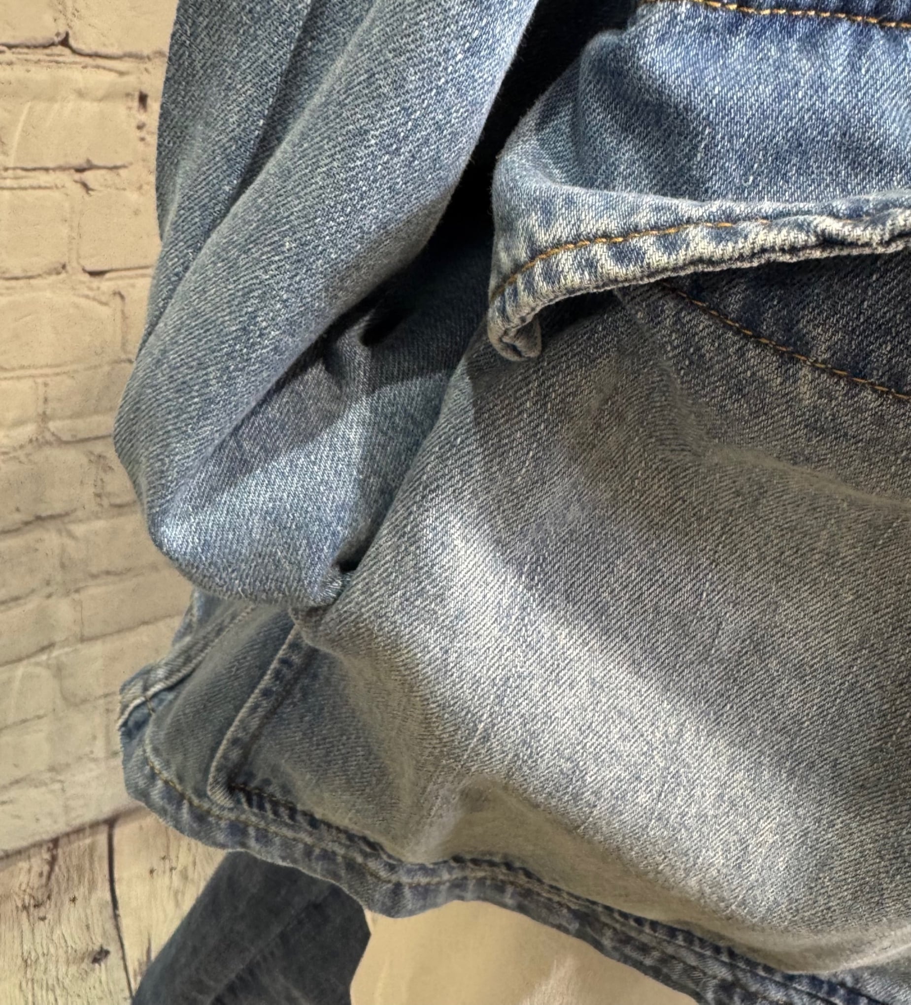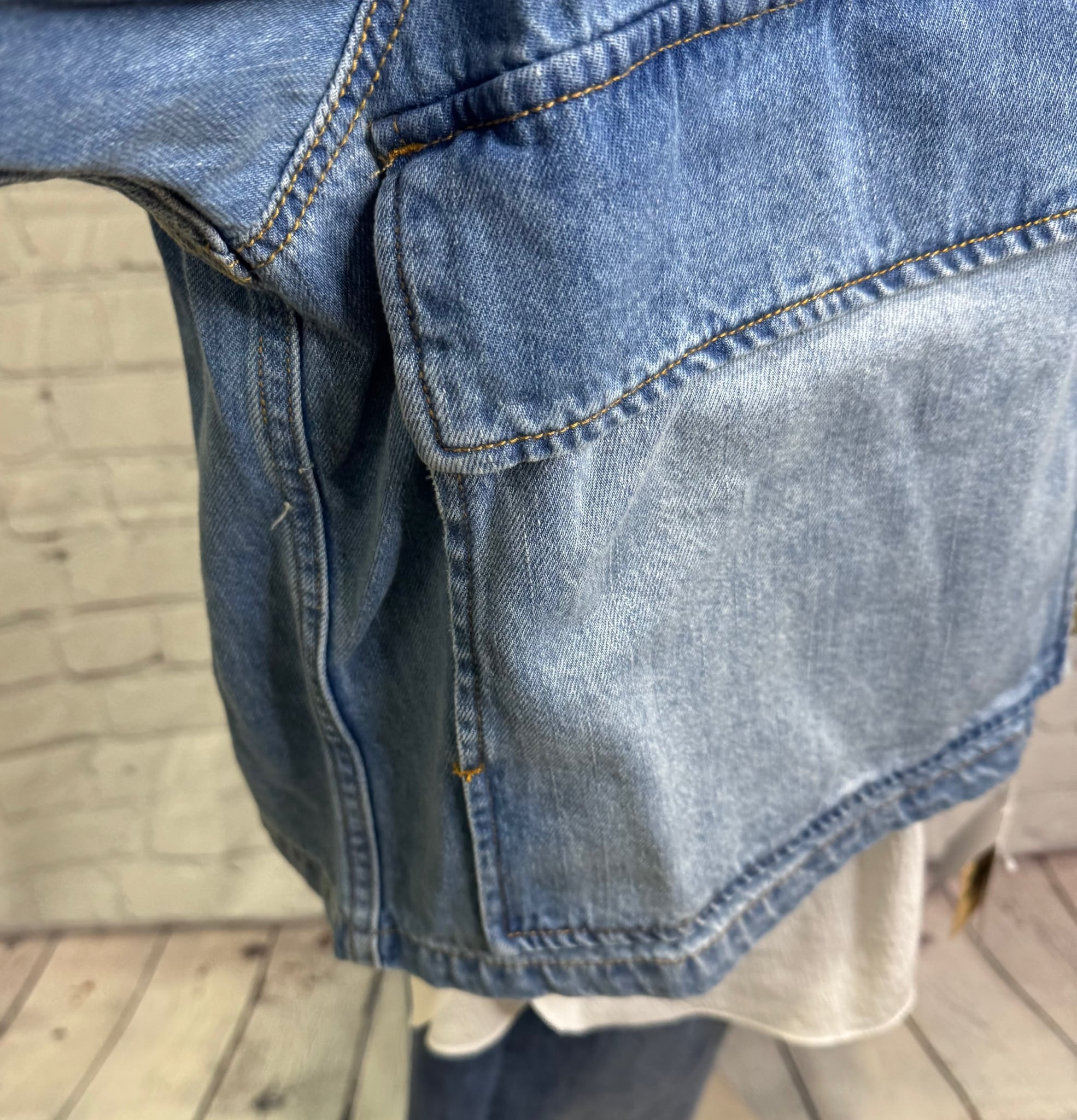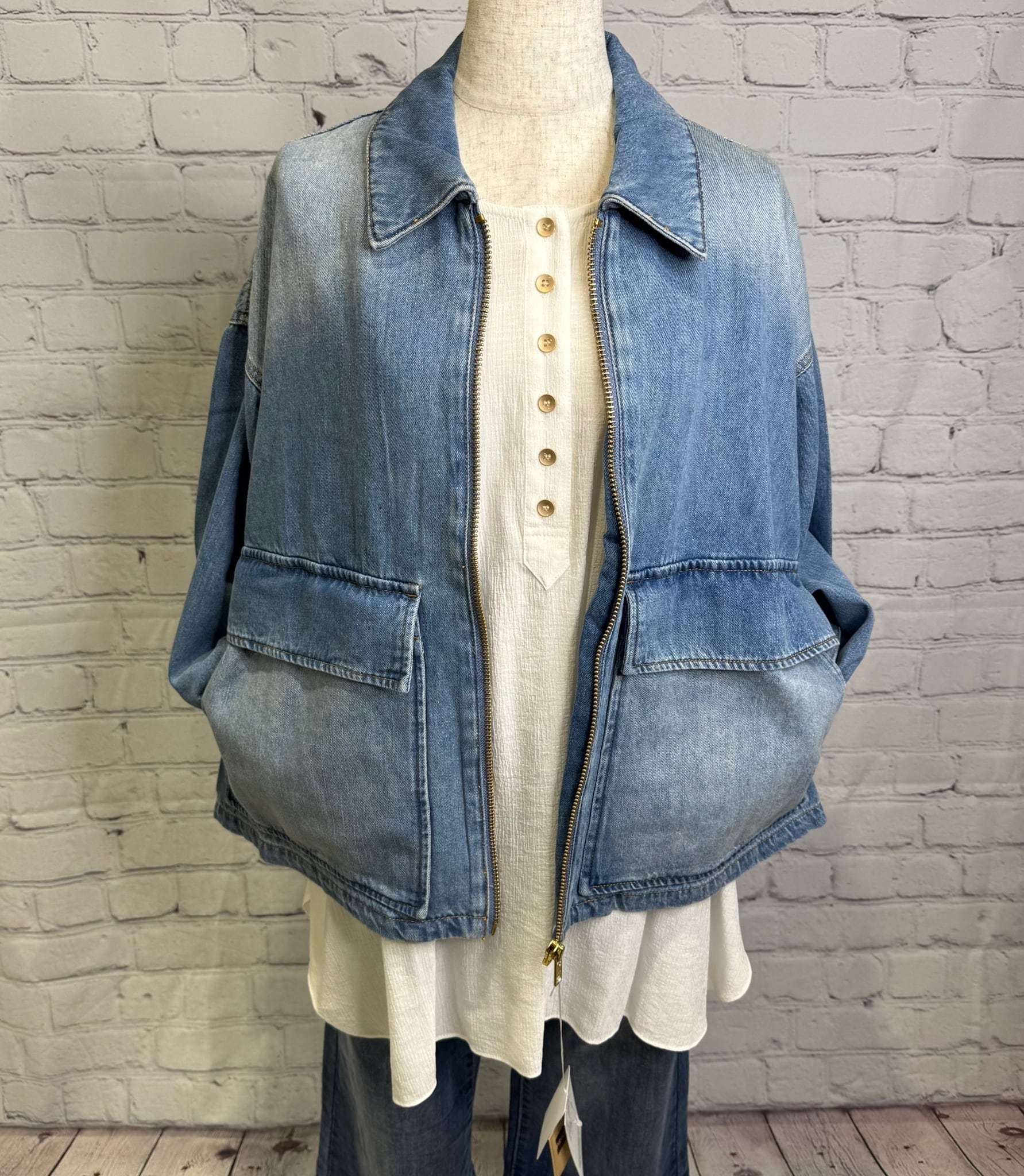 ゆったりシルエットで、BIGポケットがポイントのデニムブルゾンです。ZIP開閉で着心地も良く、さっと羽織るだけでトレンド感がでておしゃれ見えしてくれます。お家で洗えます。