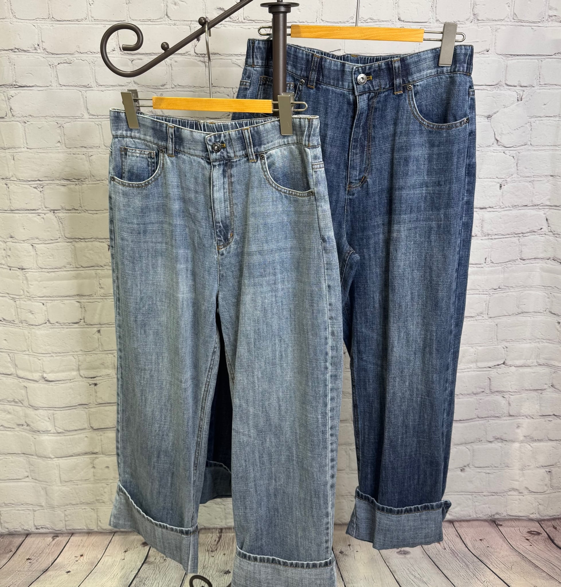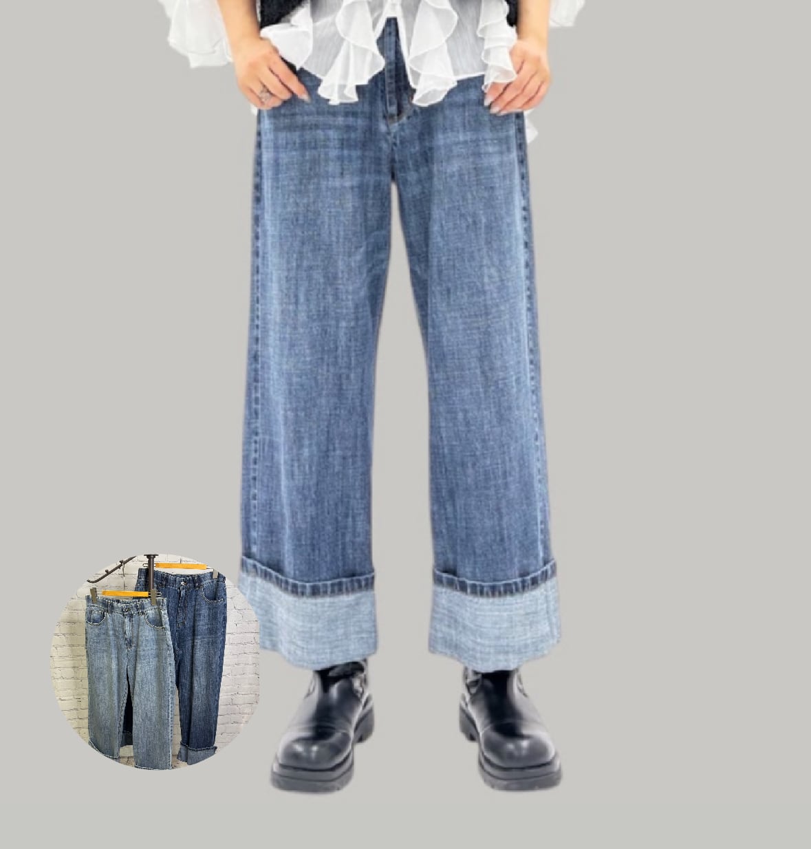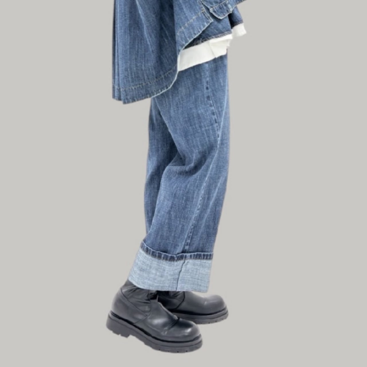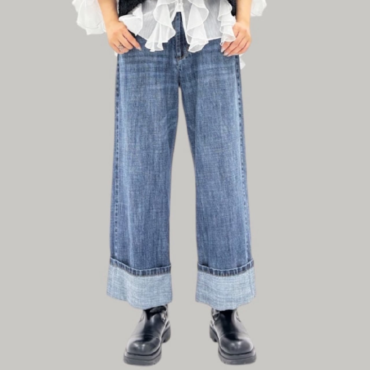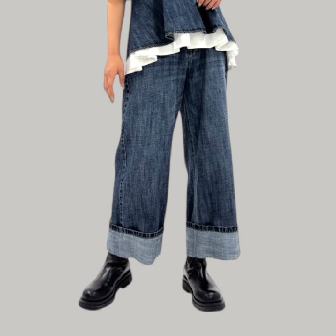 リネン混のハイクオリティなデニム素材です。軽量で柔らかく加工感が大人っぽい印象に仕上がります。裾をお好きな長さに折り返していただけます。ayane的には深めにターンバックしたままの感じでワンサイズアップしてゆるっとコーデがおすすめです。