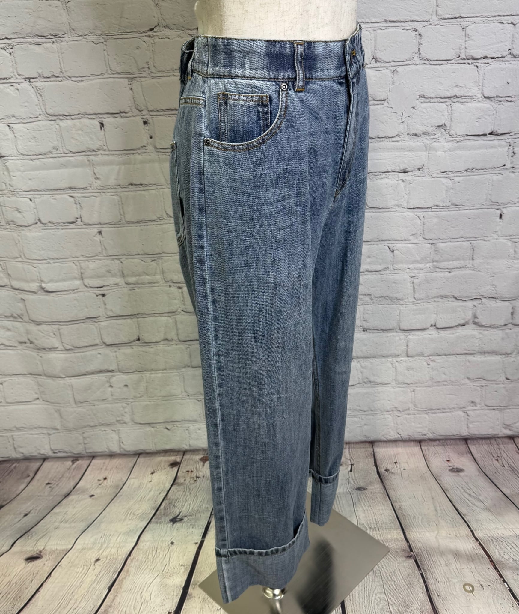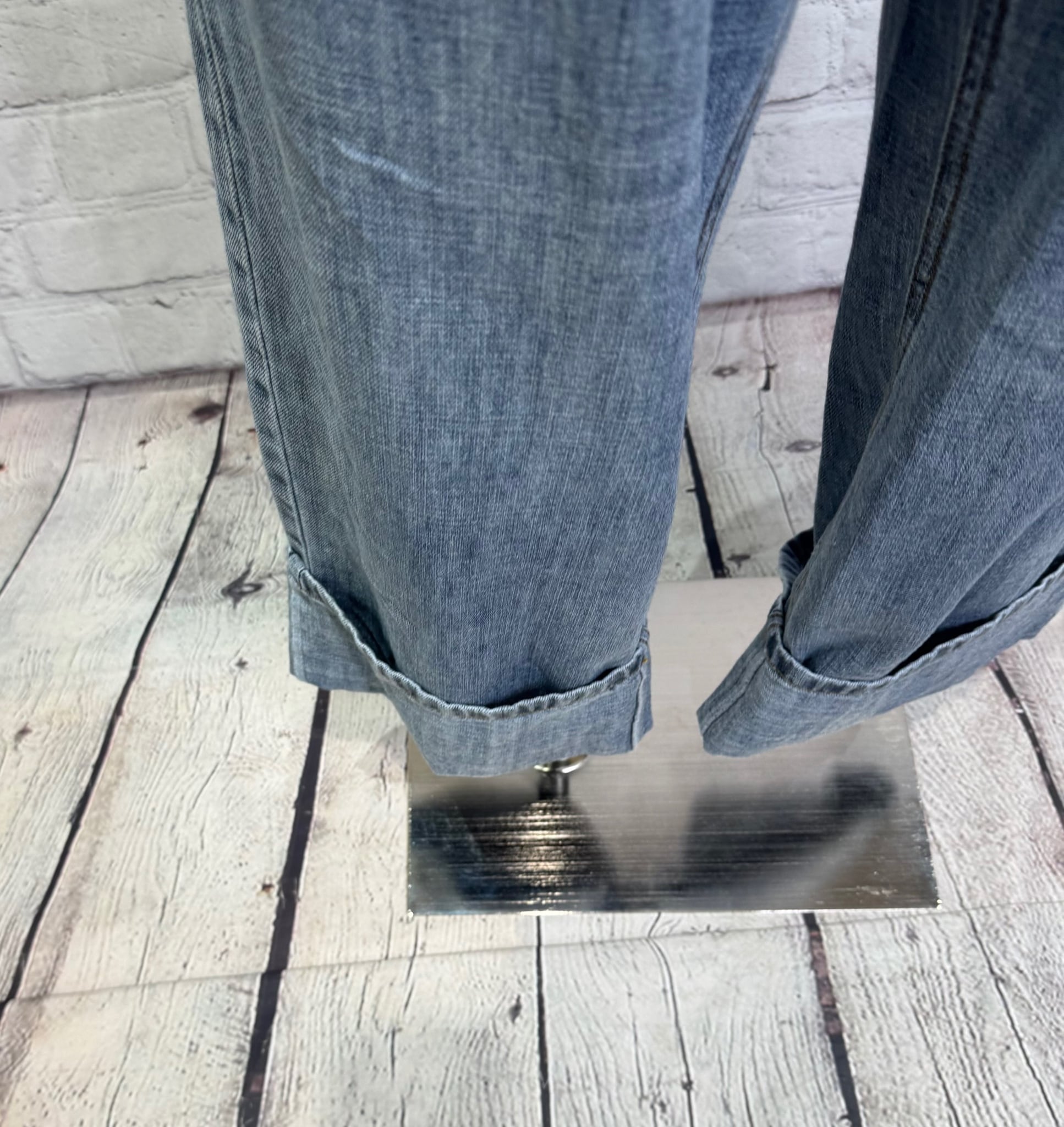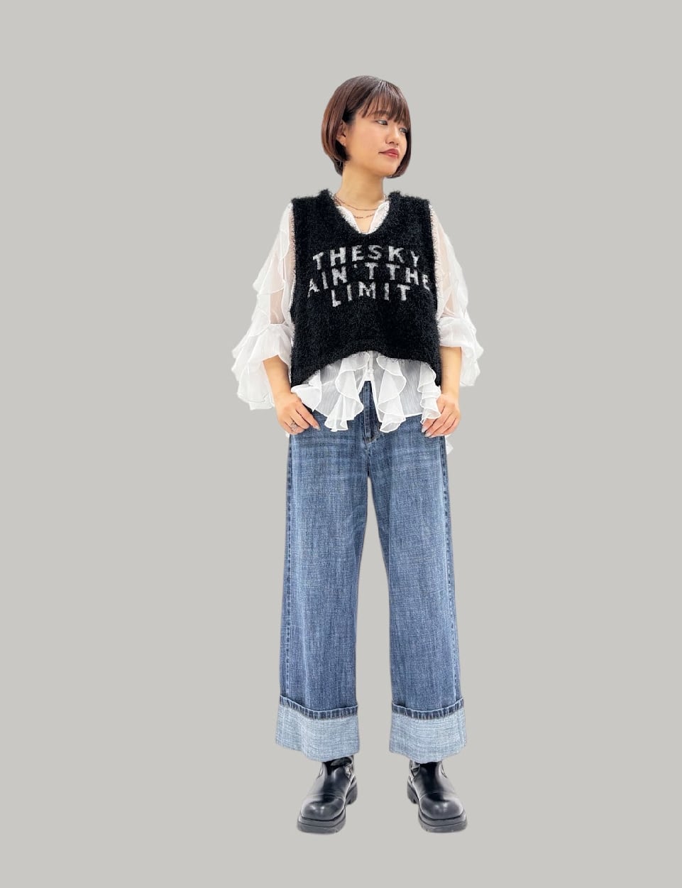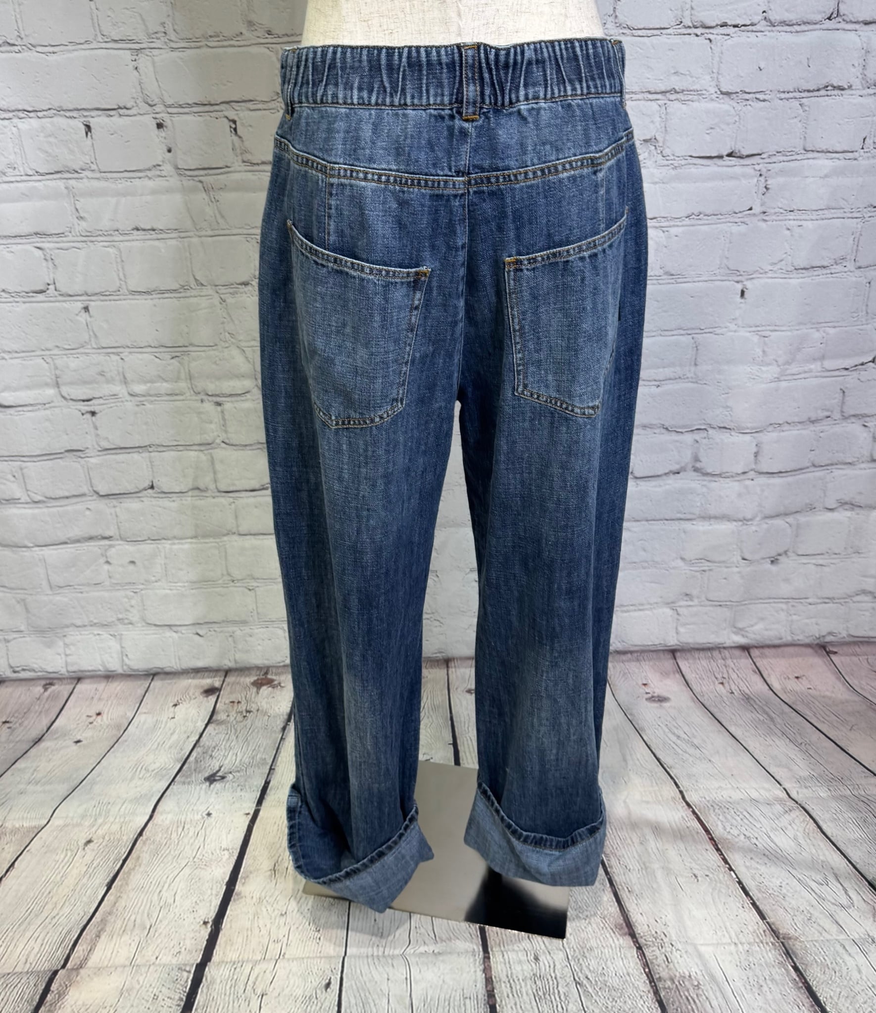 リネン混のハイクオリティなデニム素材です。軽量で柔らかく加工感が大人っぽい印象に仕上がります。裾をお好きな長さに折り返していただけます。ayane的には深めにターンバックしたままの感じでワンサイズアップしてゆるっとコーデがおすすめです。