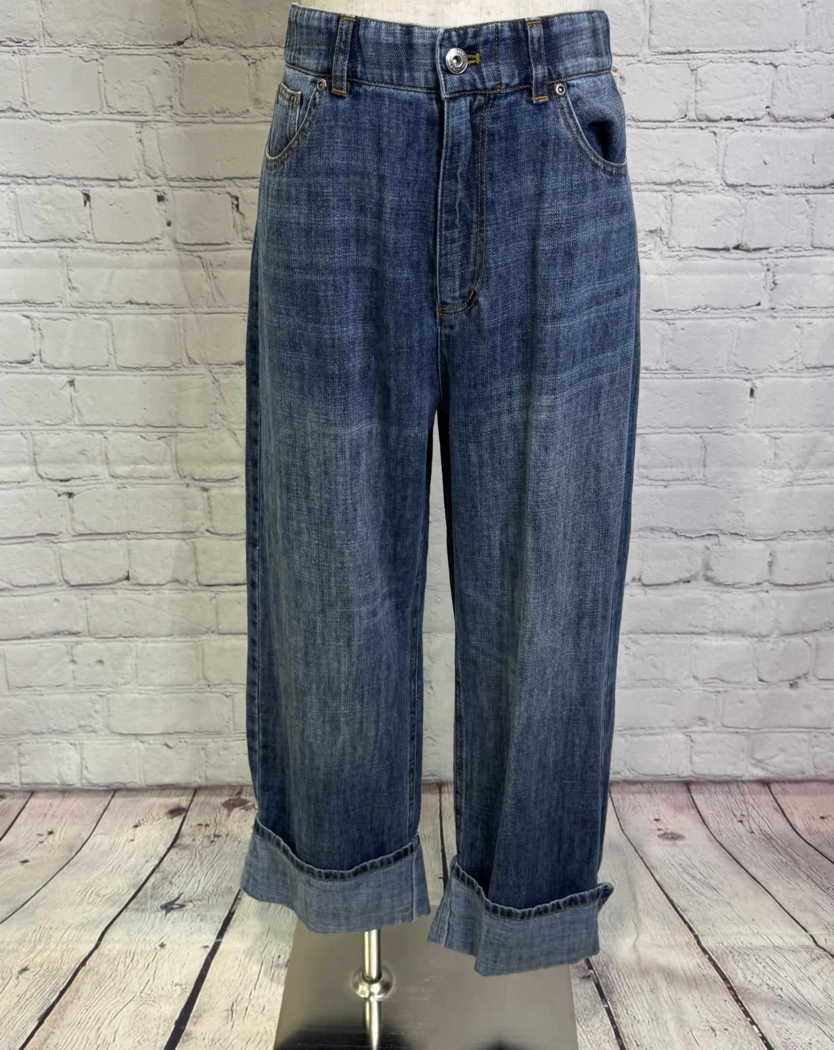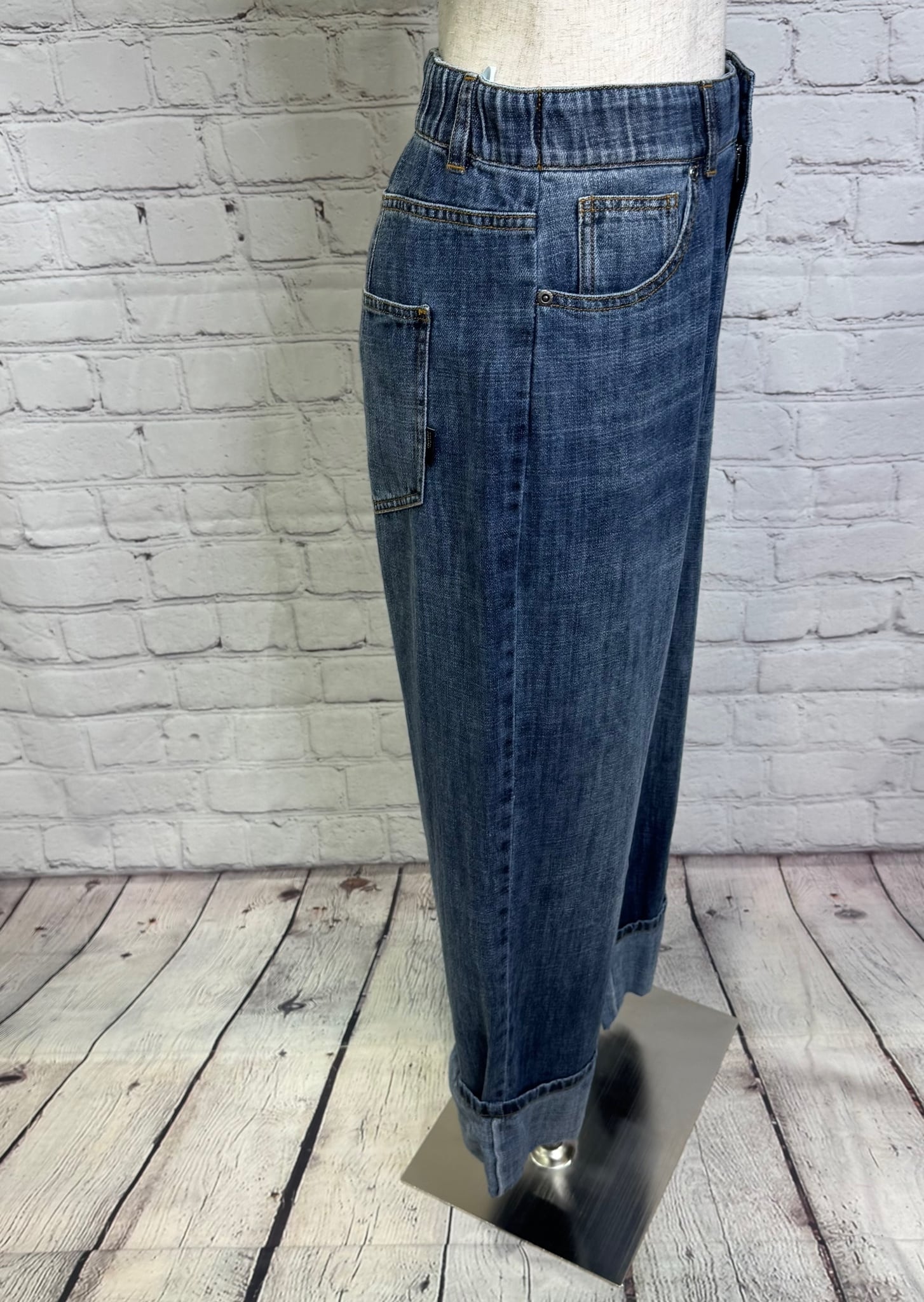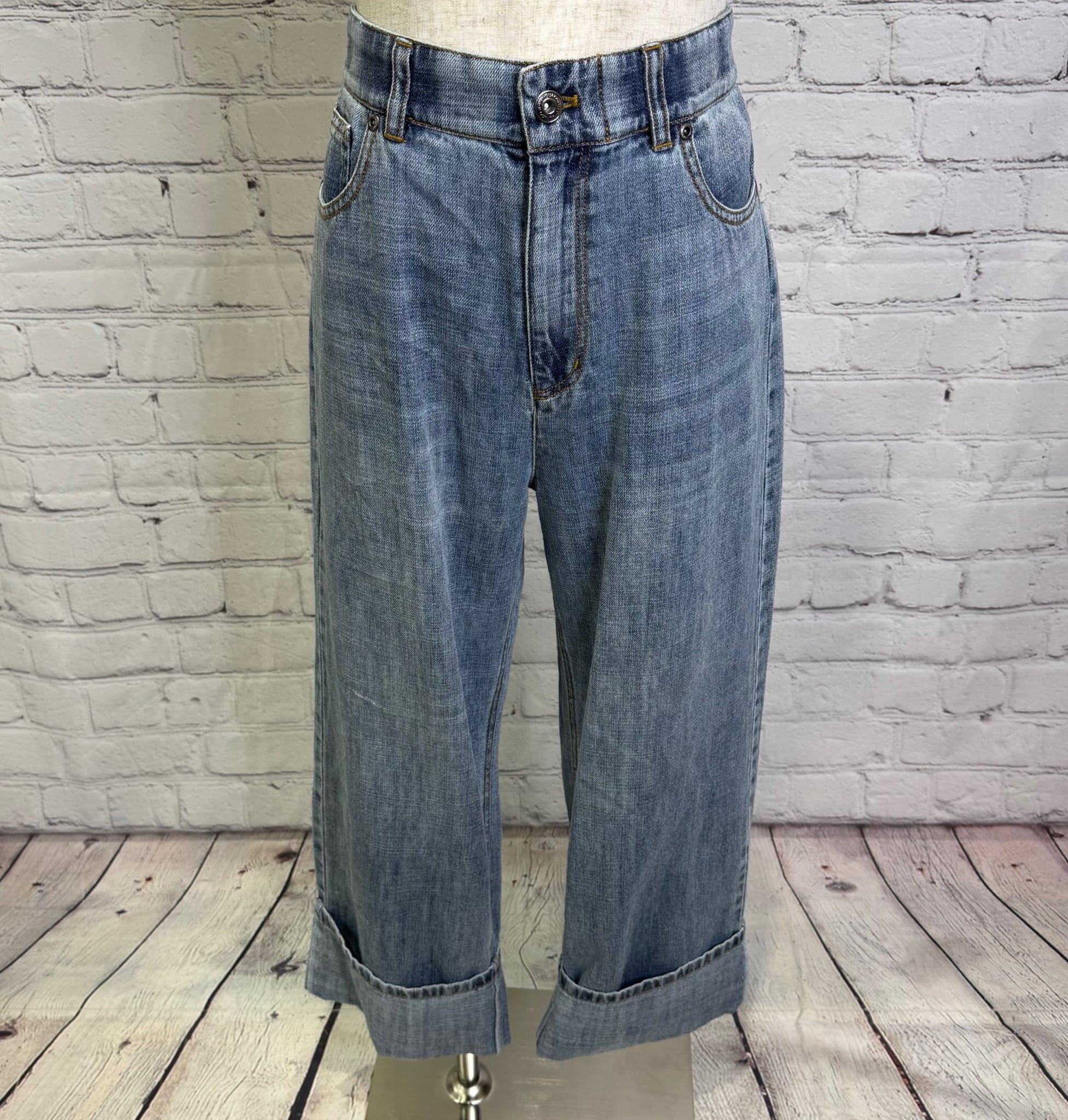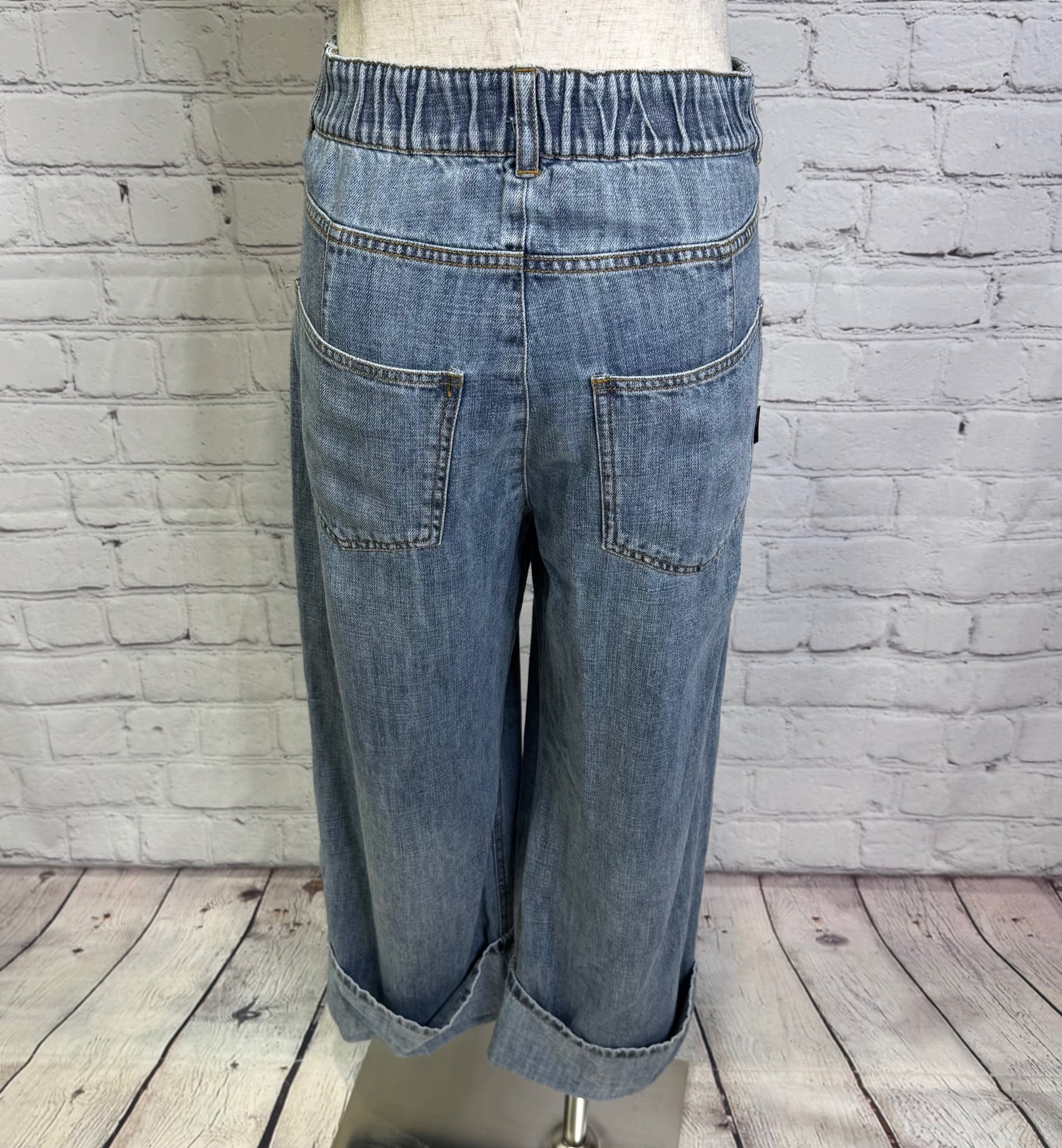 リネン混のハイクオリティなデニム素材です。軽量で柔らかく加工感が大人っぽい印象に仕上がります。裾をお好きな長さに折り返していただけます。ayane的には深めにターンバックしたままの感じでワンサイズアップしてゆるっとコーデがおすすめです。