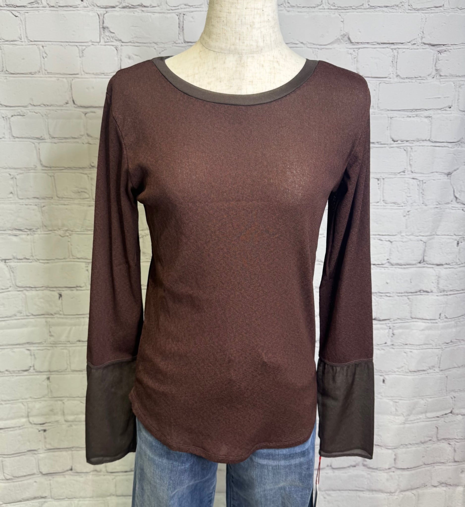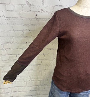 ストレッチが効いている細かいリブで着心地がとてもよいプルオーバーです。ネックと袖口部分には透け感の異なるシアー素材をドッキングしており、女性らしいデザインに仕上がっています。程よく絶妙なシアーでレイヤードコーデにおすすめの一枚です。お家で洗えます。日本製。
