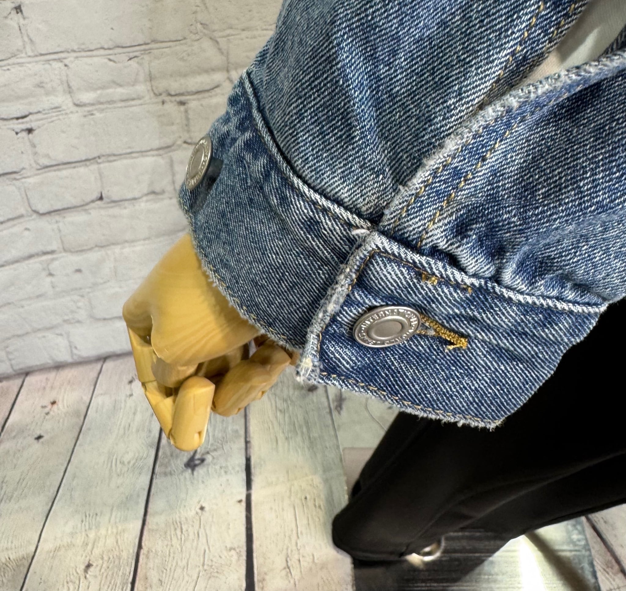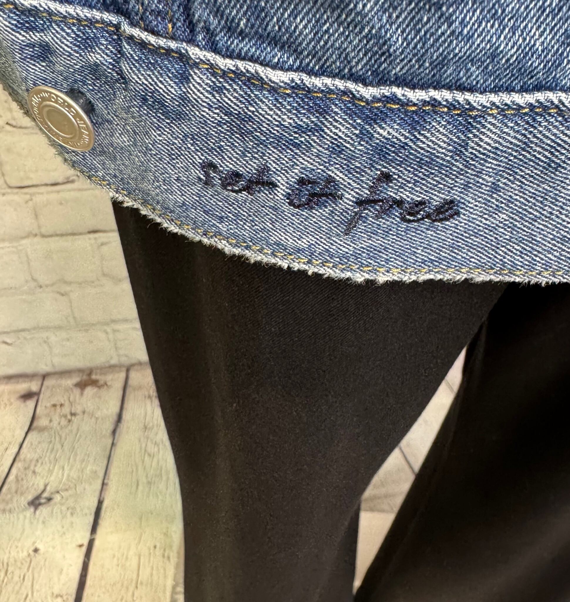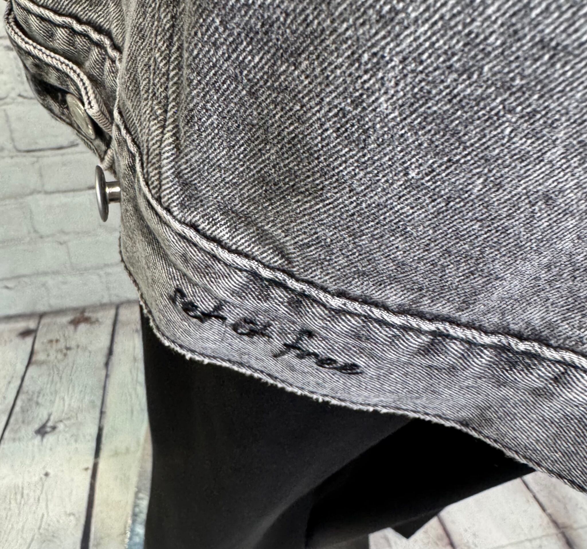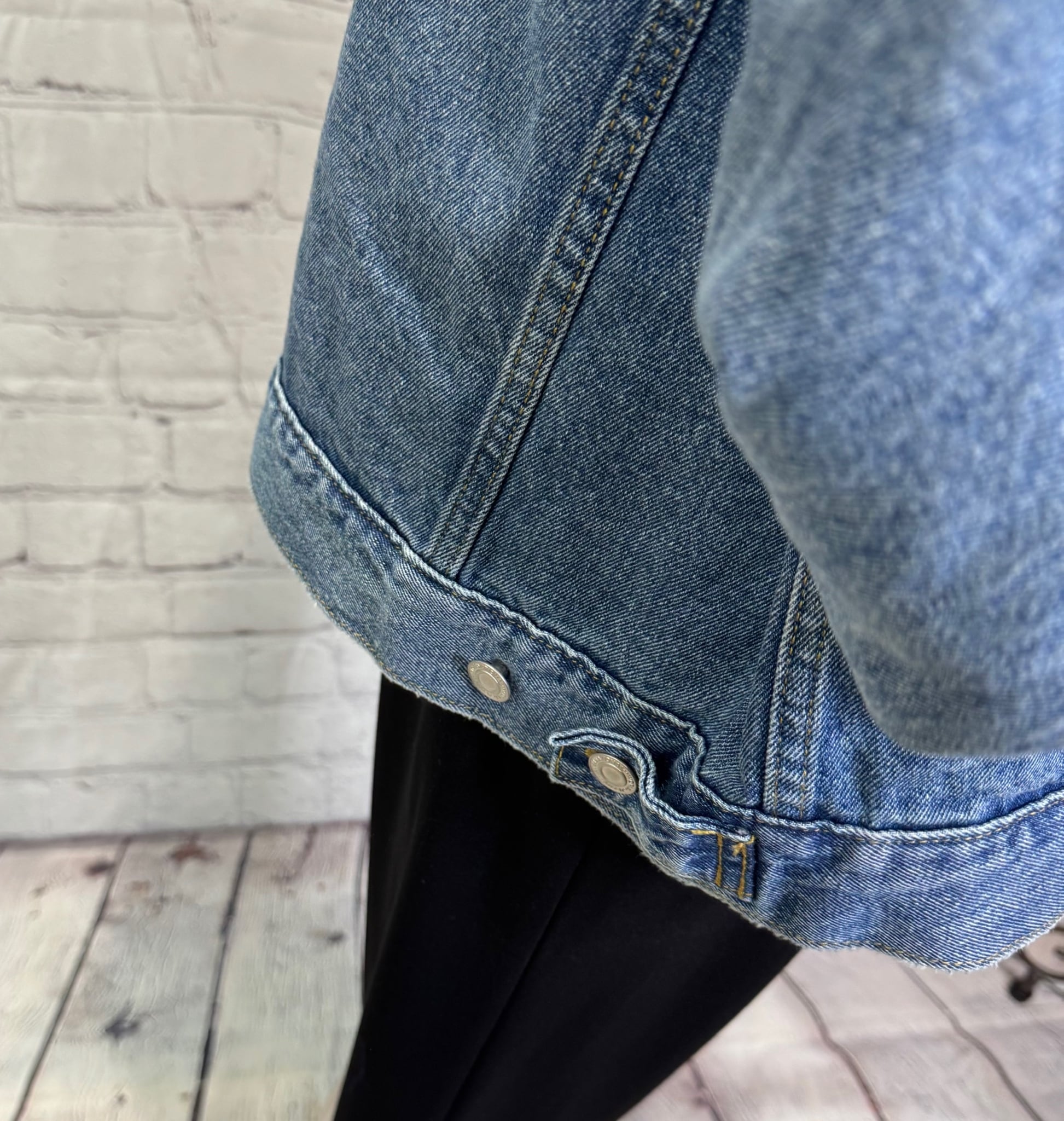 ゆったりシルエットで、程良い丈感で、ボトムを選ばずパンツでもスカートでもコーデしやすいGジャンです。合皮仕様の衿がポイントです♪ 後ろ裾のさり気ないロゴも細部にこだわったデザインです。ポケットあり。