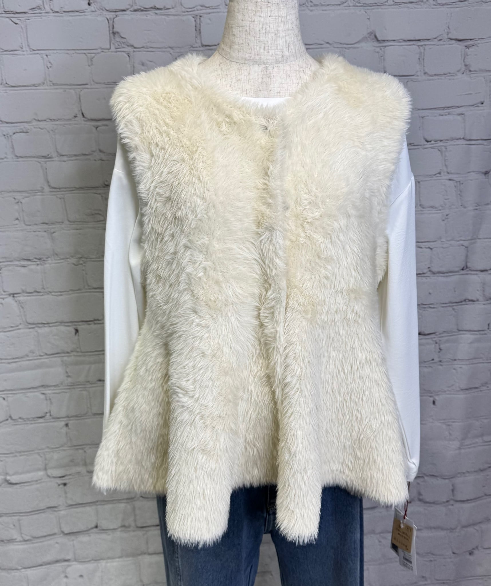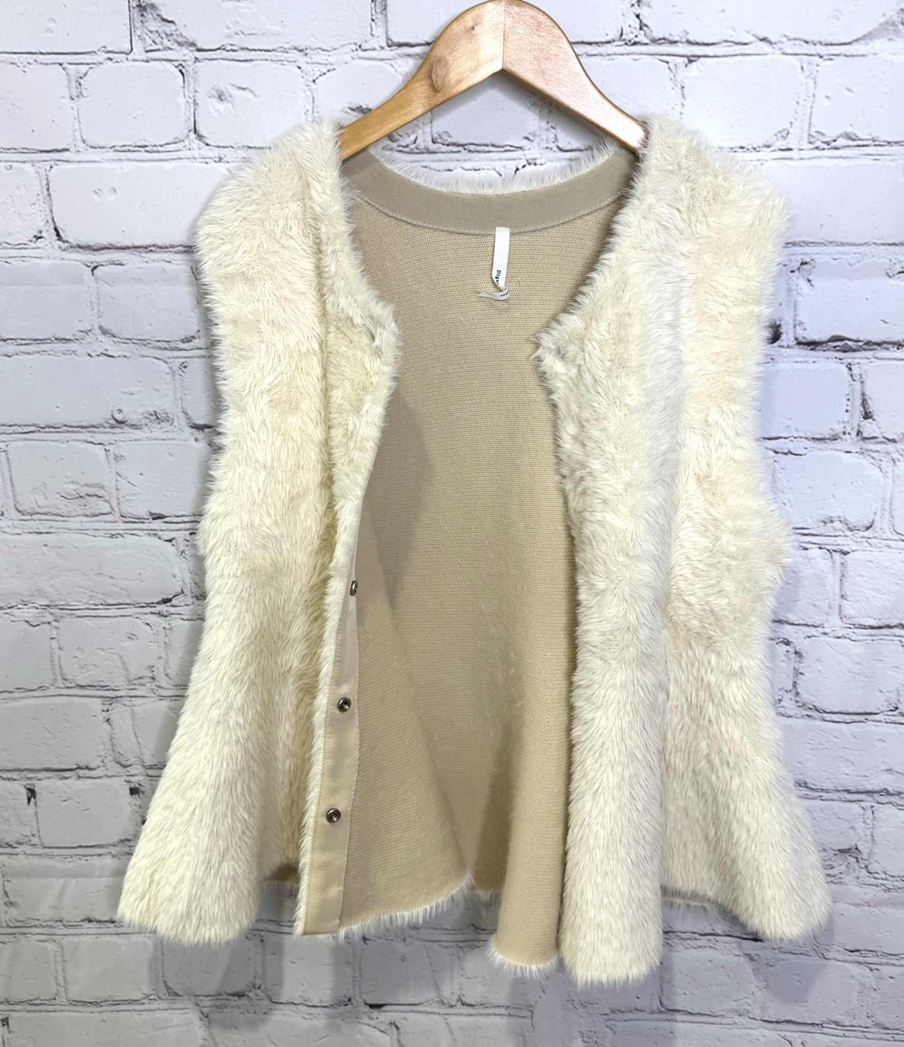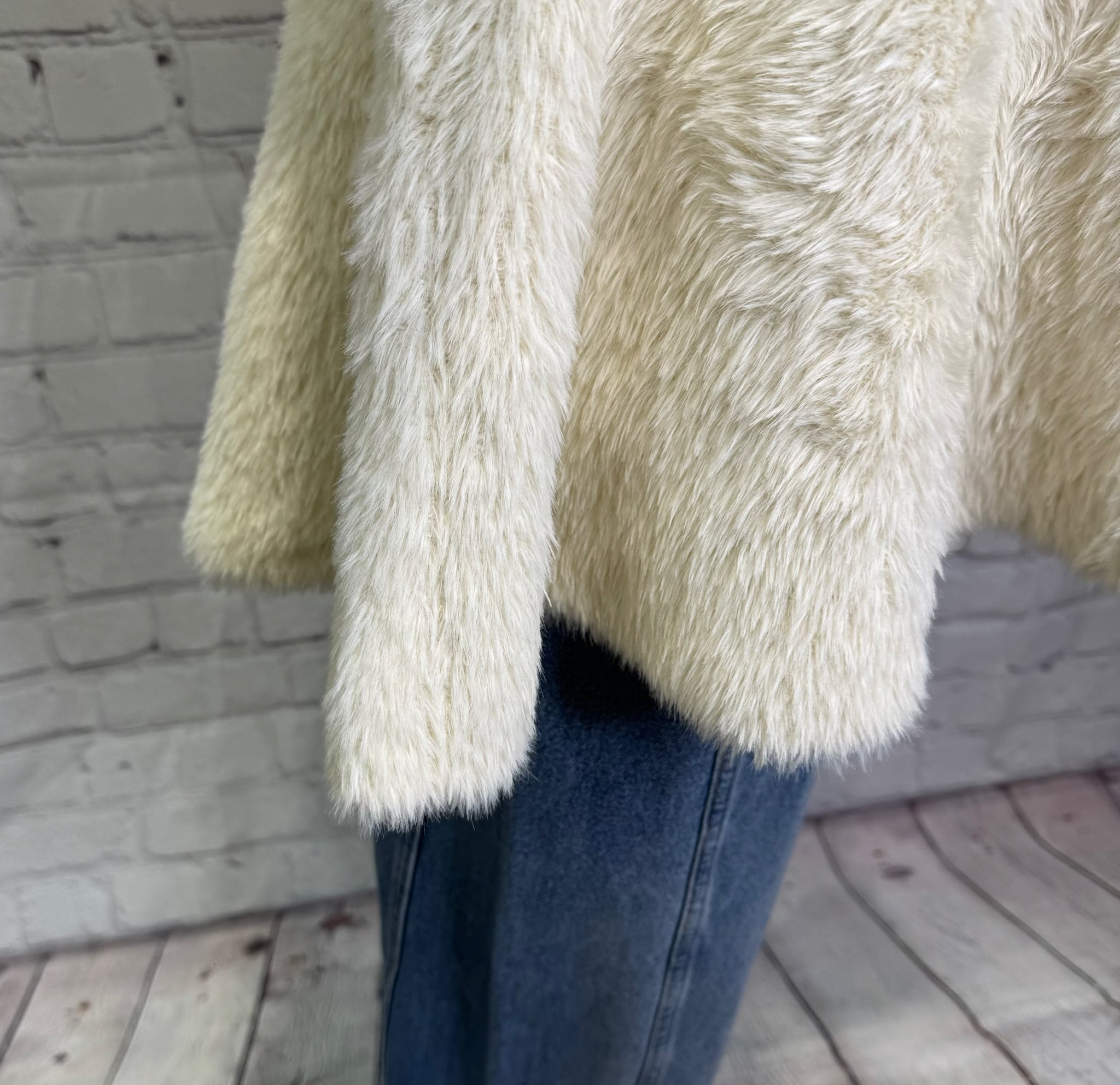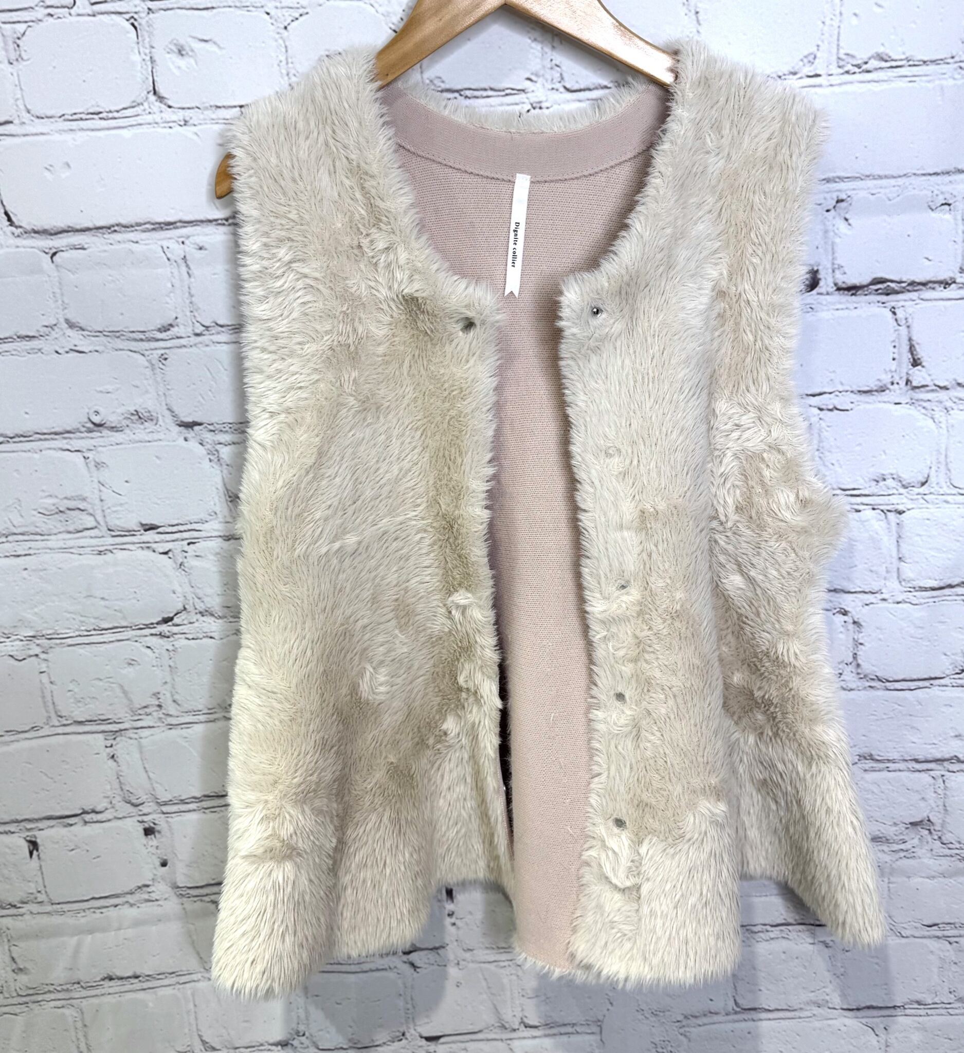 柔らかいフェザーが触り心地も良く、ペプラムデザインが女性らしいジレです。内側はニット素材になっているので軽くて着心地も良いです。フロントはスナップボタンなので、閉じてベストのように着用するのも可愛いです。いつものコーデにプラスするだけで華やかで上品見えするおすすめアイテムです。