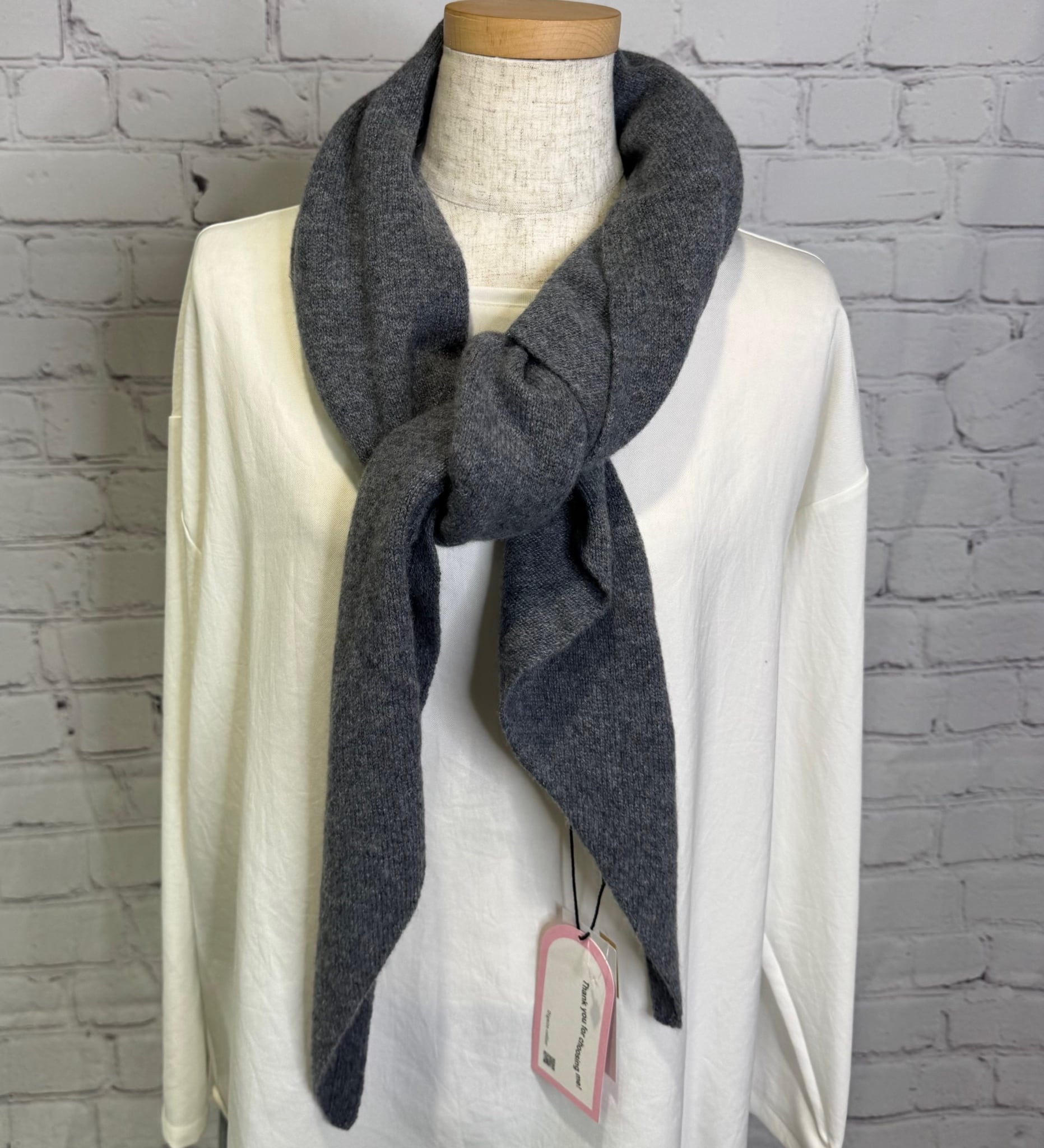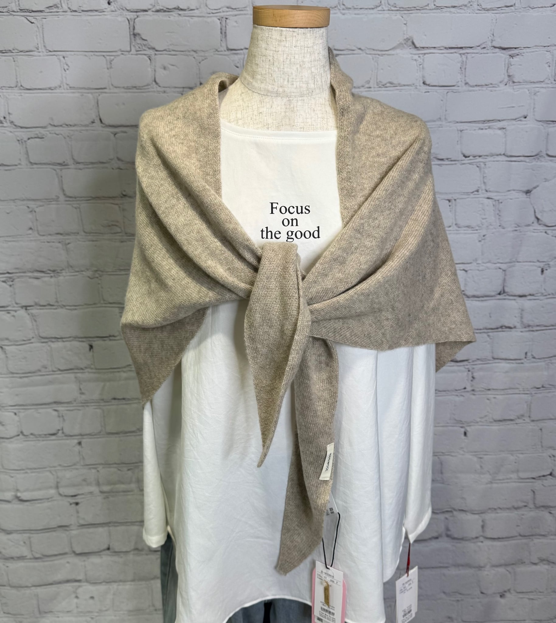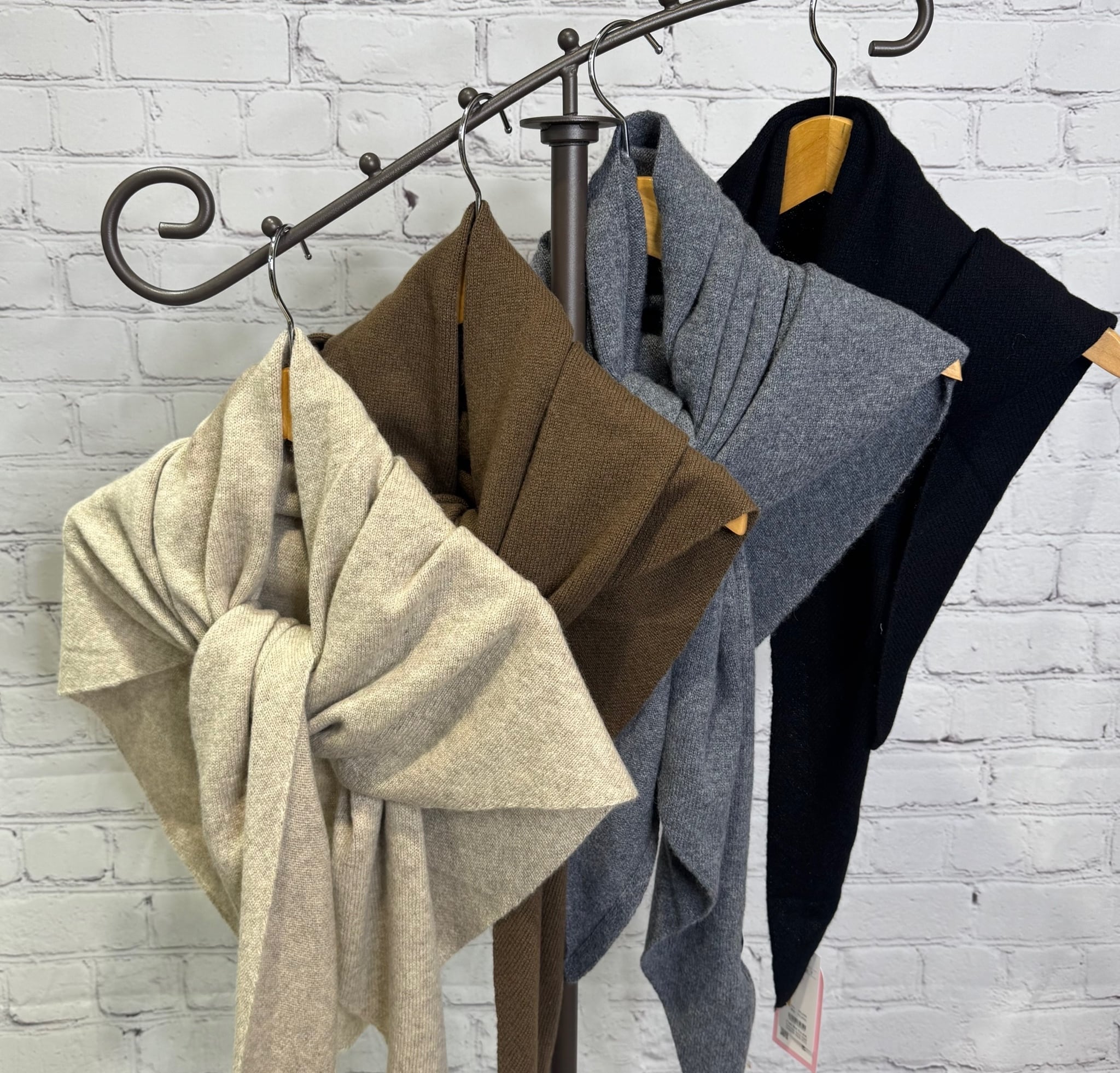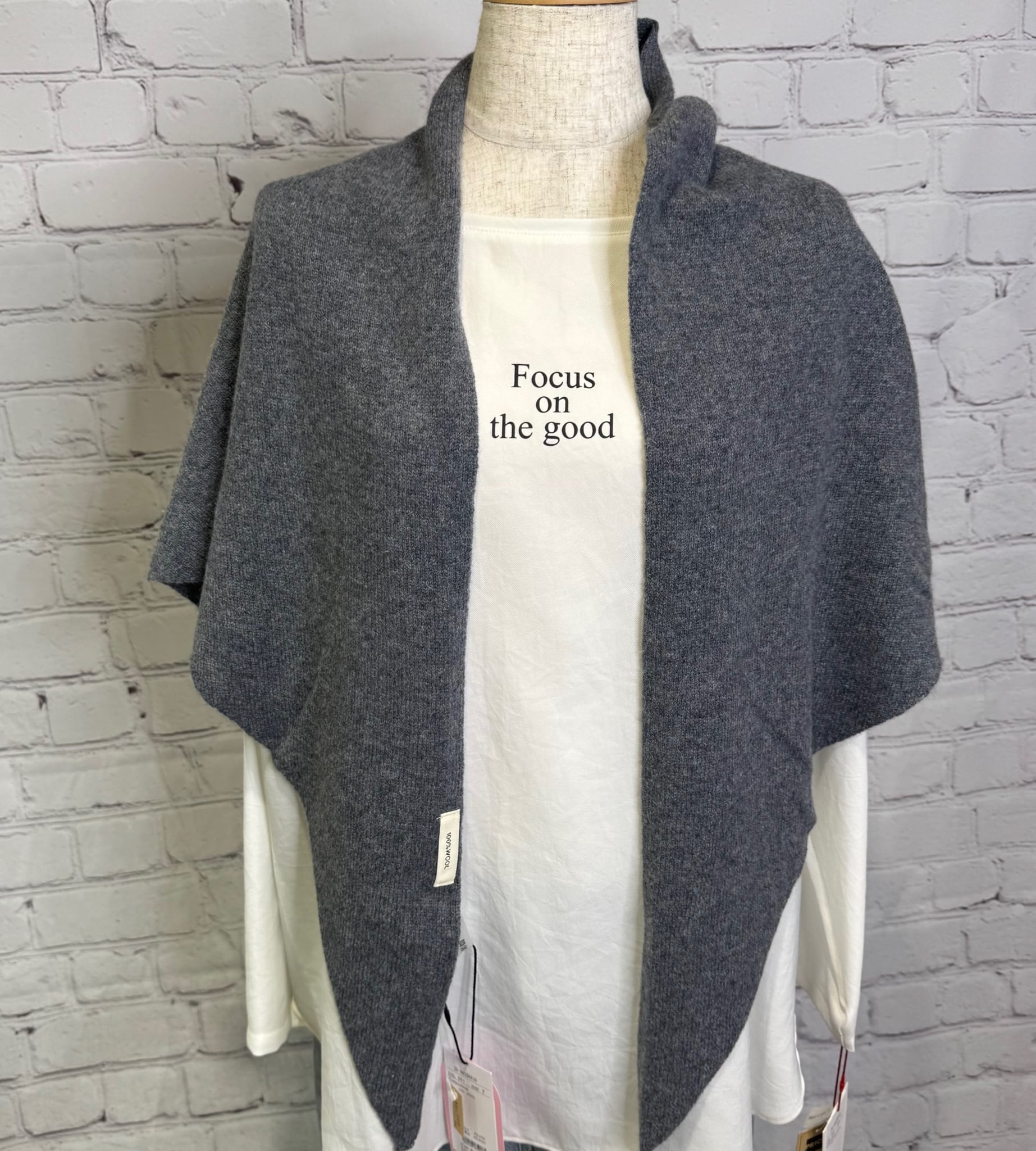 そのままサラッと肩にかけたり、色々巻き方を変えてアレンジしたりお楽しみいただける三角ストールです。