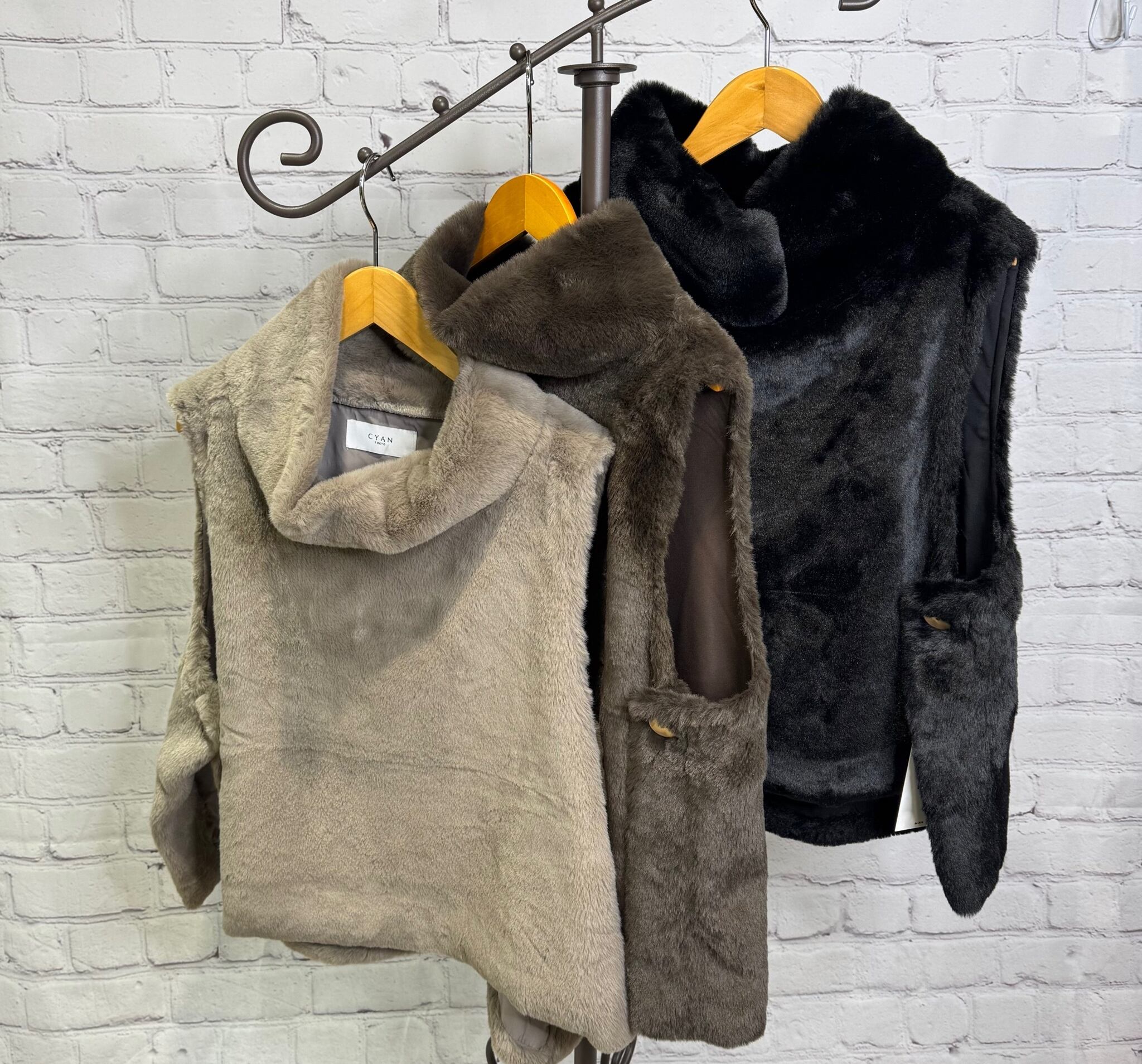 SALE!CYAN TOKYO シアントーキョー バックオーバーハイネックファーベスト 507390