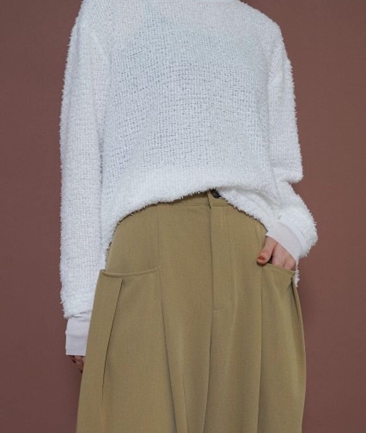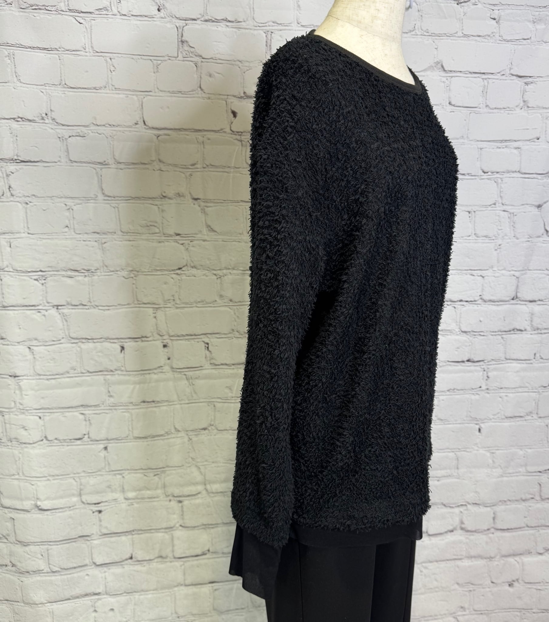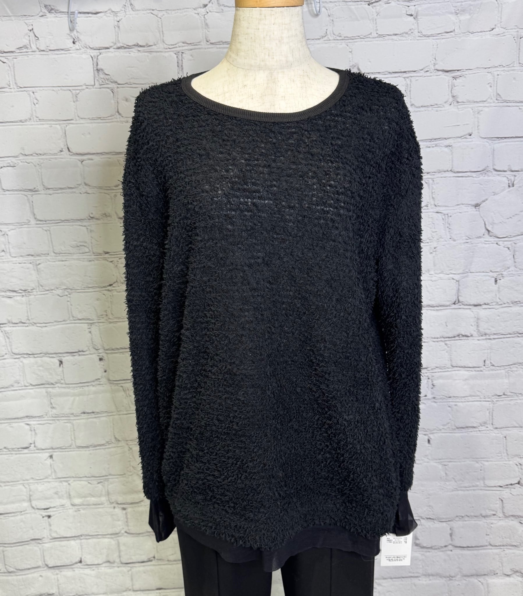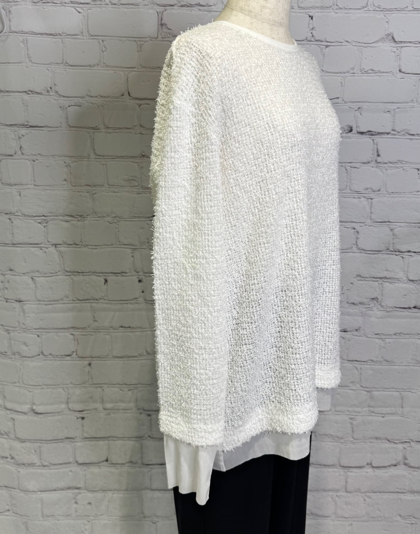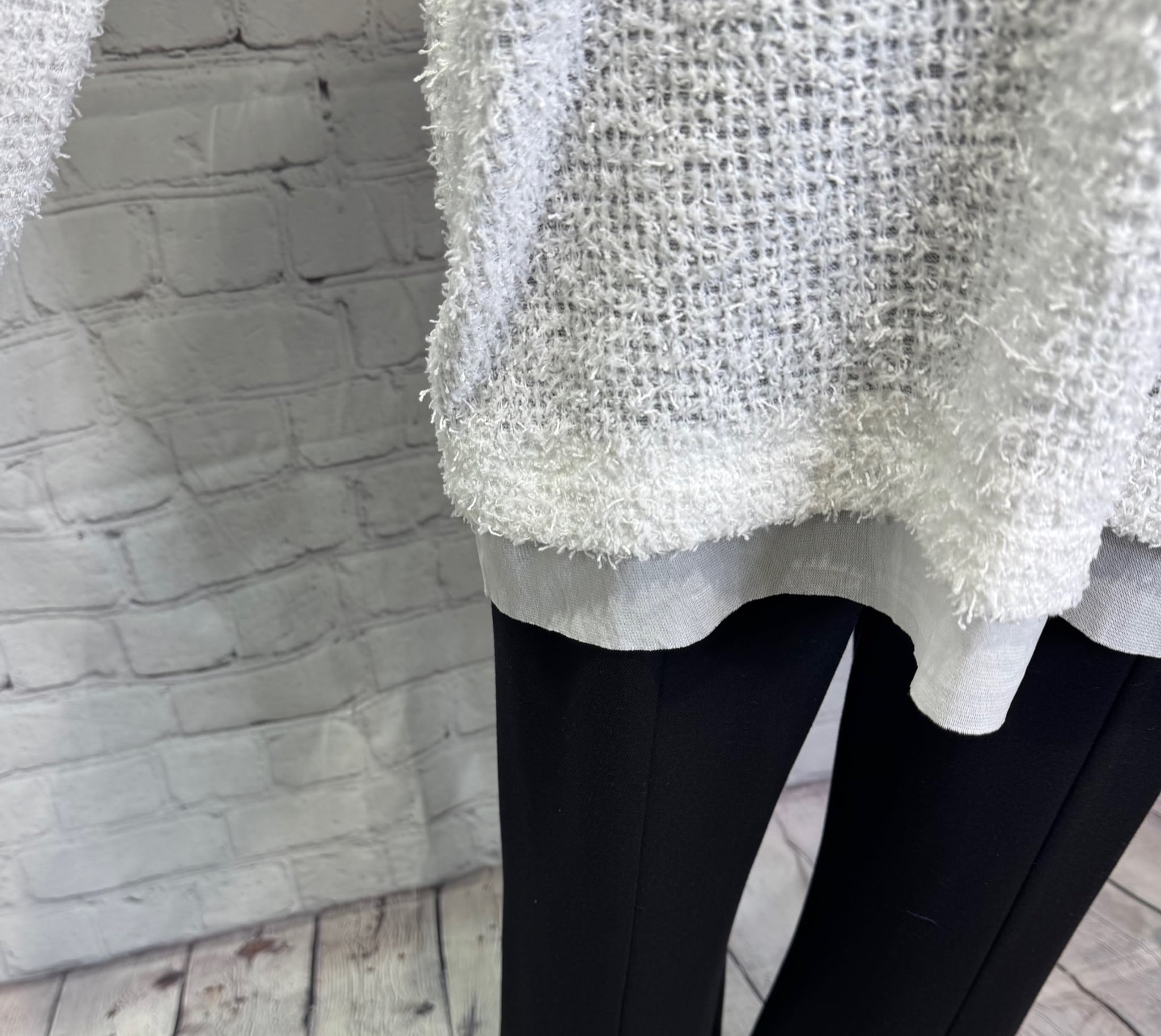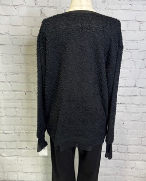 袖口と裾のチュールがフェザーとの組み合わせで大人可愛いさが倍増されたトップスです。厚くないのどベストなどのレイヤードとしてもおすすめのアイテムです。お家で洗えます。