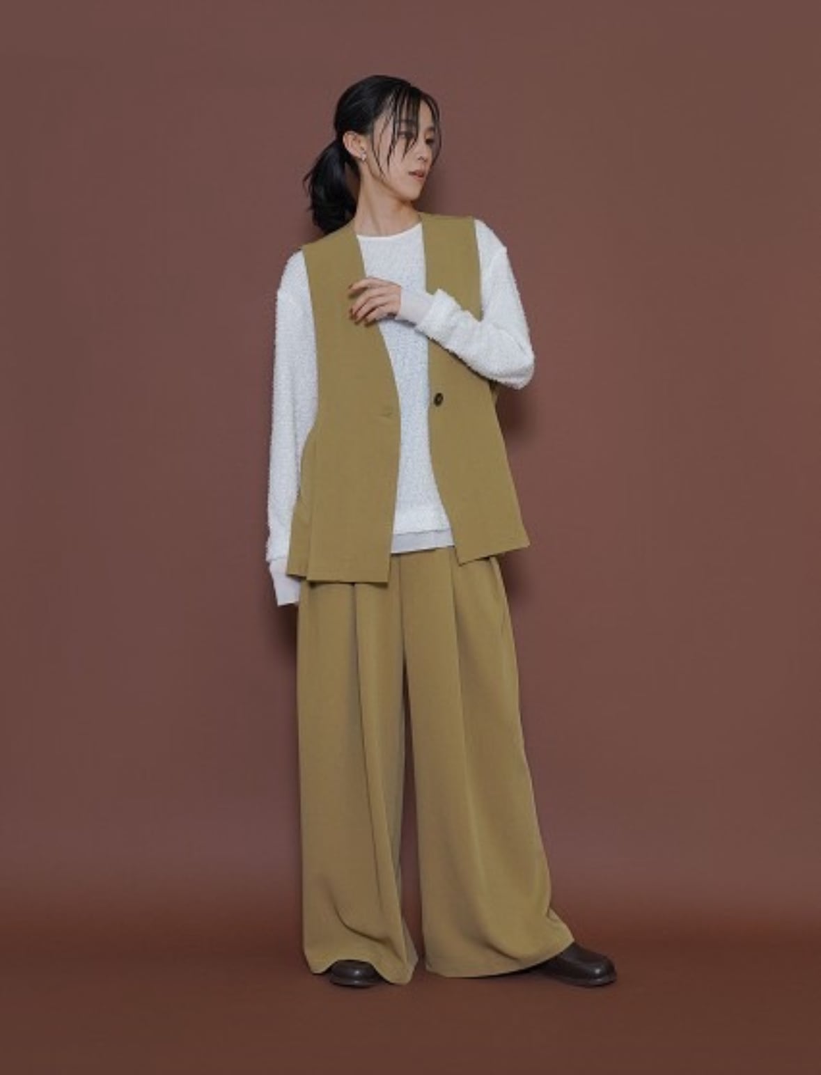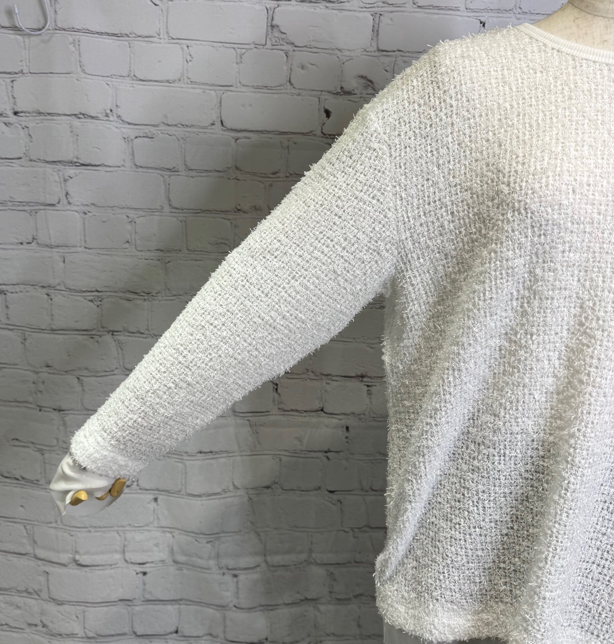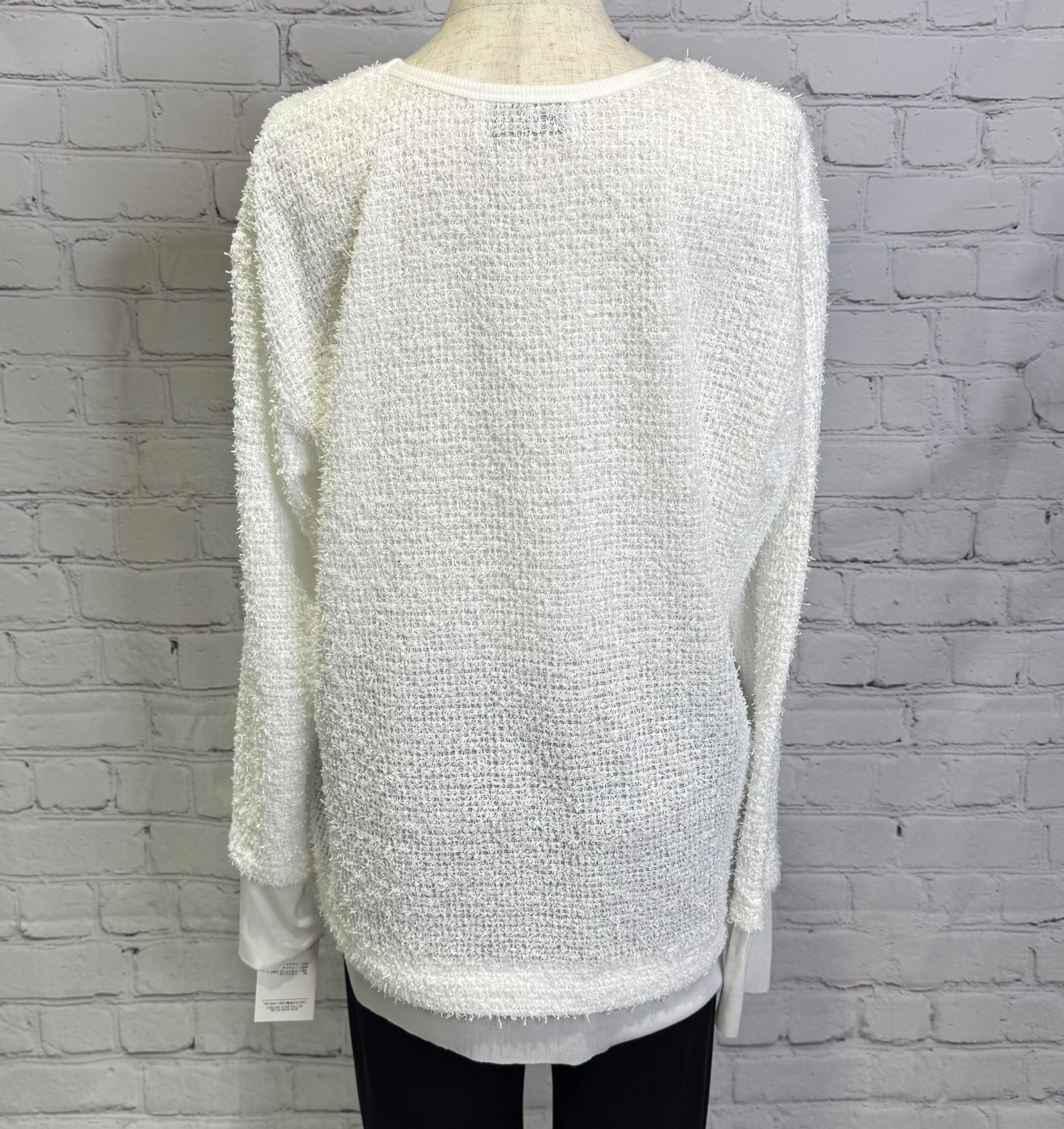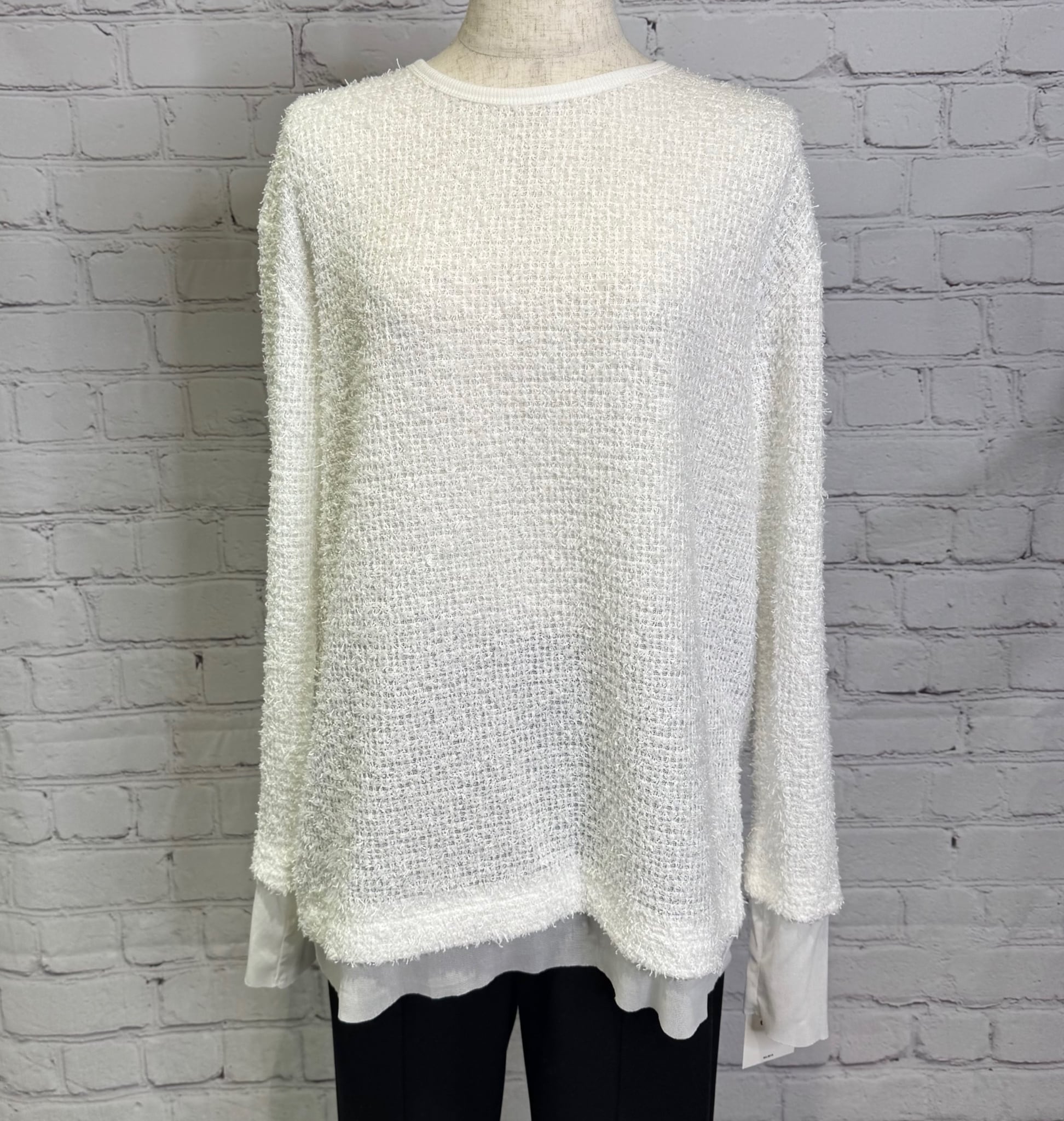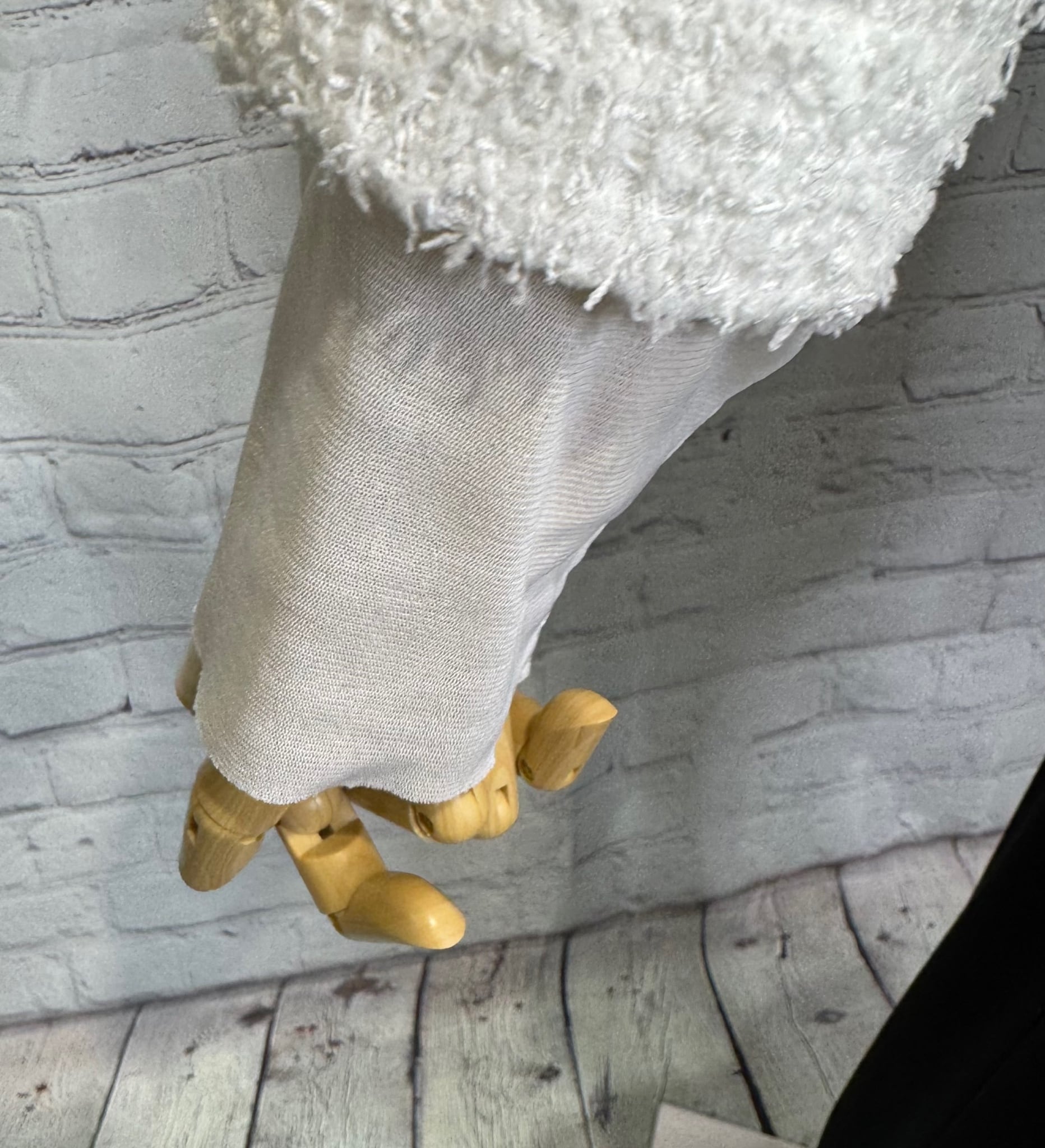 袖口と裾のチュールがフェザーとの組み合わせで大人可愛いさが倍増されたトップスです。厚くないのどベストなどのレイヤードとしてもおすすめのアイテムです。お家で洗えます。