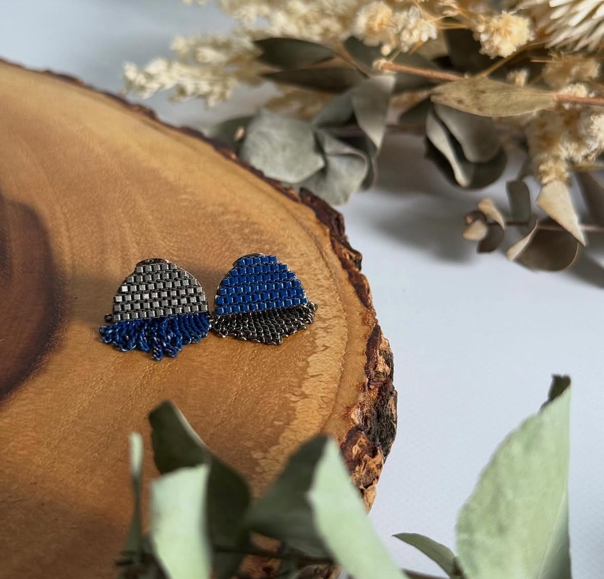 配色カラーがおしゃれなピアスです。左右で配色が違うのがポイントです!