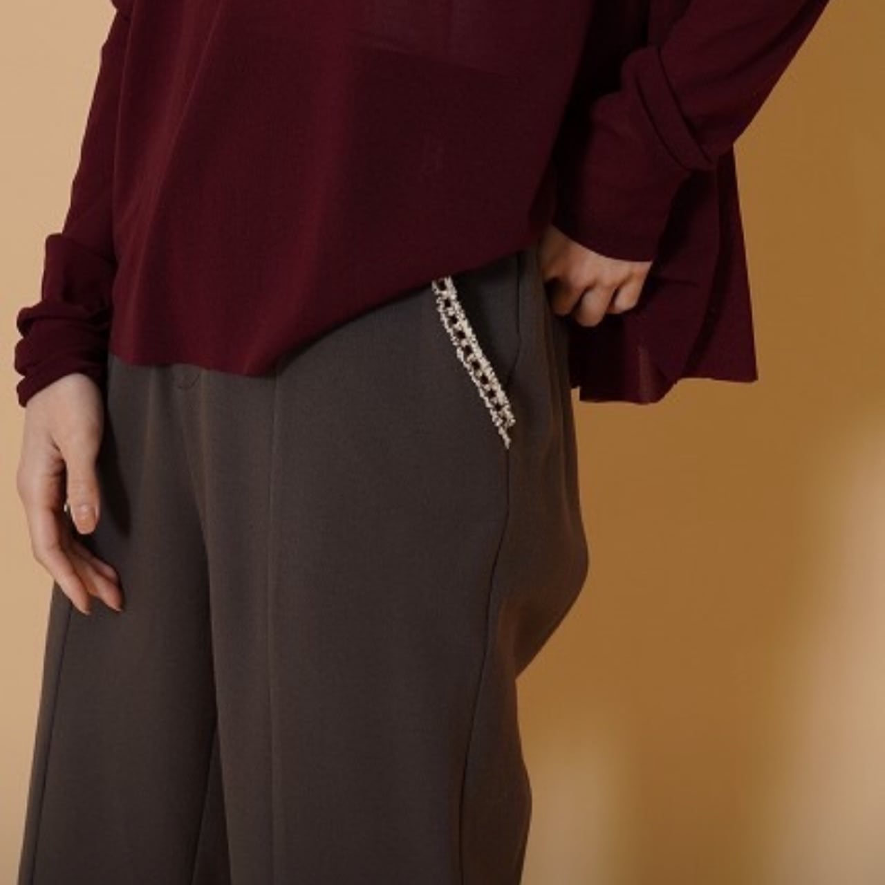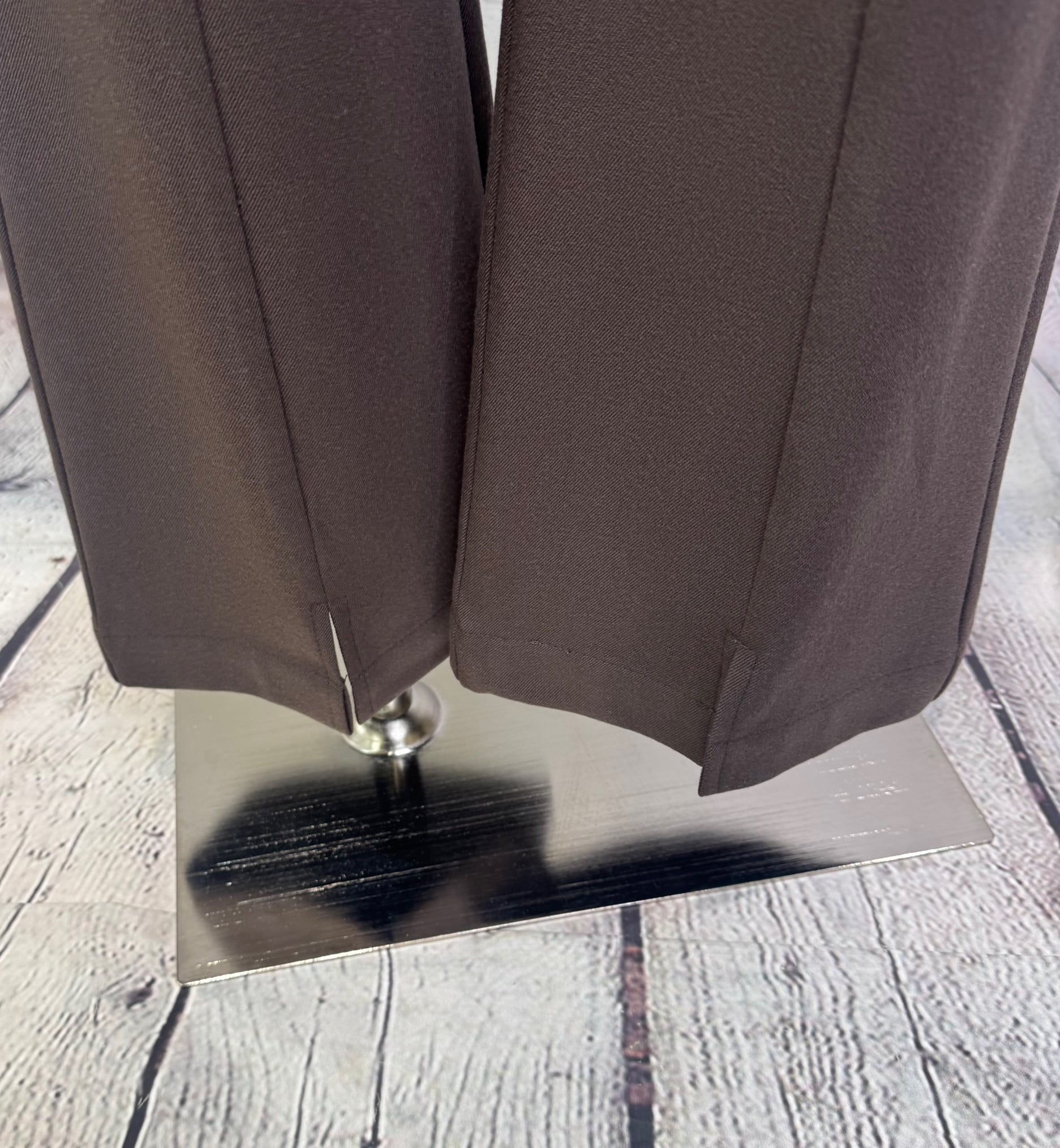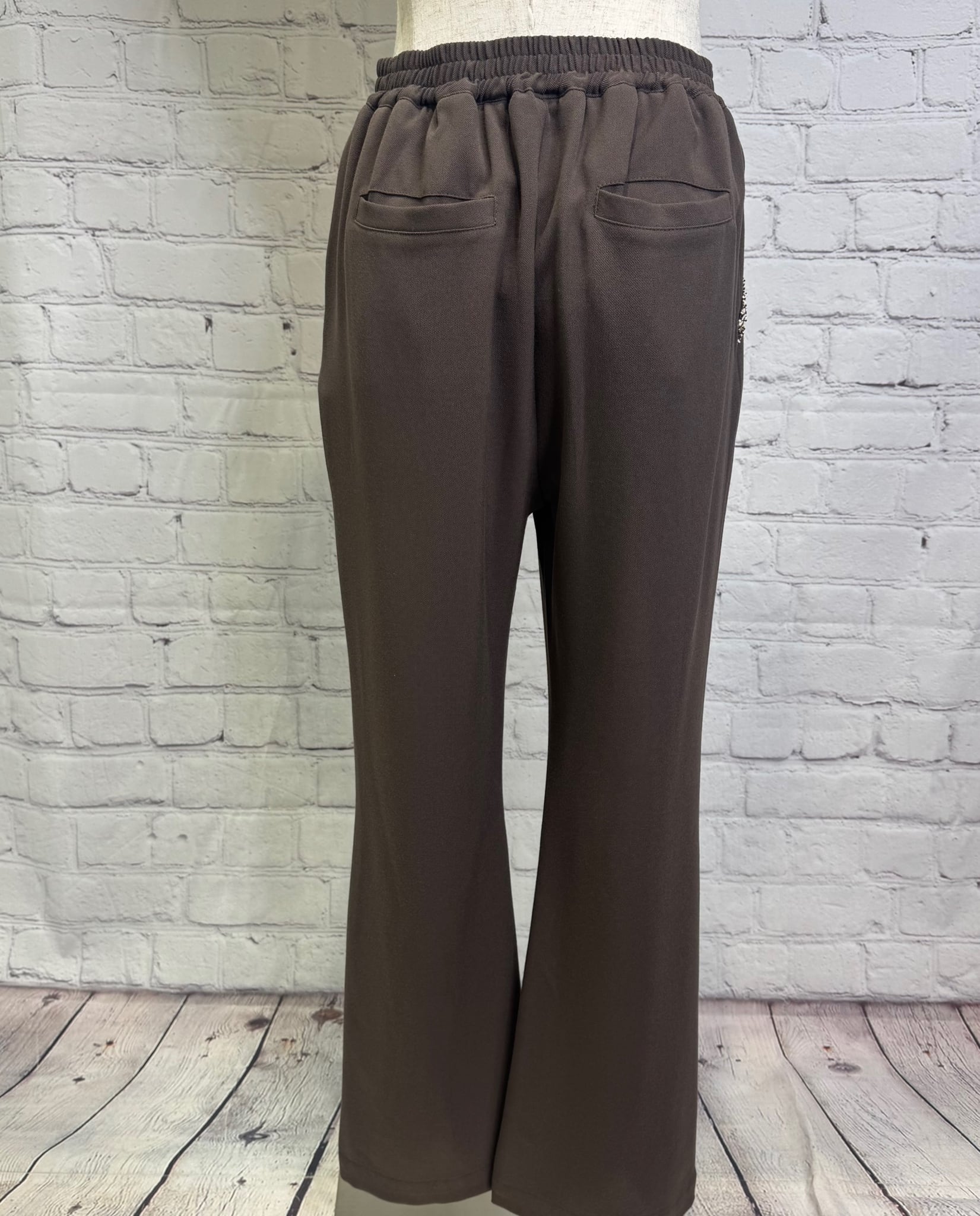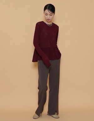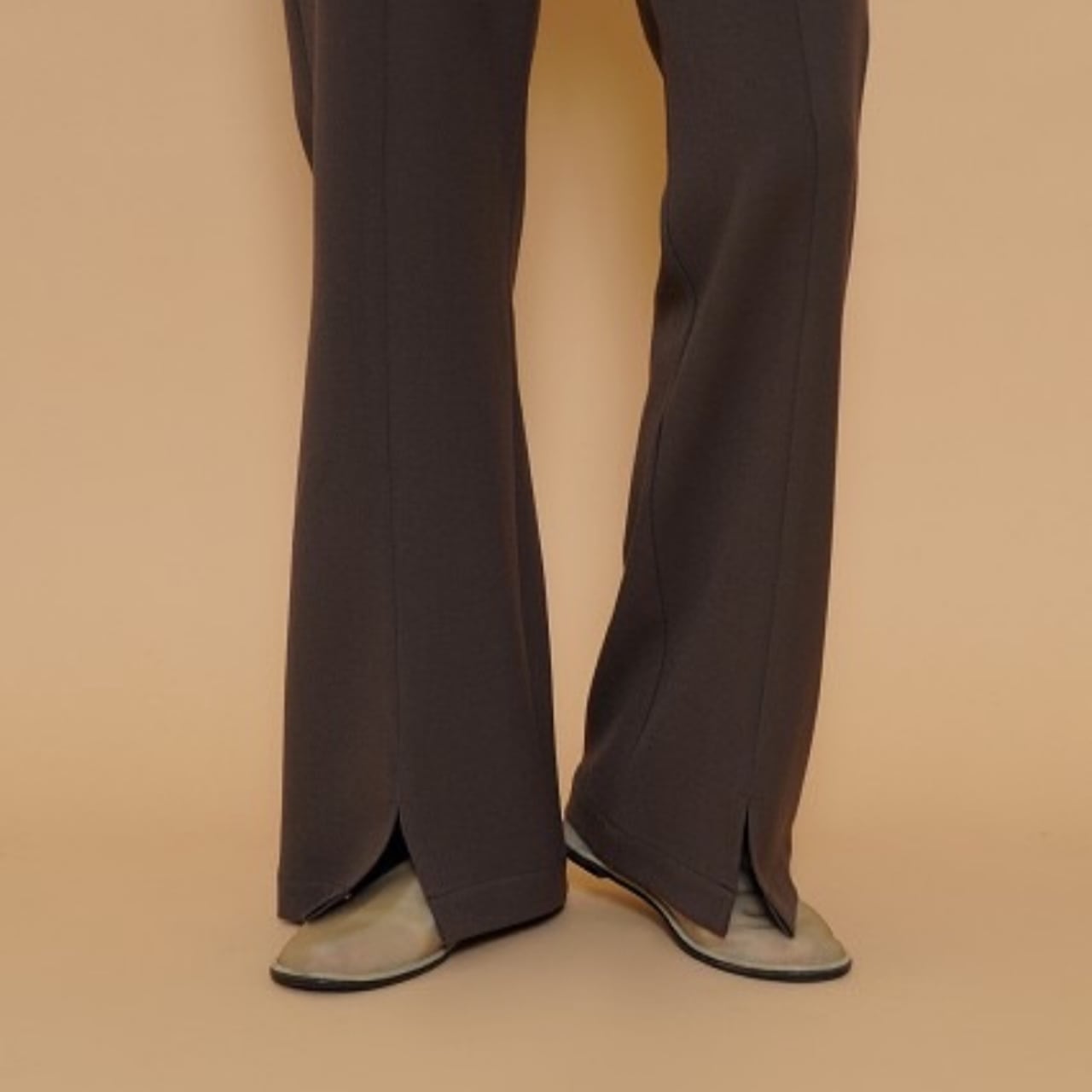 細見え効果抜群のフレアパンツです。裾フロントにスリット入りの人気のデザイン。ウール見えするきれいめ上品なパンツでオンオフ活躍してくれます。ポケットデザインポイントです♪ お家で洗えます。