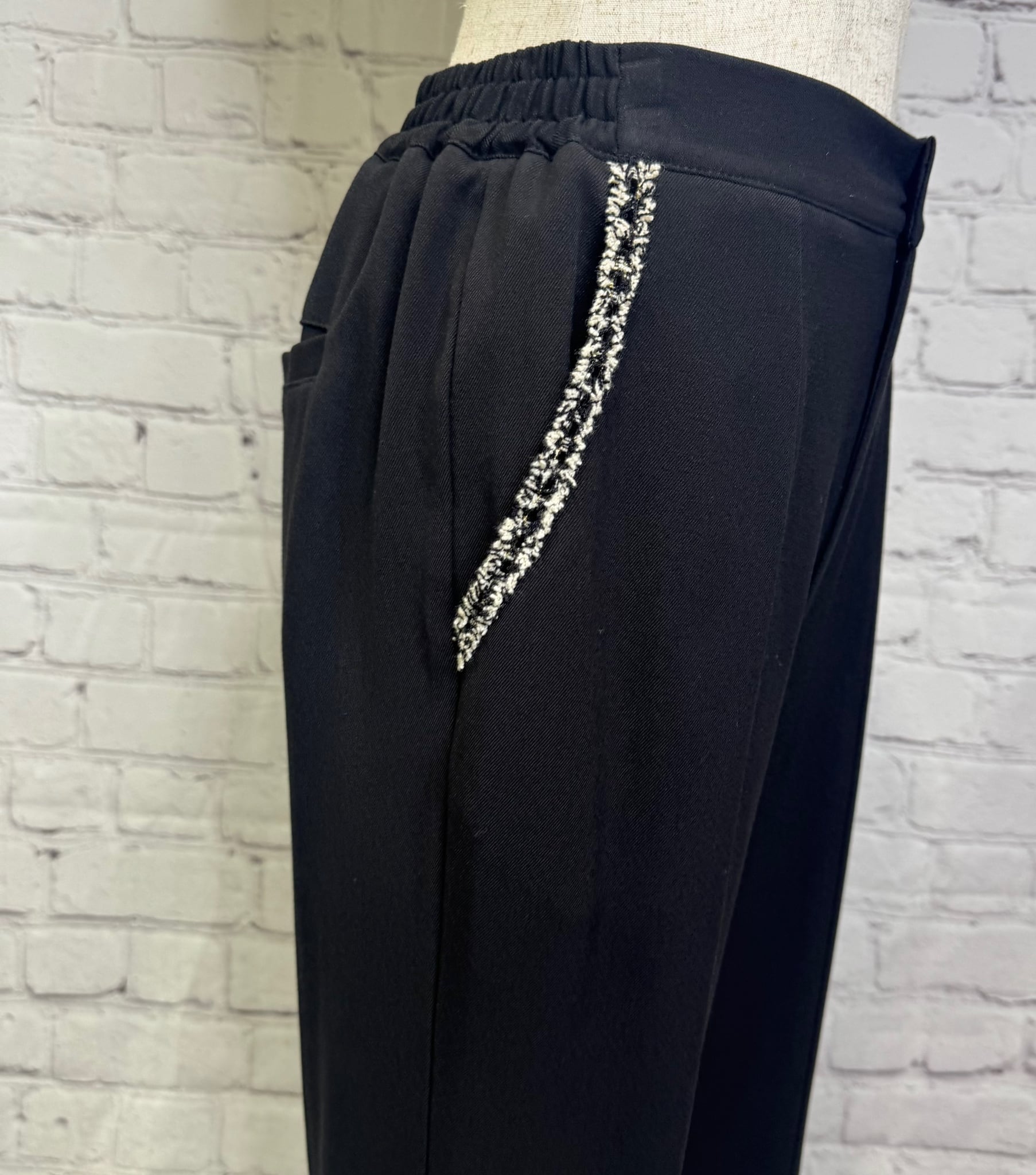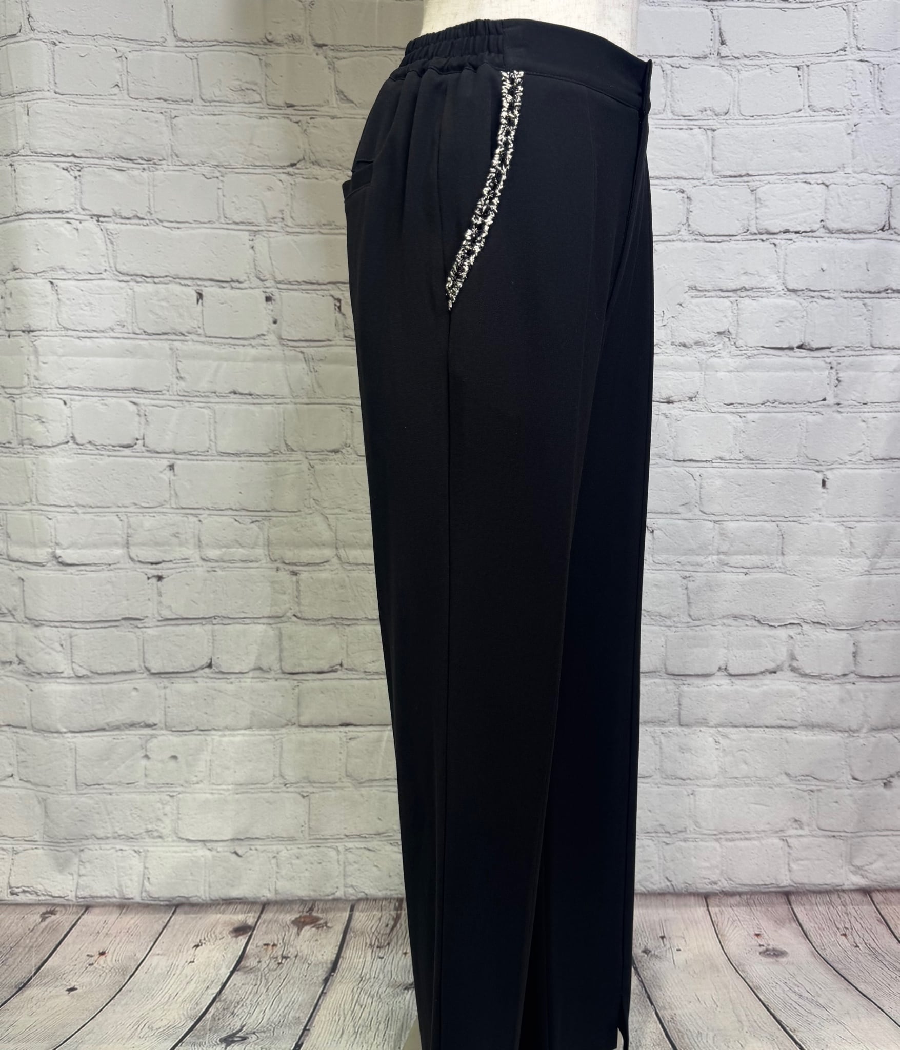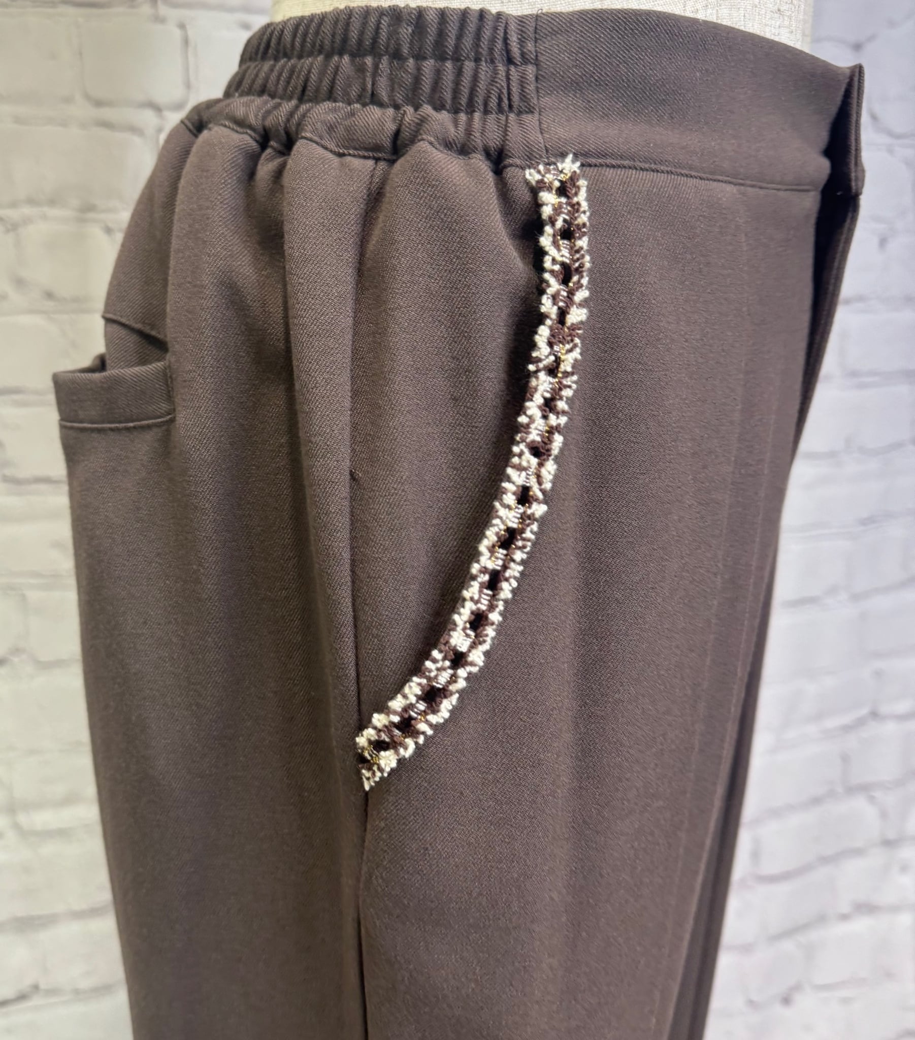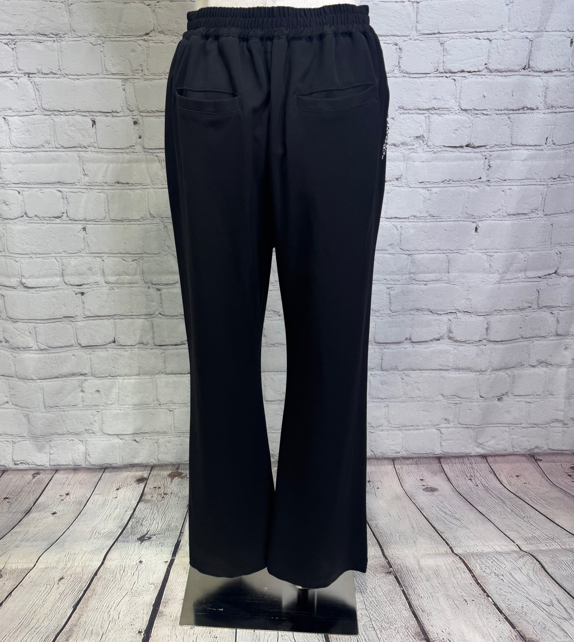細見え効果抜群のフレアパンツです。裾フロントにスリット入りの人気のデザイン。ウール見えするきれいめ上品なパンツでオンオフ活躍してくれます。ポケットデザインポイントです♪ お家で洗えます。