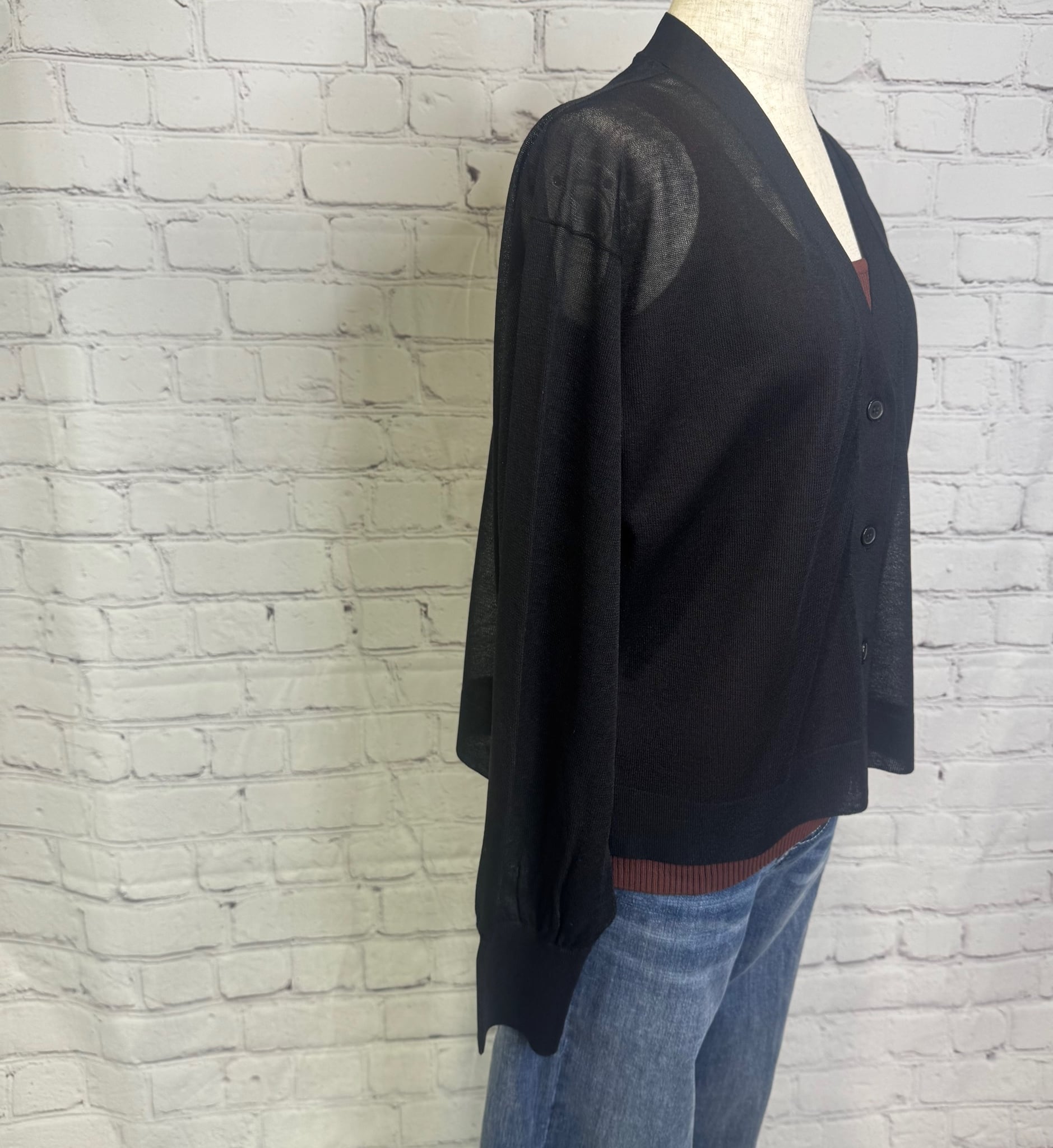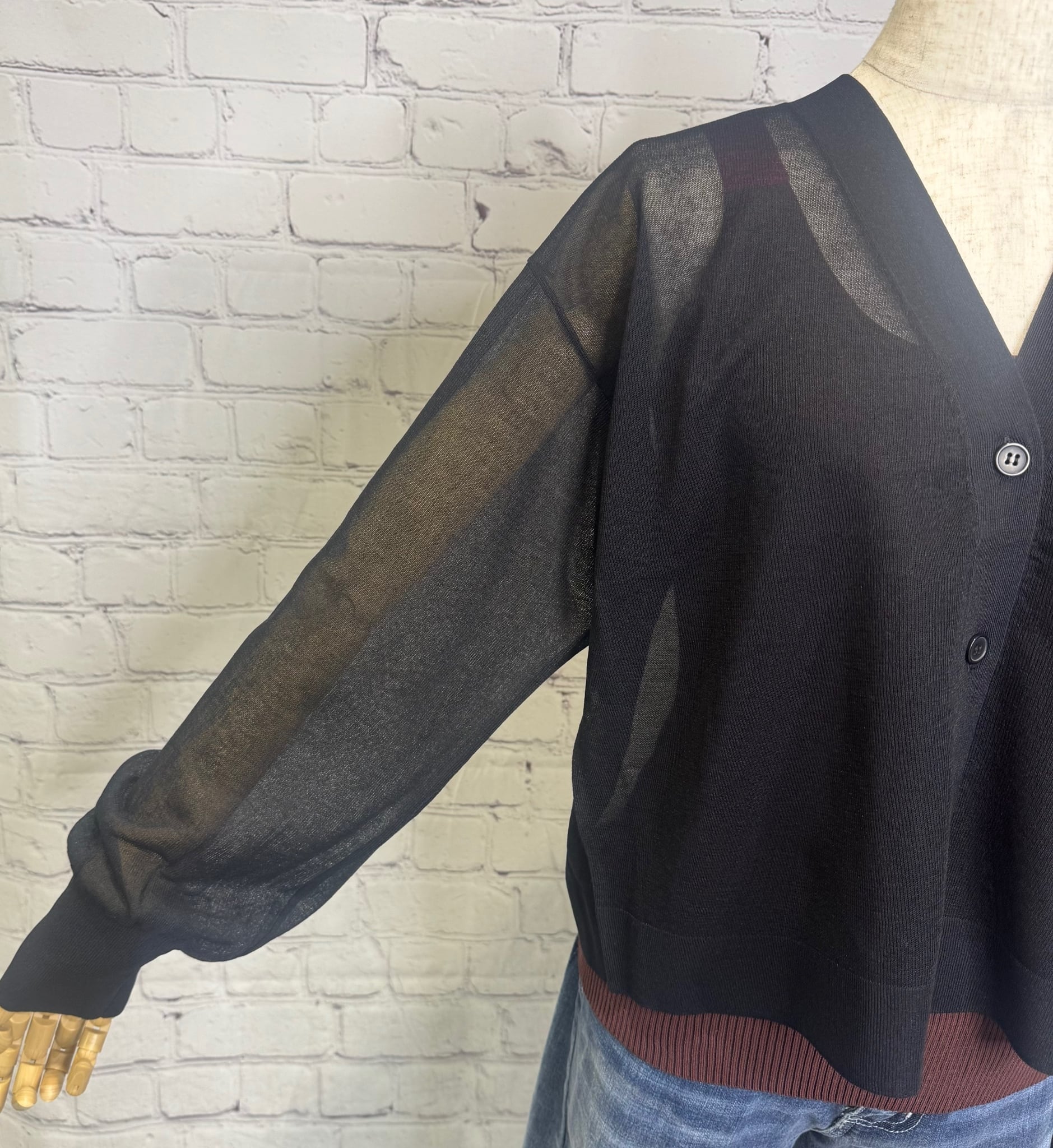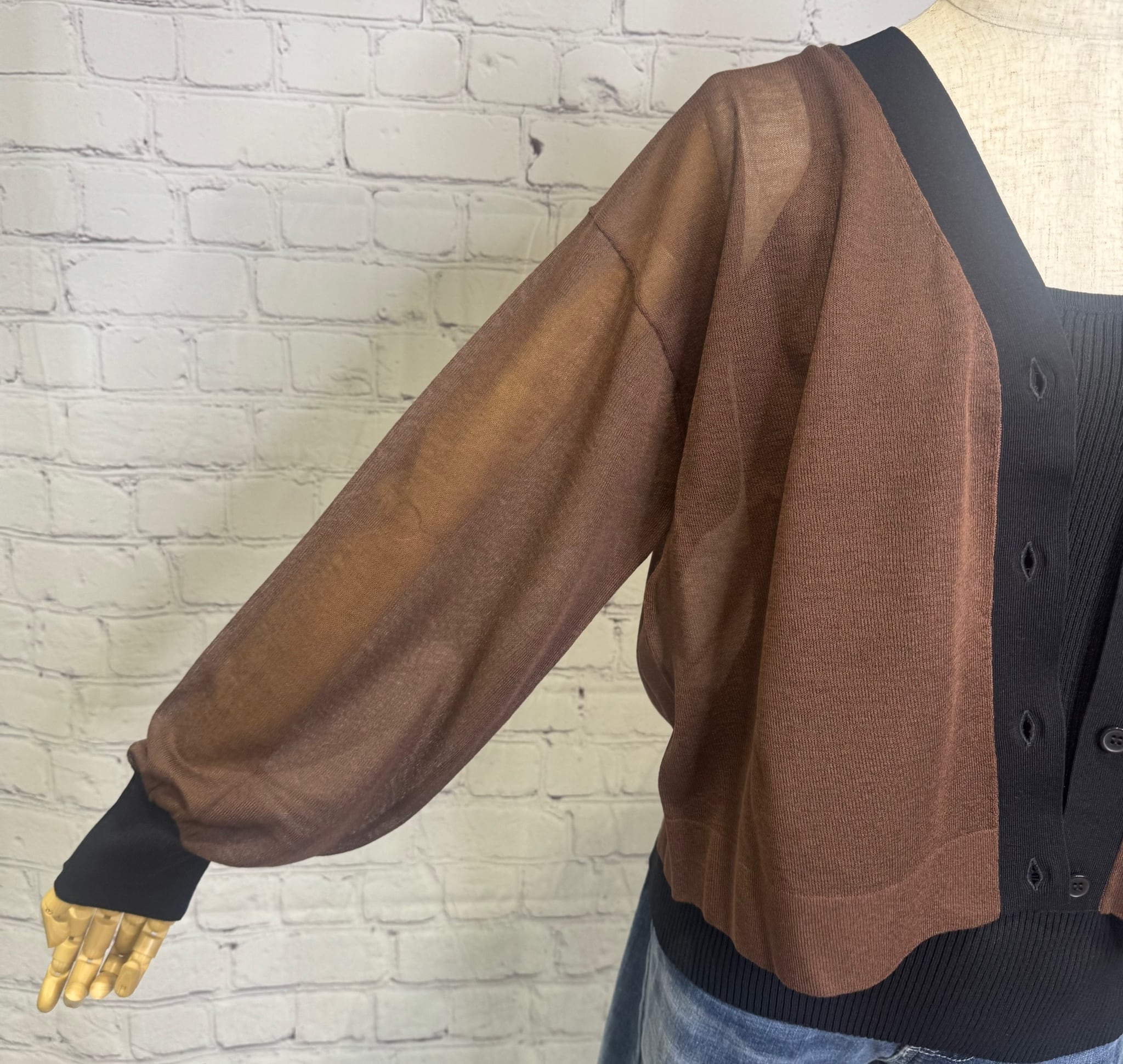 晩夏初秋にぴったりな薄手のカーディガンです。まだまだ暑い秋を秋色カラーをプラスすることでぐっとおしゃれなコーデに仕上げてくれます。ブラウンは、袖口とVネックラインが配色になっています。お家で洗えます。