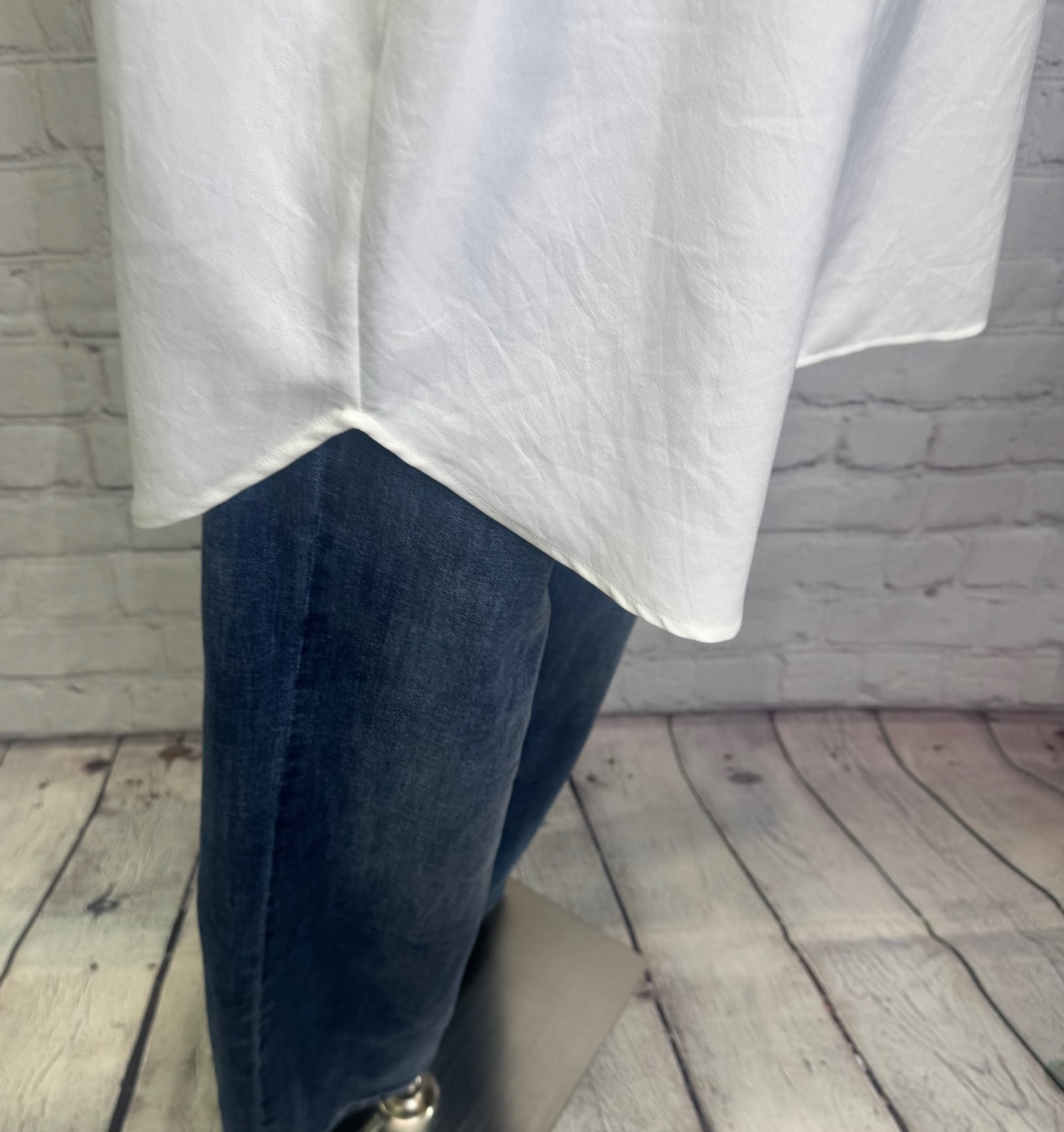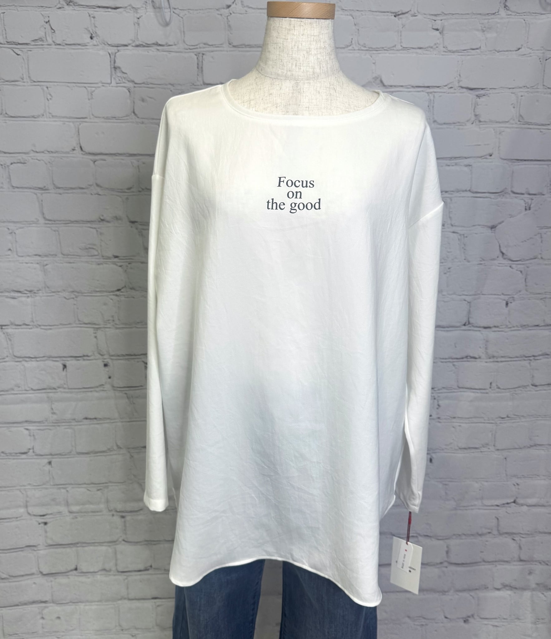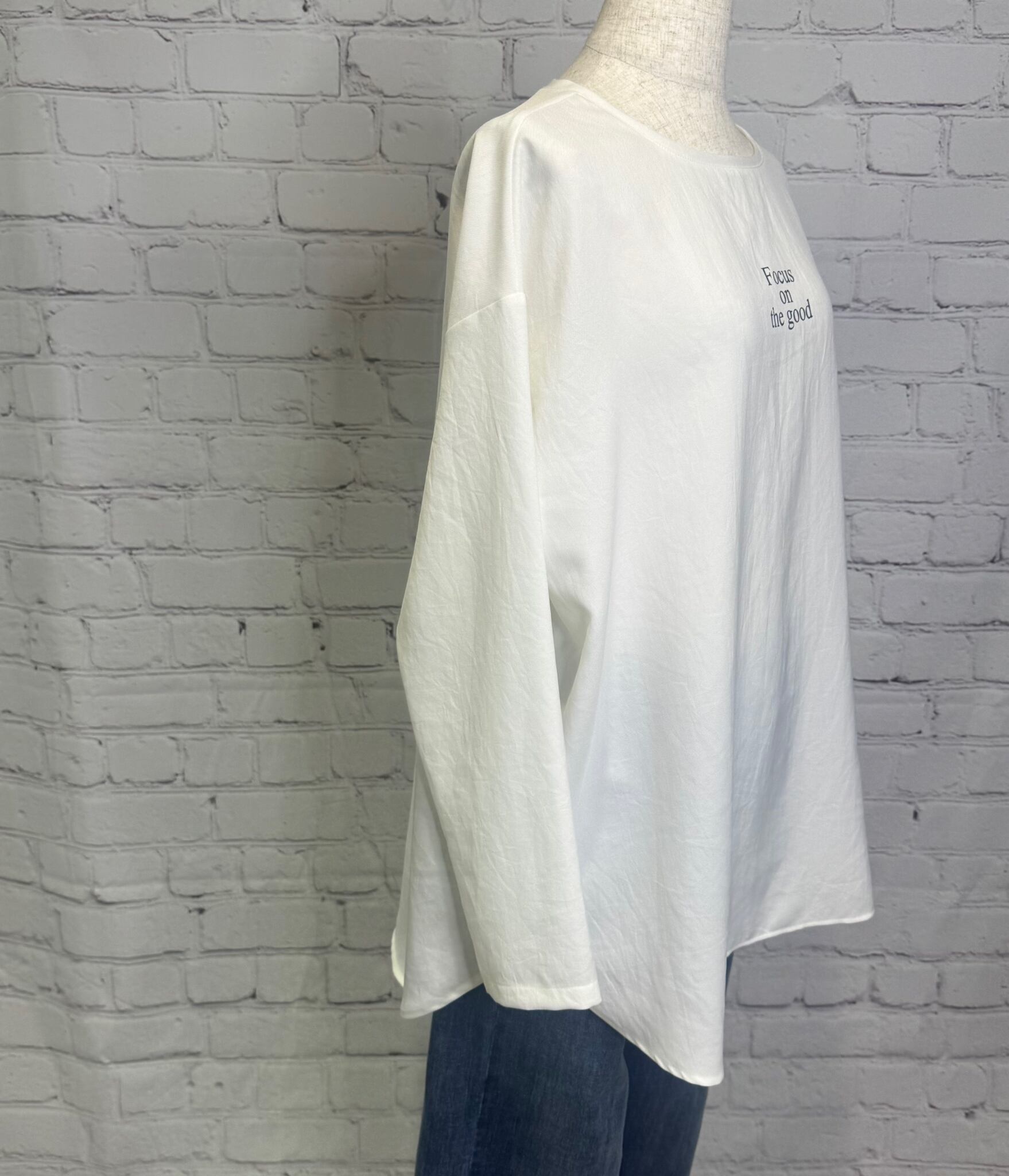 大きすぎないちょいロゴが大人女子に人気です。ベストなどとも相性◎ バック裾のスリットもポイントです。お家で洗えます。 日本製。