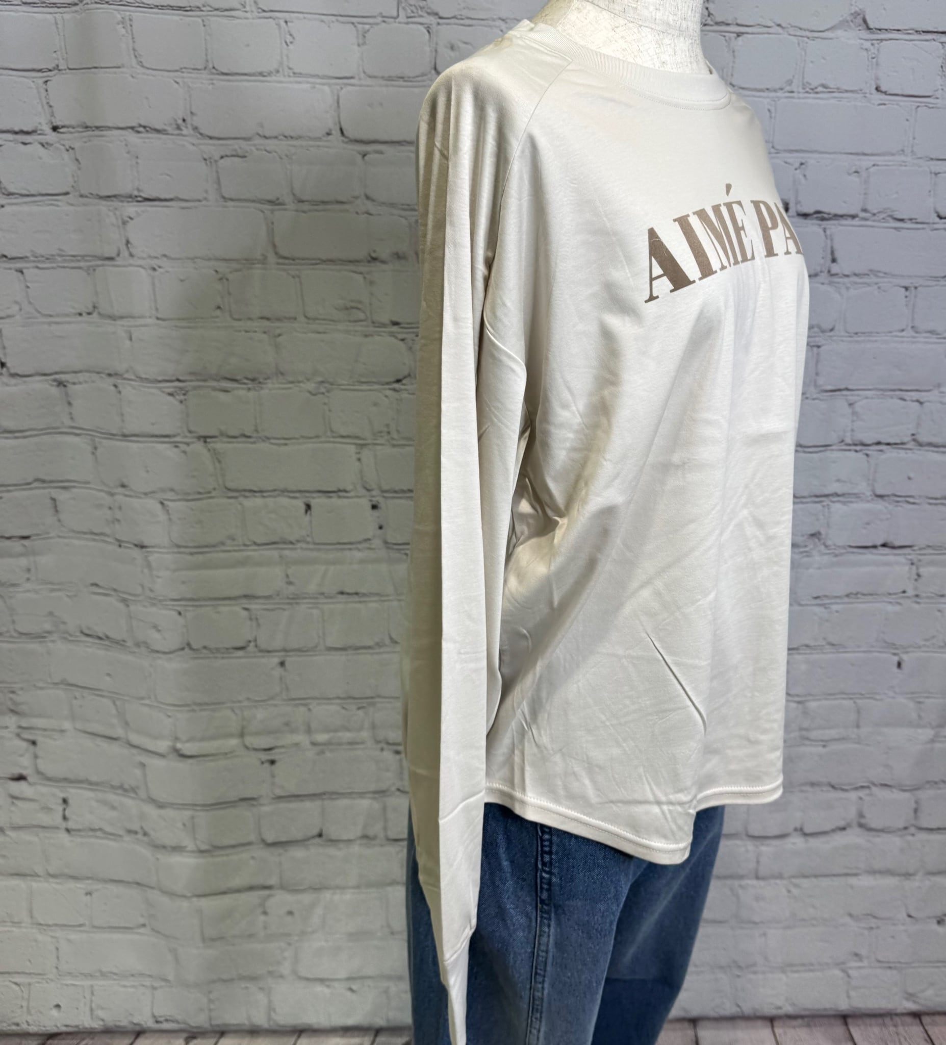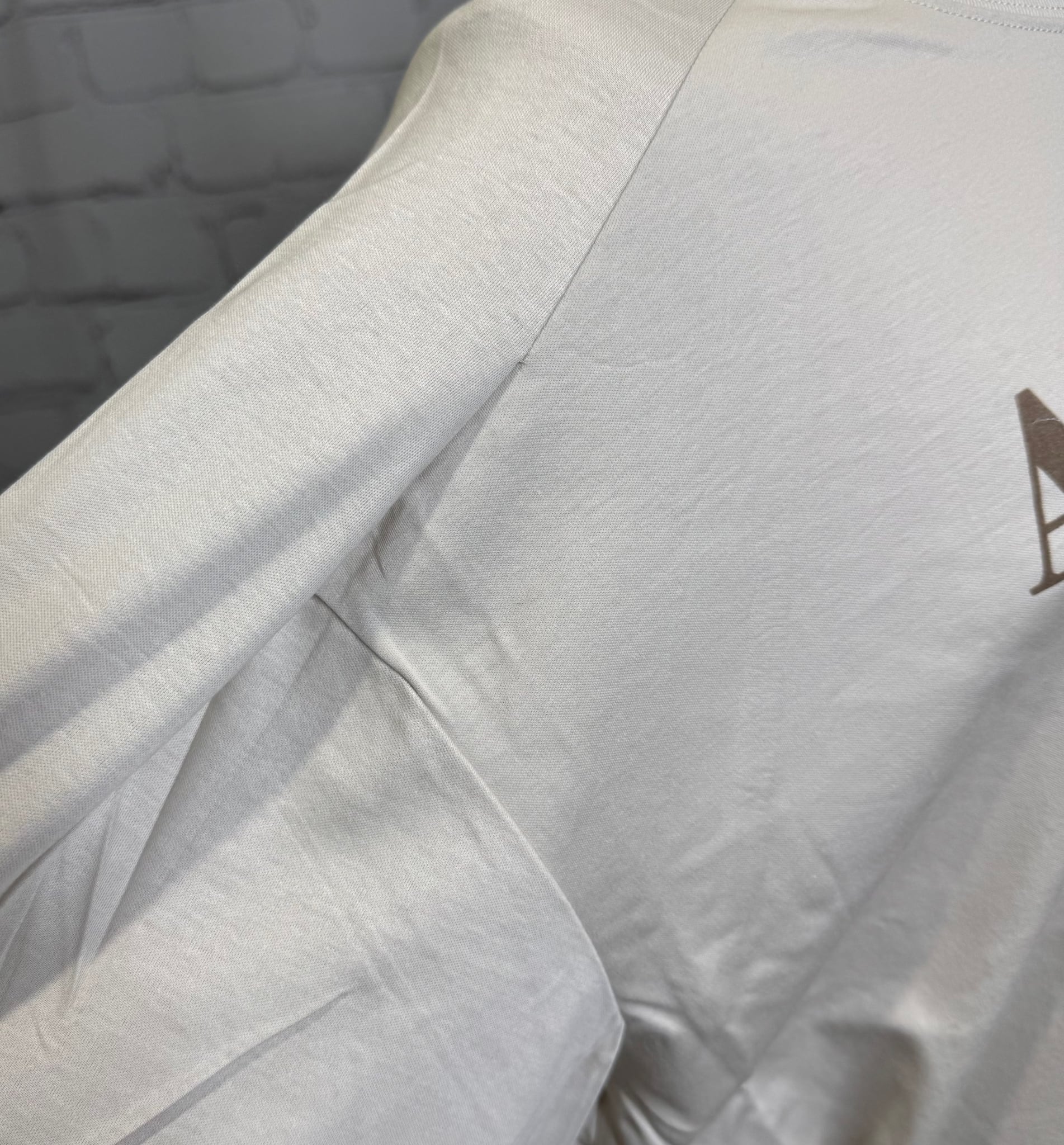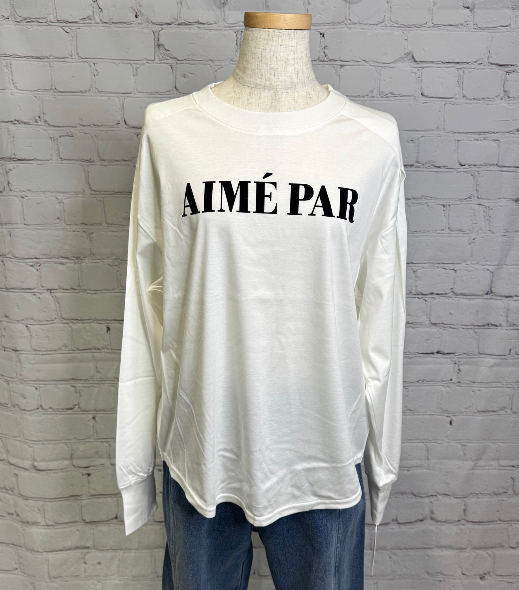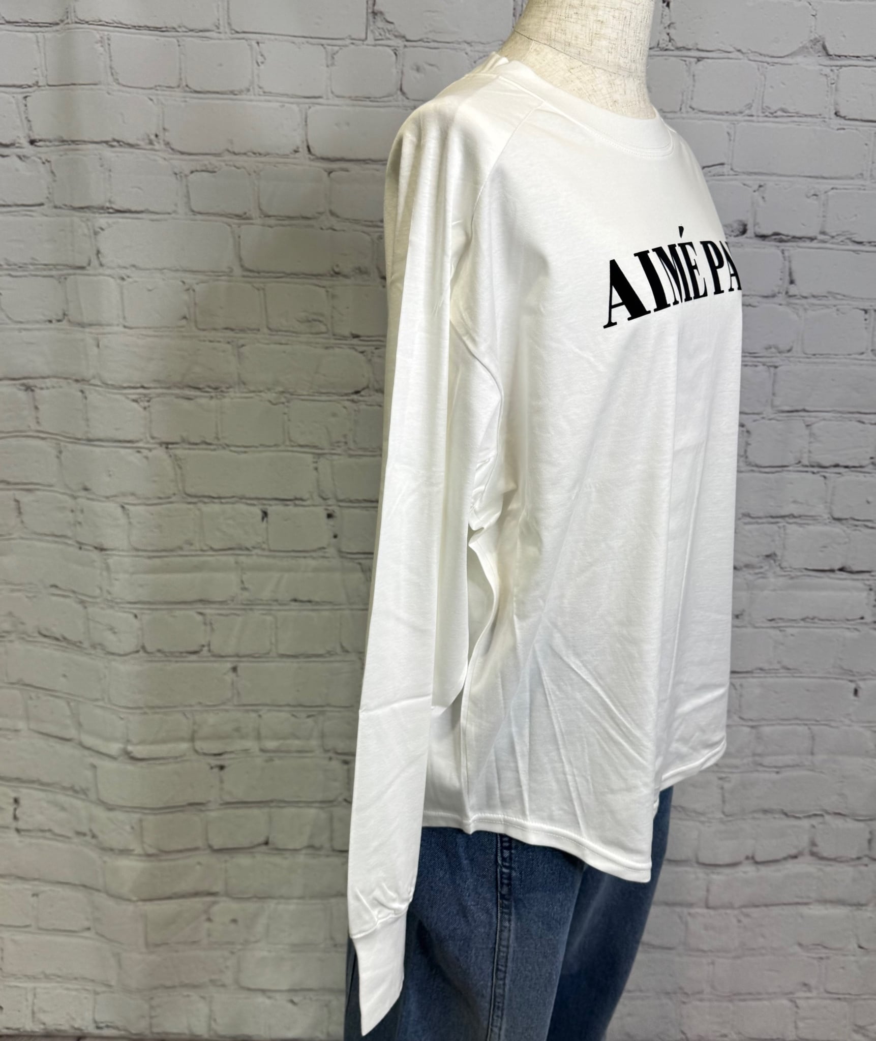 フロッキープリントロゴがポイントのロンTです。肩のタックがポイントで、コットン100%で肌触りが良く程よい丈感でボトムを選ばずパンツでもスカートでもコーデしやすくてヘビロテ間違いなしのアイテムです。お家で洗えます。日本製。