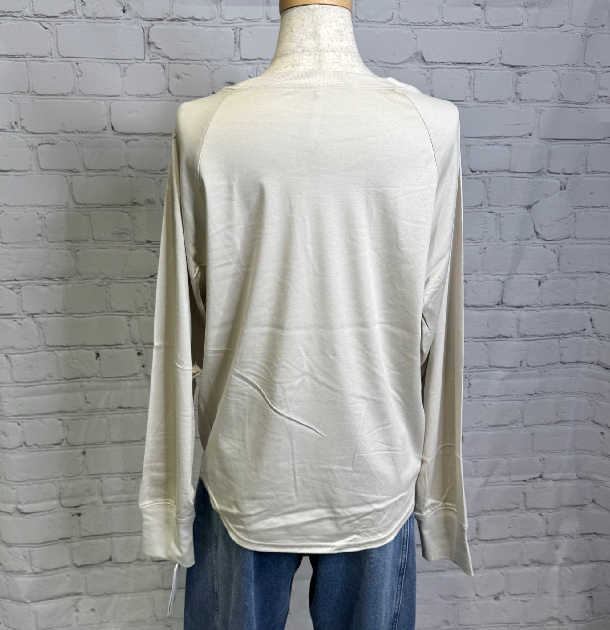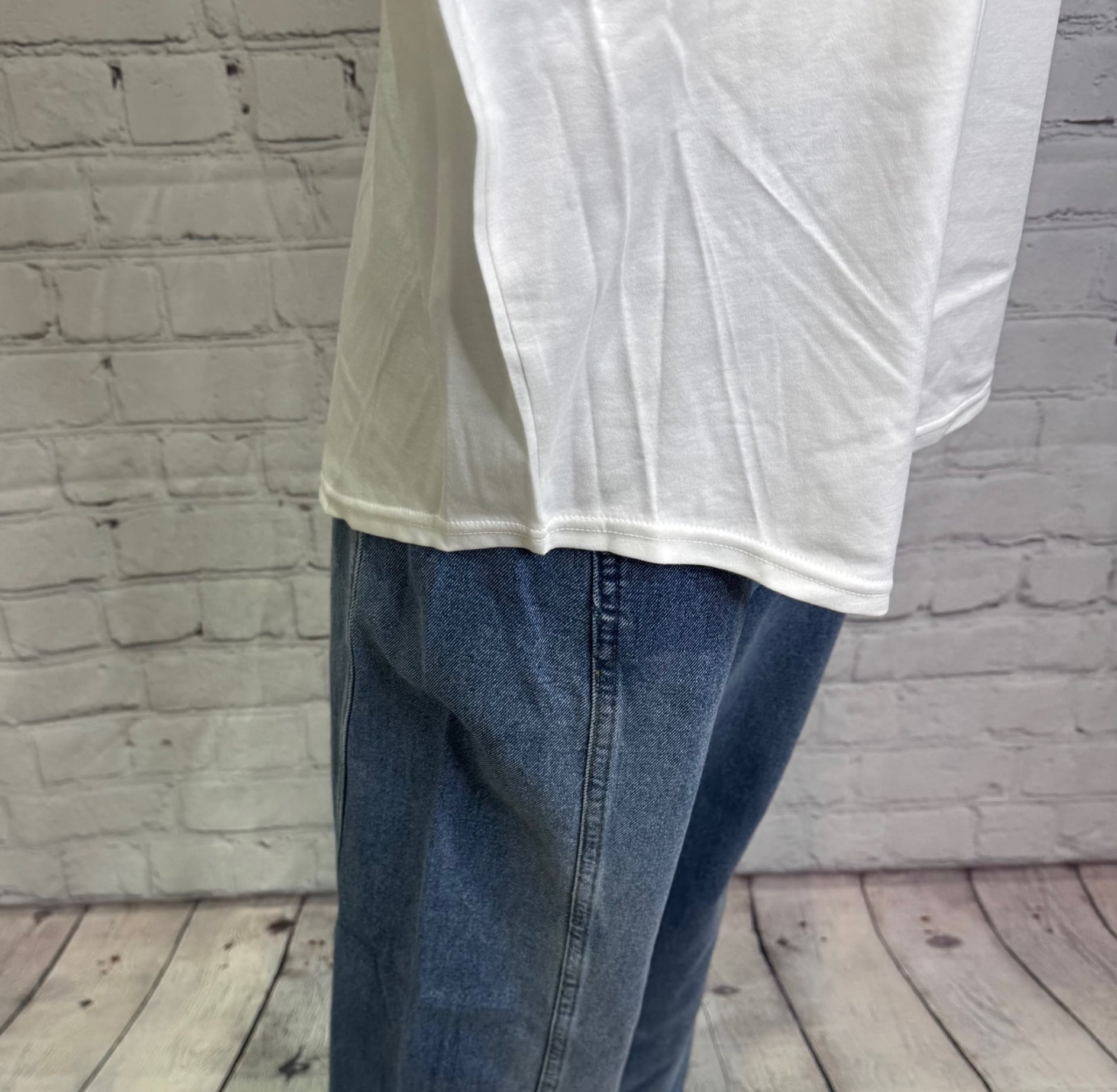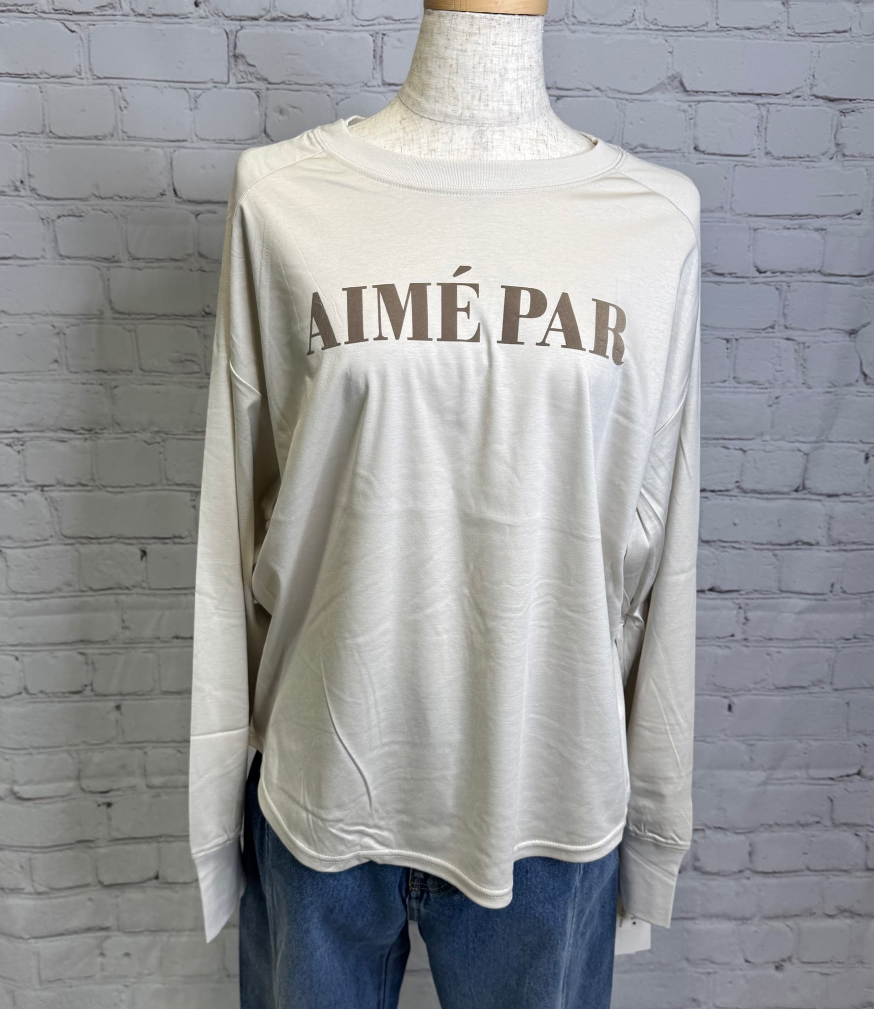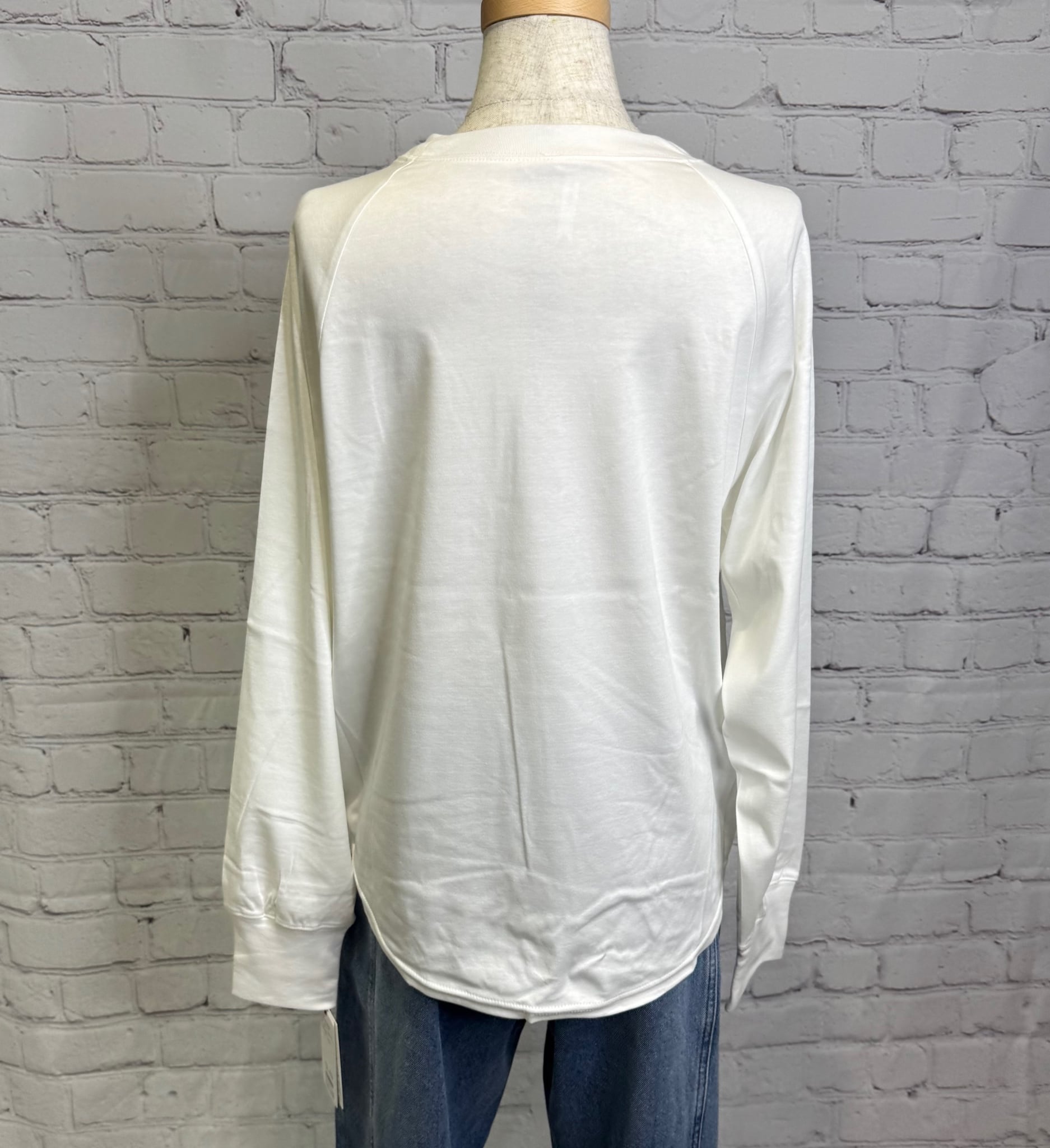 フロッキープリントロゴがポイントのロンTです。肩のタックがポイントで、コットン100%で肌触りが良く程よい丈感でボトムを選ばずパンツでもスカートでもコーデしやすくてヘビロテ間違いなしのアイテムです。お家で洗えます。日本製。