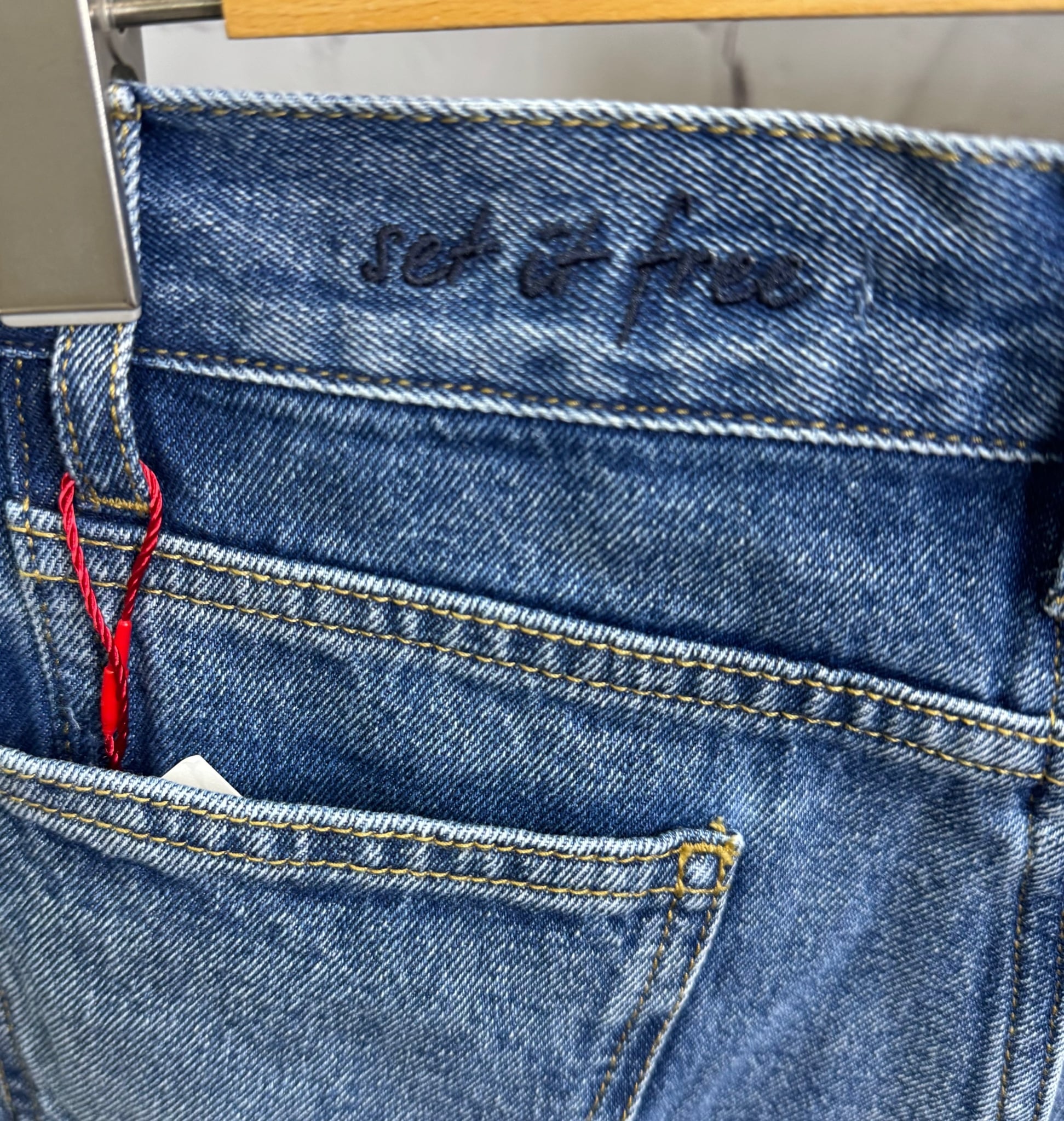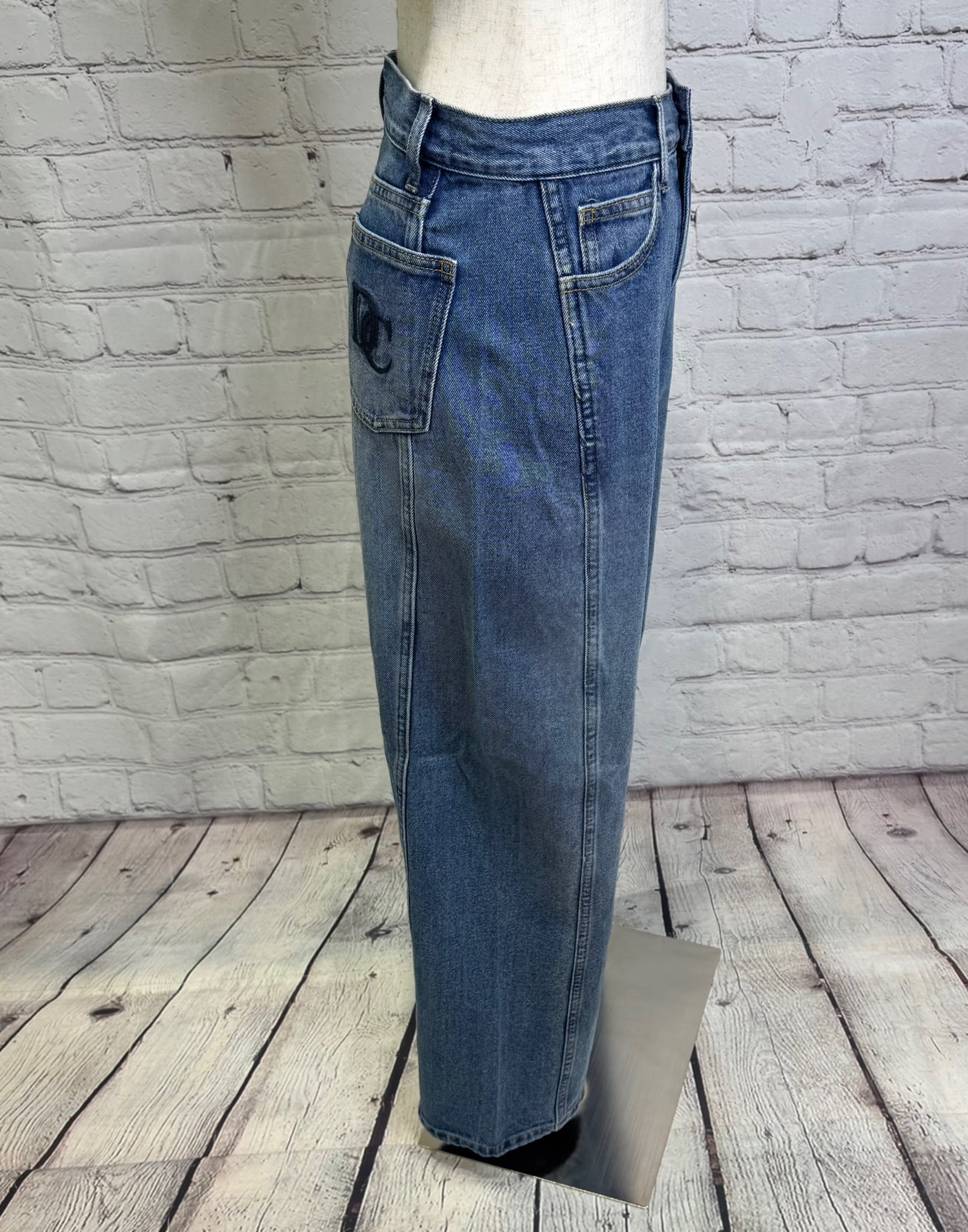 バックポケットとウエストラインの刺繍がポイントのデニムパンツです。こなれ感のあるシルエットで履き心地が良く活躍してくれること間違いなしのアイテムです。お家で洗えます。