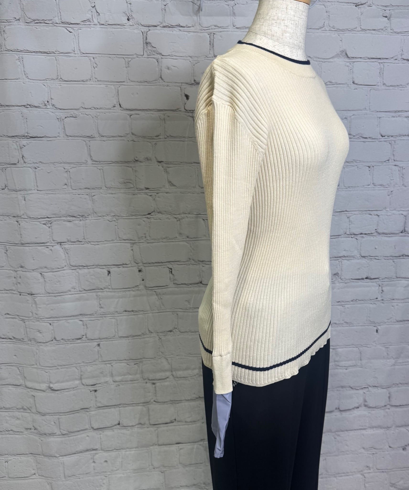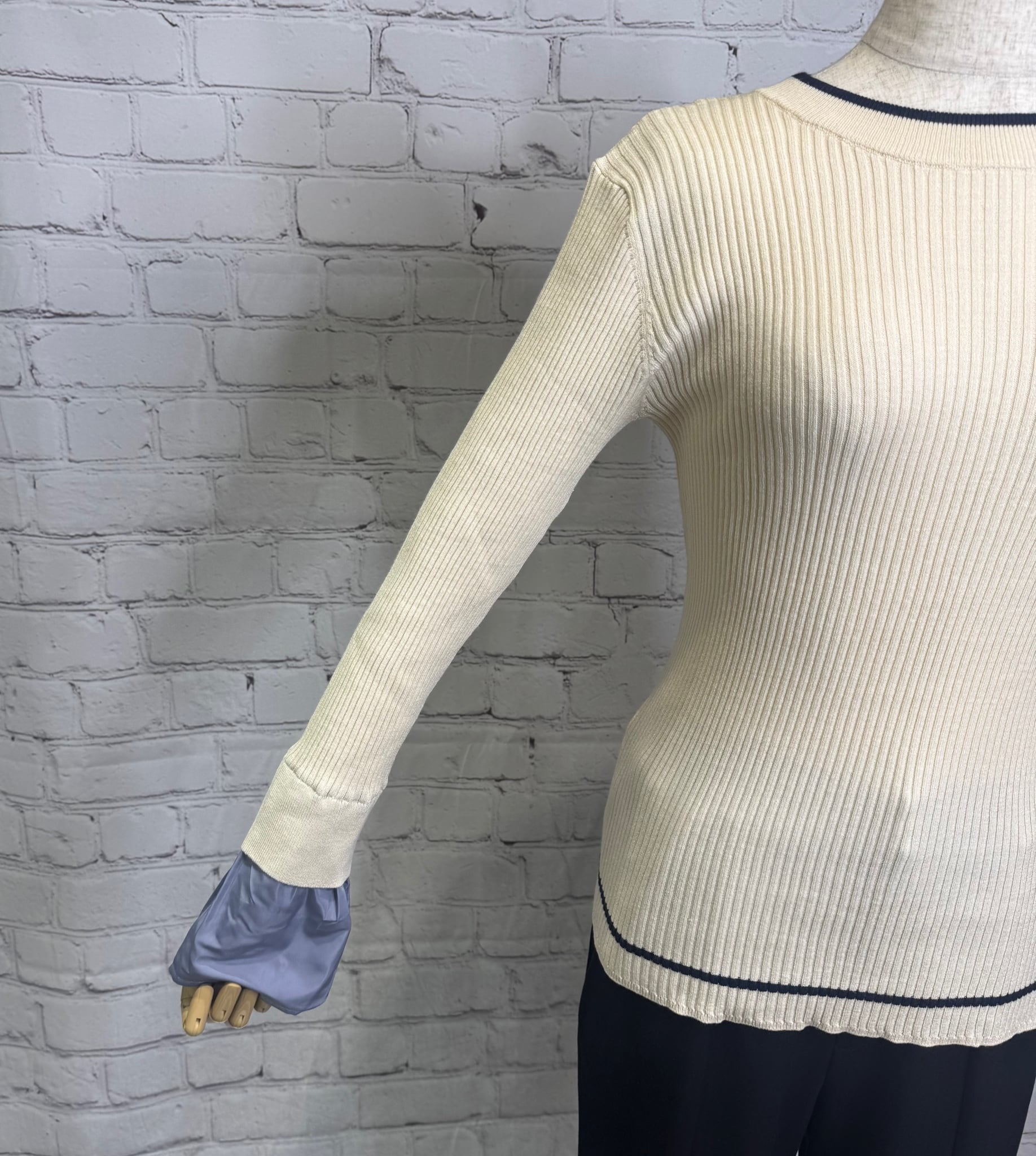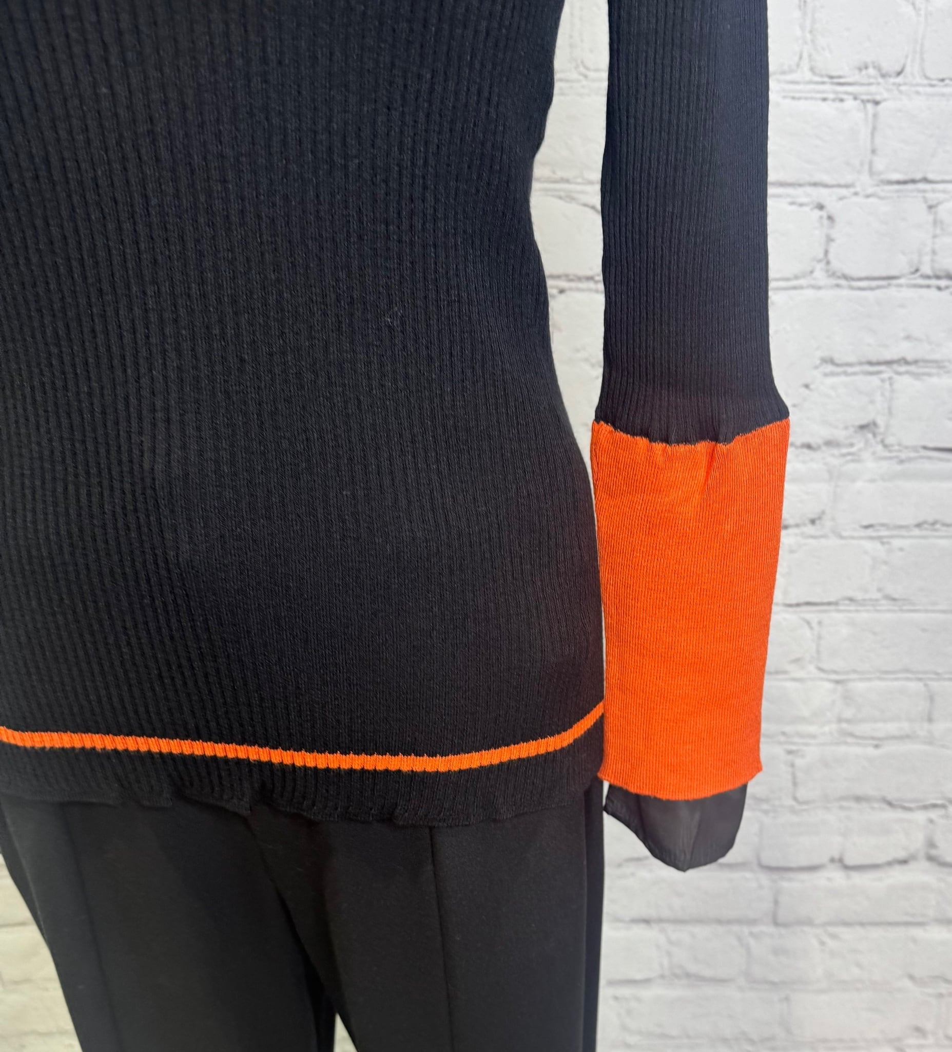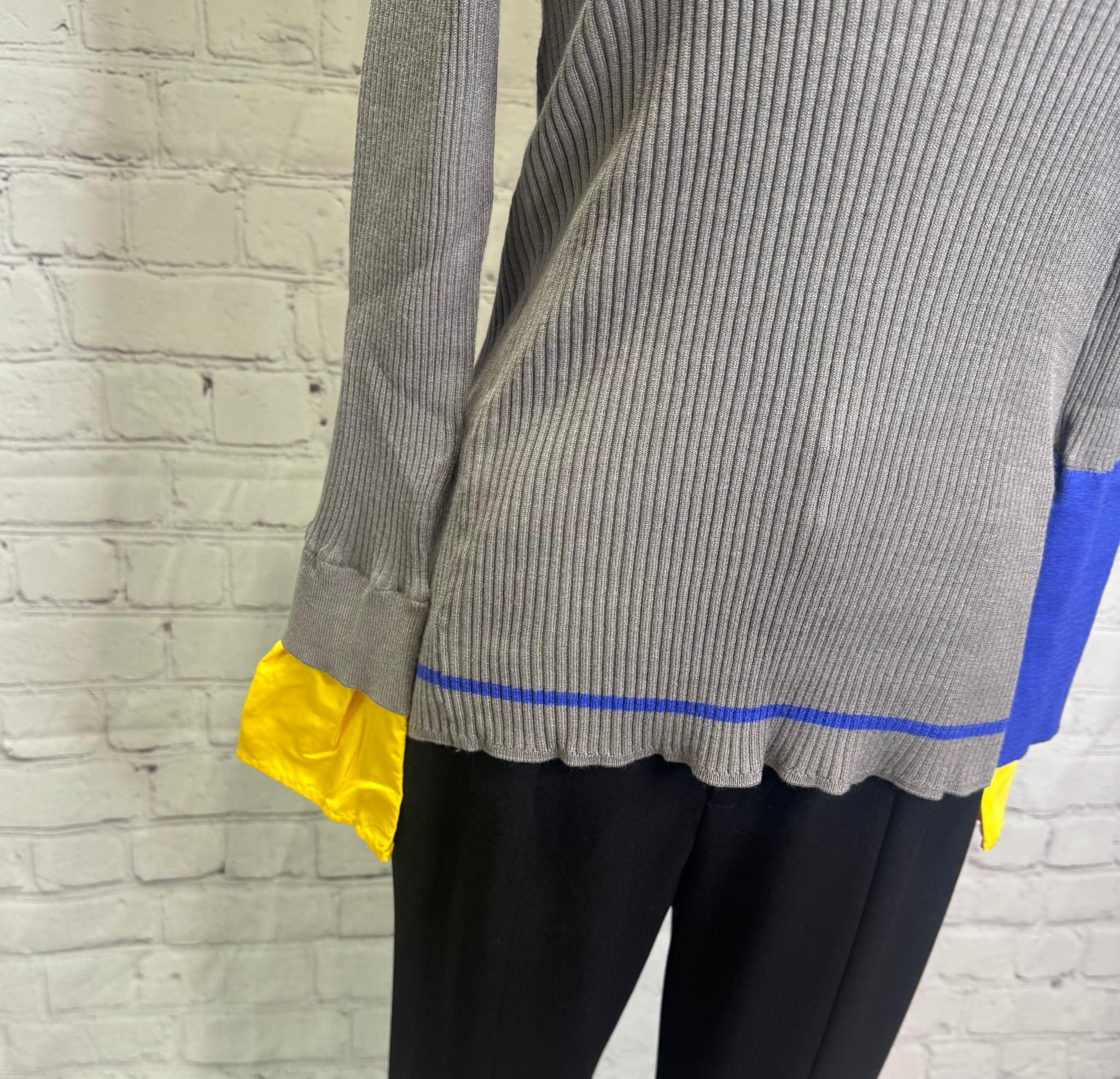 鮮やかなトレンドカラー配色が今年らしく、袖の配色がポイントのレイヤードデザインニットです。衿ぐり、裾は左袖の配色と同様の配色のライン入り。長めの袖丈で布帛でレイヤードにした袖口。リブニットですが、ストレッチが効いていて伸び感がよく、身体のラインを拾わず縦長シルエット。肌触りも良く、程良いフィット感でインナーにも使いやすいおすすめアイテムです。お家で洗えます。
