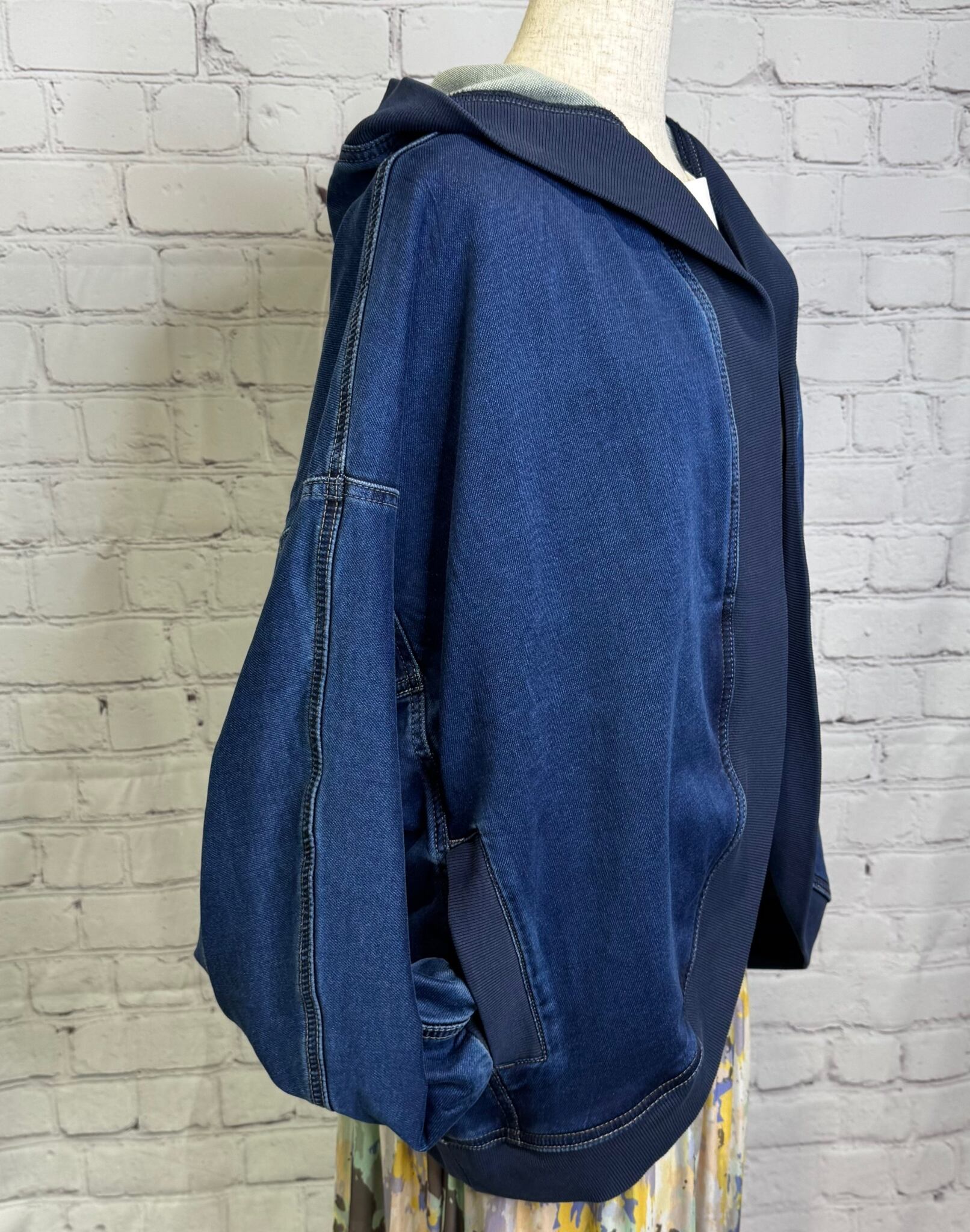 ゆったりシルエットのラグラン袖とフードが大人可愛いブルゾンです! 柔らかデニムで着心地も良く、長い季節着用できるおすすめアイテムです♪ ボトムを選ばず、パンツでもスカートでもサッと羽織るだけでこなれ感がありおしゃれ見えしてくれます。ポケットあり。
