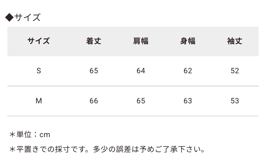サイズ:S(着丈65㎝ 身幅62㎝)