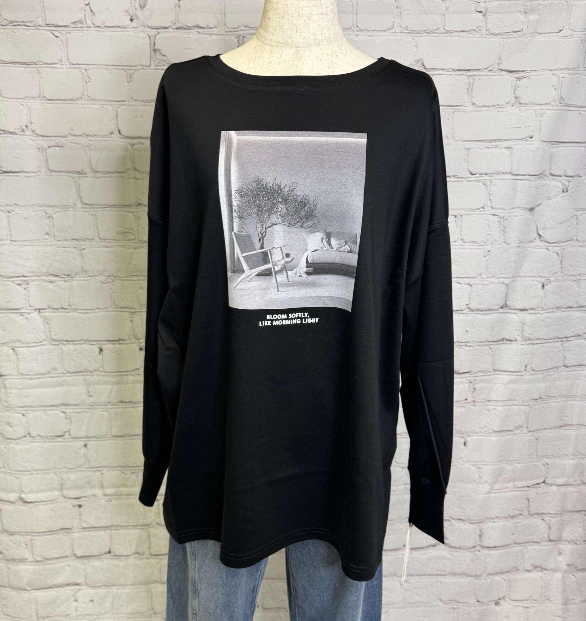 フォトプリントとロゴの前後2wayで着用頂けるロンTです。コットン100%で肌触りも良く着心地が良いロンTです。お家で洗えます。