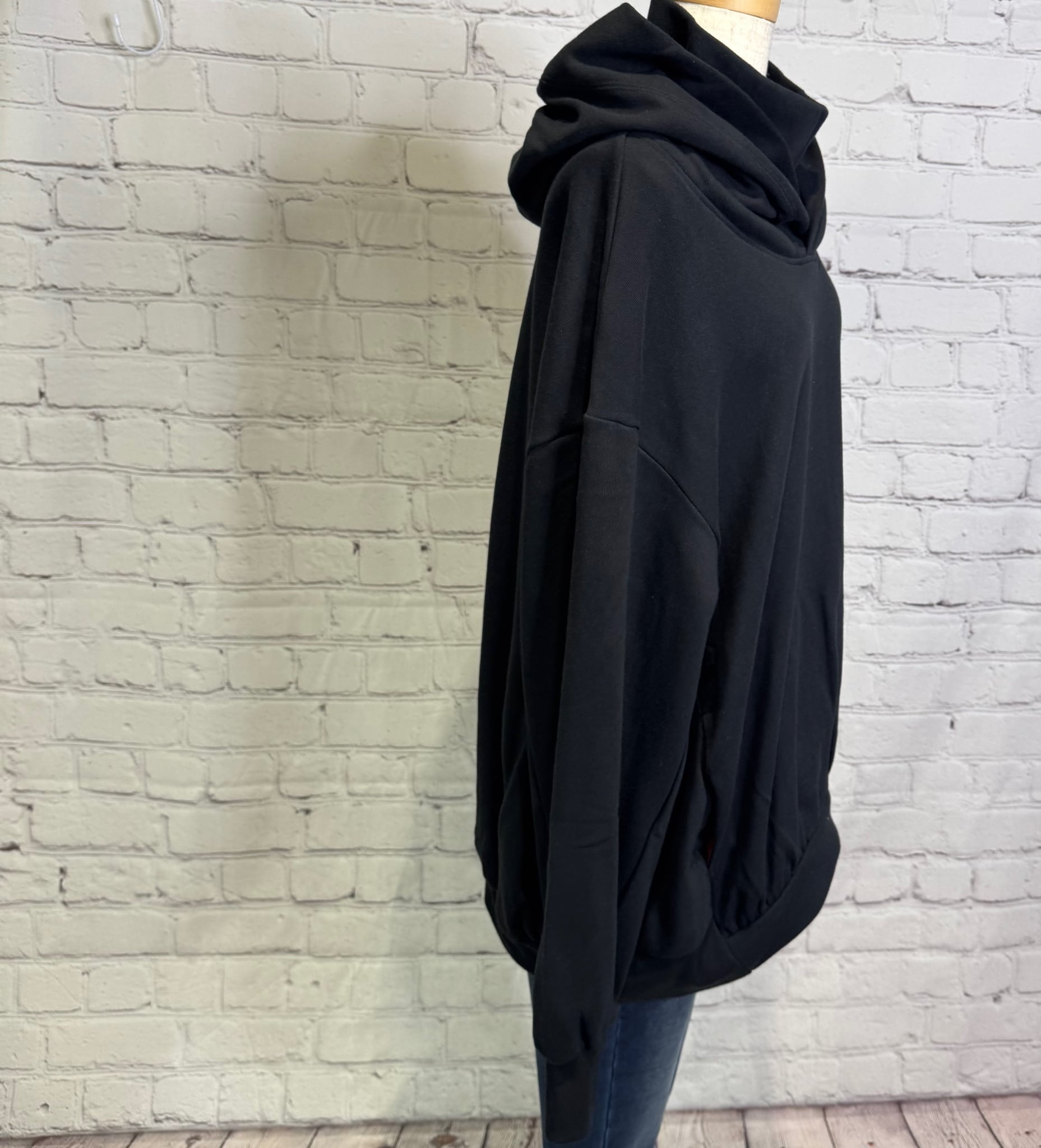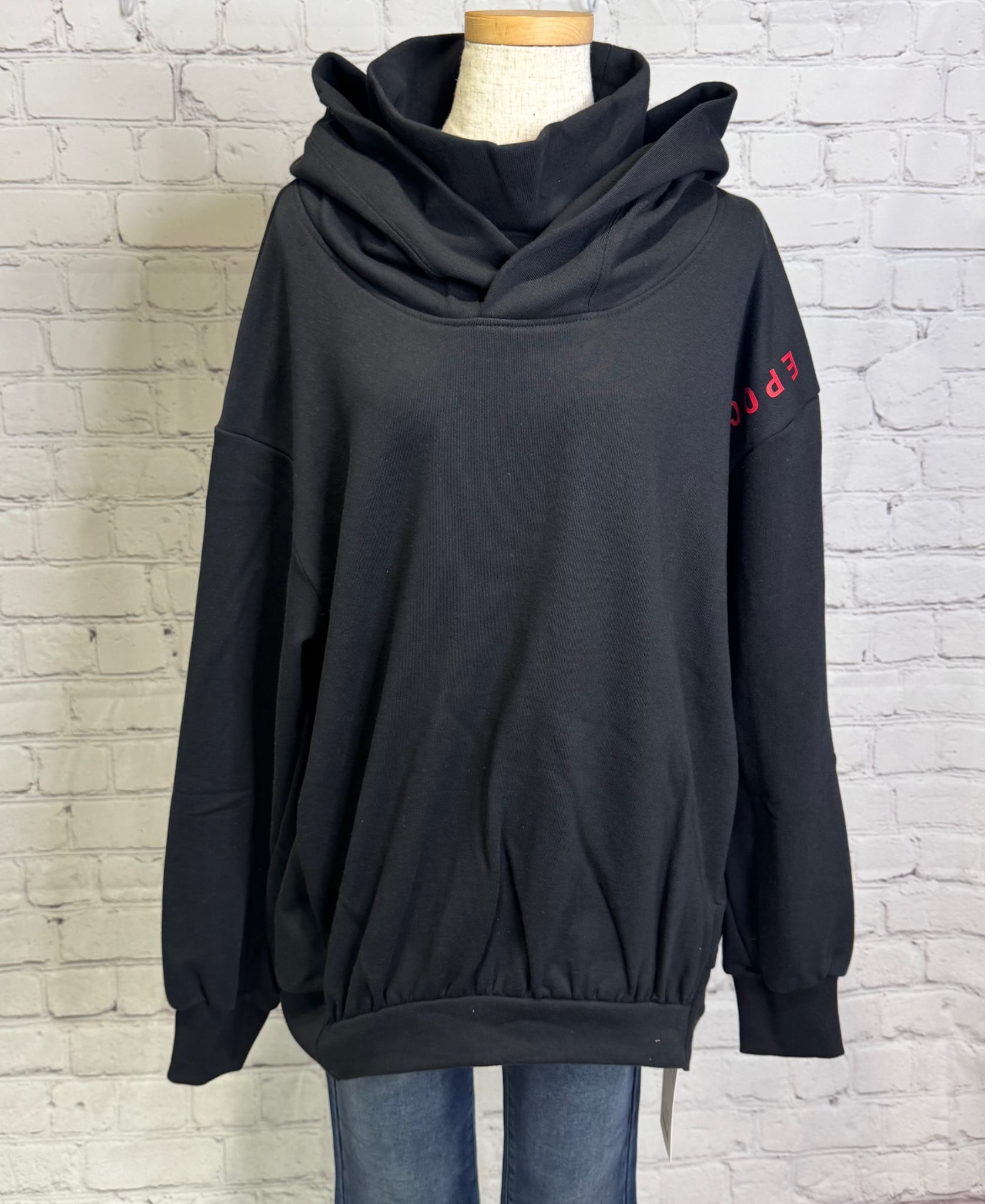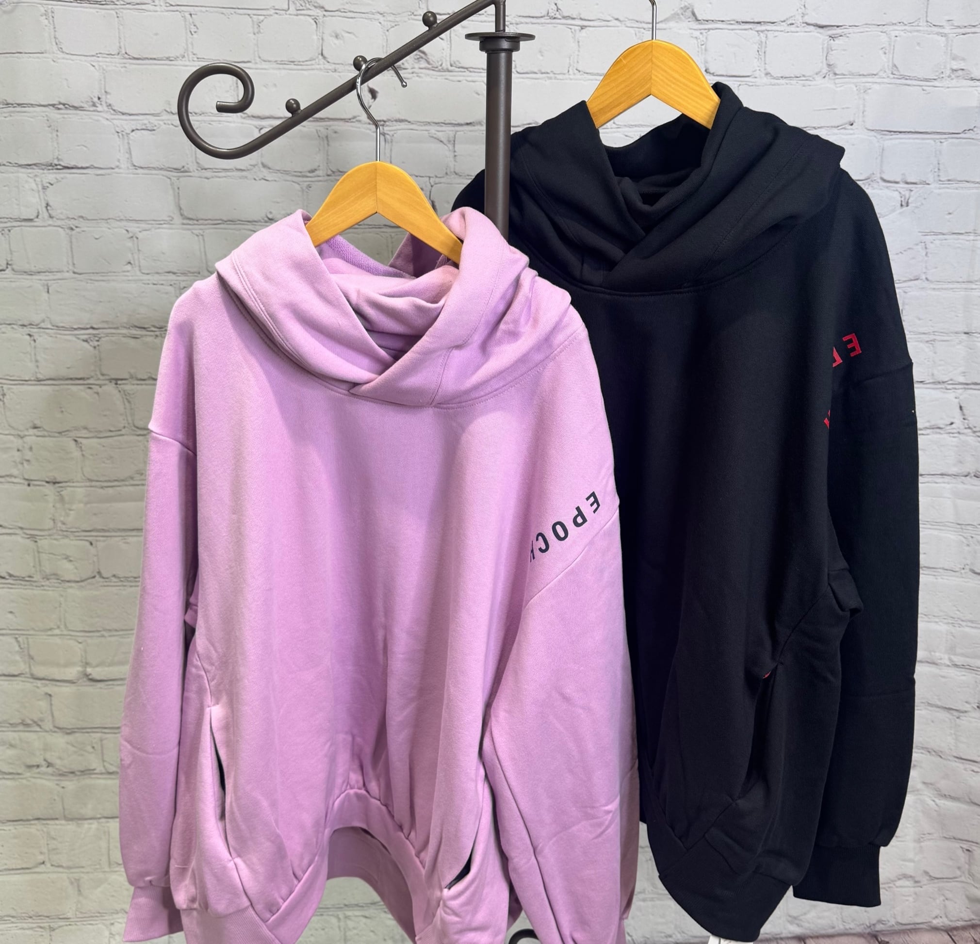 ゆったりとしたシルエットに、高めのネックラインと袖の縦ロゴが映えるフーディ。カジュアルなアイテムながら、配色とフォントのバランスにこだわり、モードな雰囲気に♡ 肌触りの良い裏毛素材で長めの着丈がウエスト、ヒップラインも隠してくれる嬉しいデザインです!ポケットあり。お家で洗えます。 日本製。