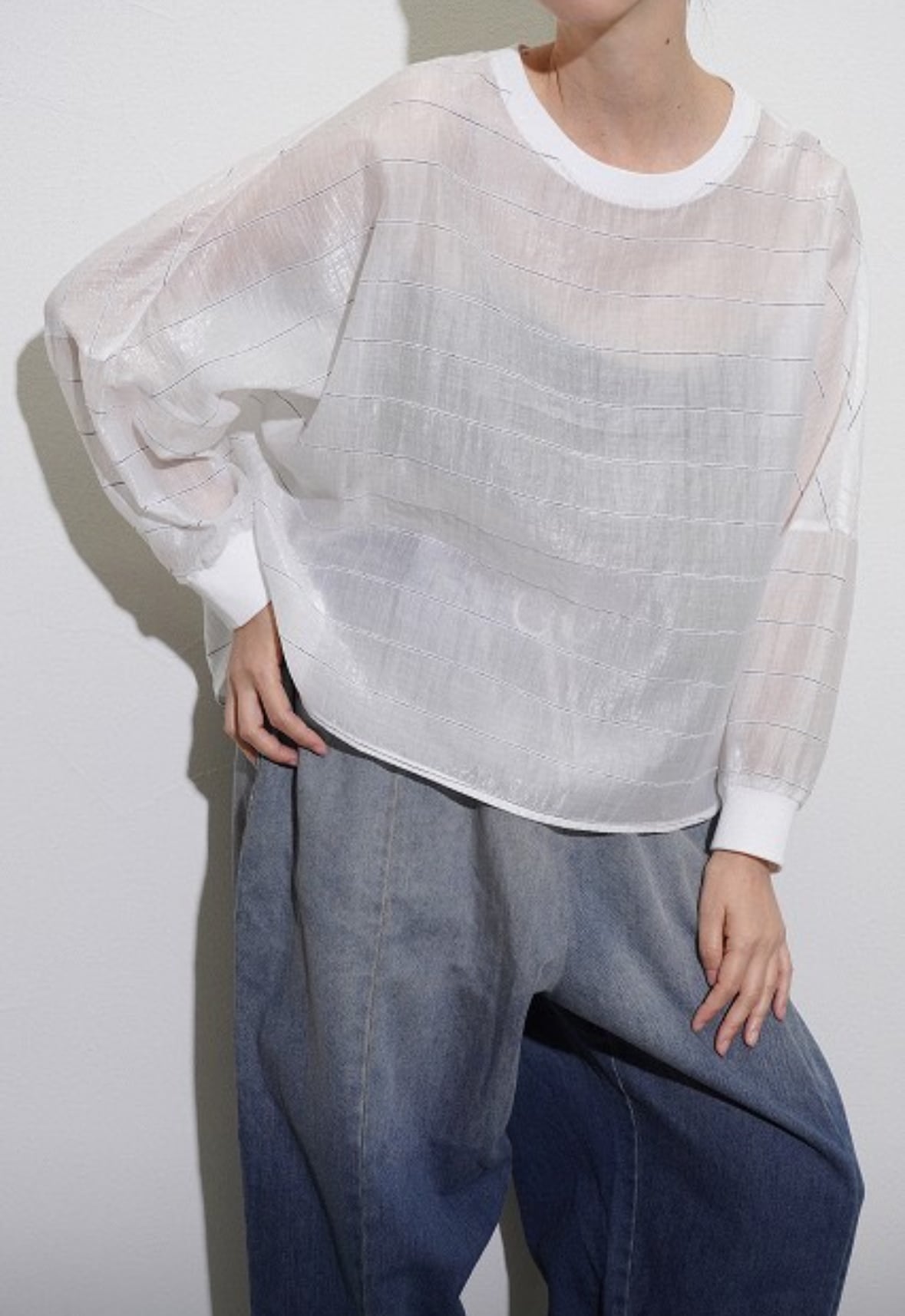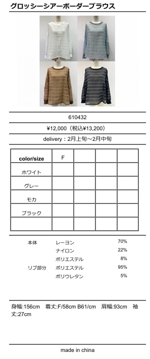 [予約販売] CYAN TOKYO シアントーキョー グロッシーシアーボーダーブラウス 610432 (2/上旬〜2/中旬入荷予定)