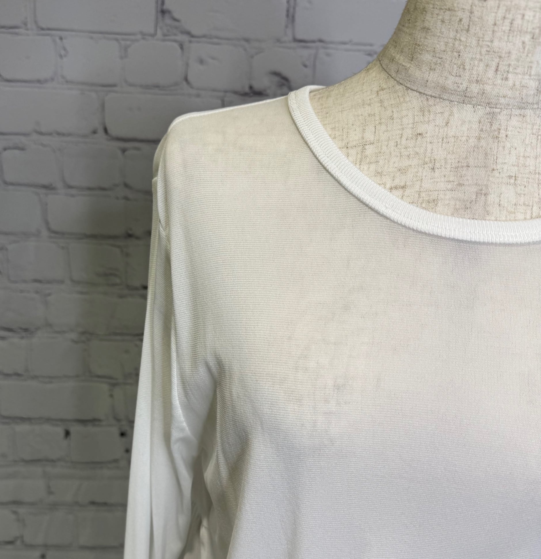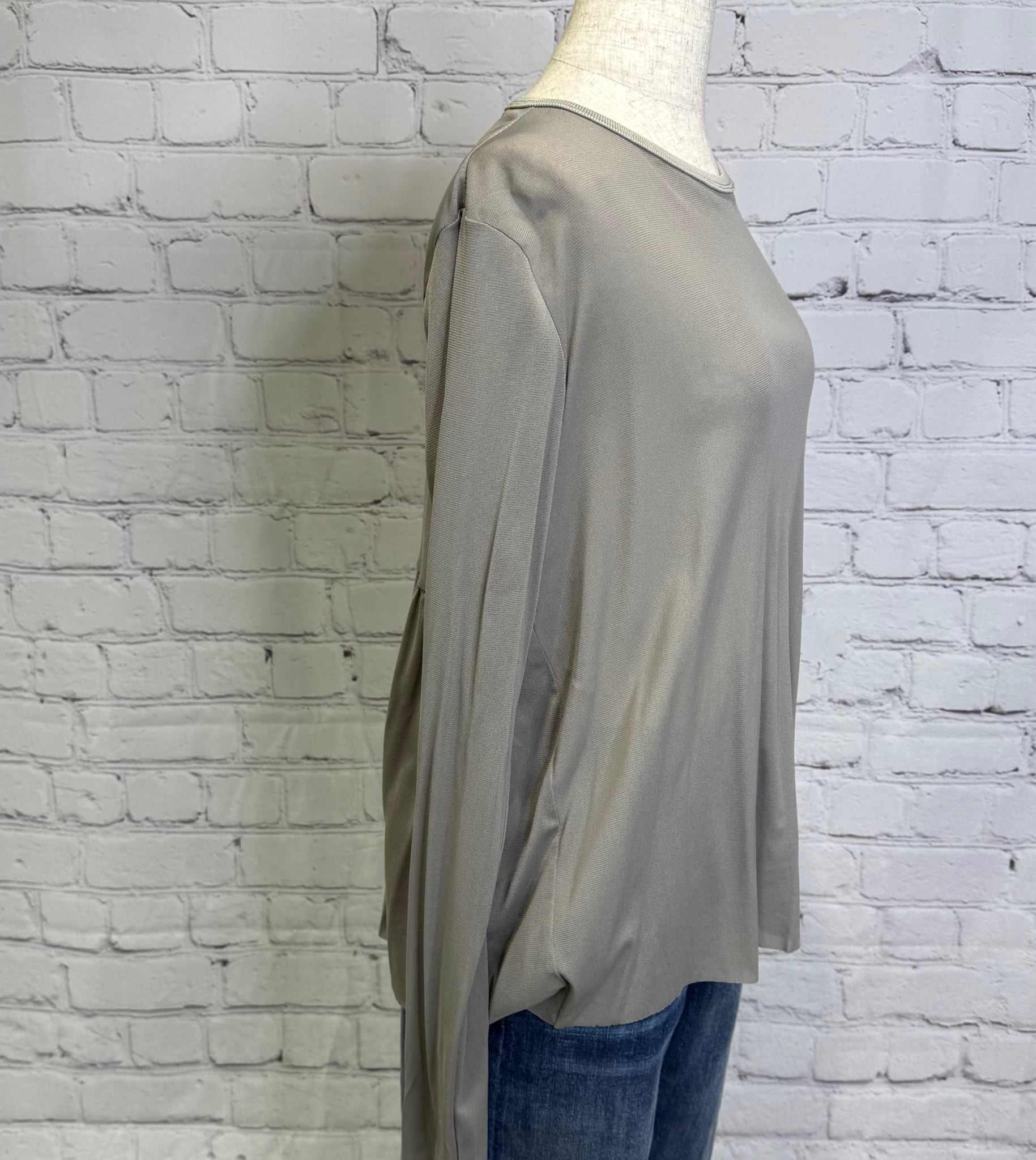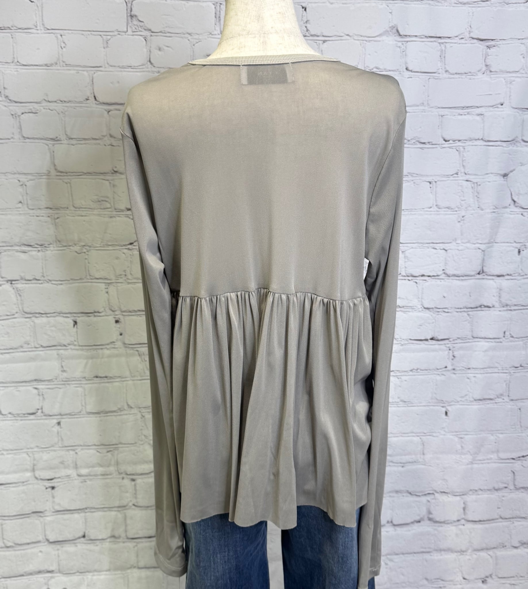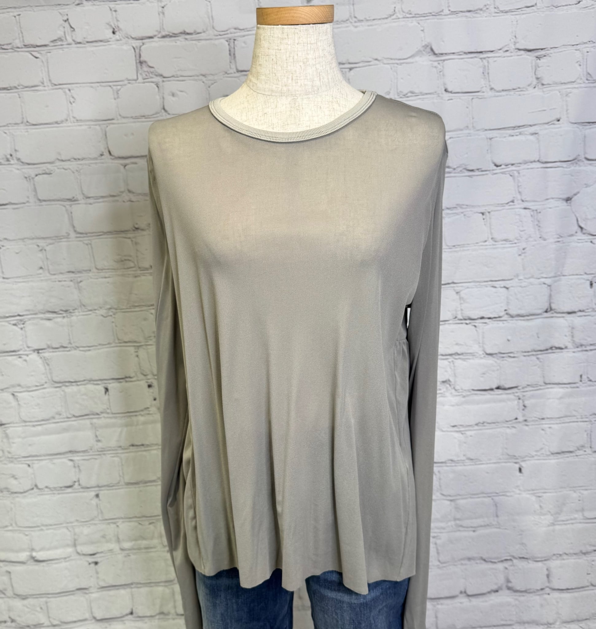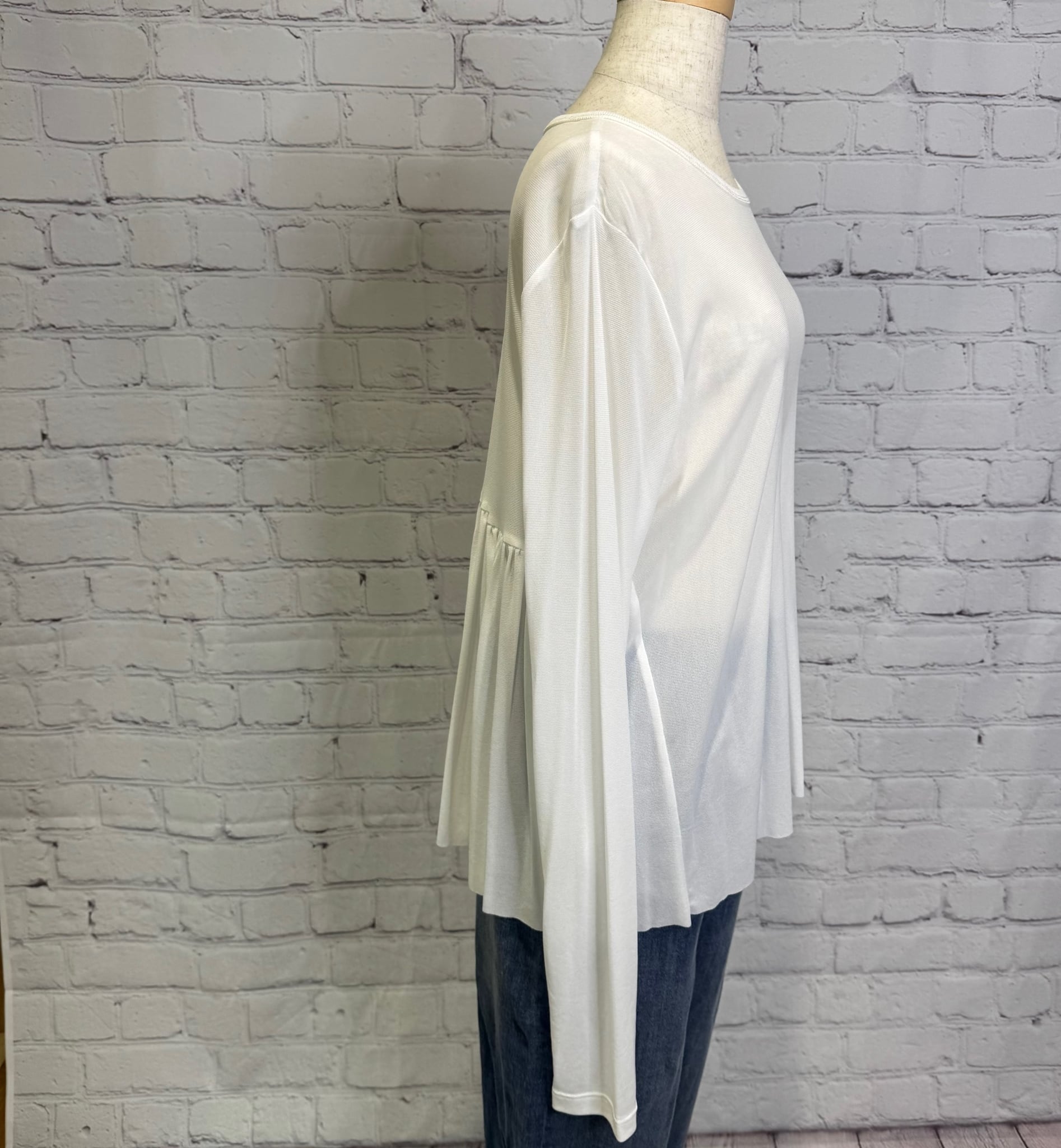 フロントはシンプルでパックギャザーがポイントのプルオーバーです。ストレッチがとても効いていて、柔らかくしなやかで繊細な高品質ナイロン生地を使用。袖口や裾からちらっと見える感じが上品で大人可愛いく、様々なアイテムのインナーに活用できる人気のおすすめ商品です。お家で洗えます。