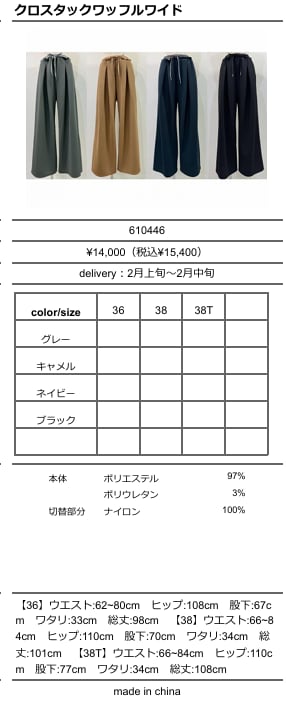 [予約販売] CYAN TOKYO シアントーキョー クロスタックワッフルワイド 610446 (2/上旬〜2/中旬入荷予定)