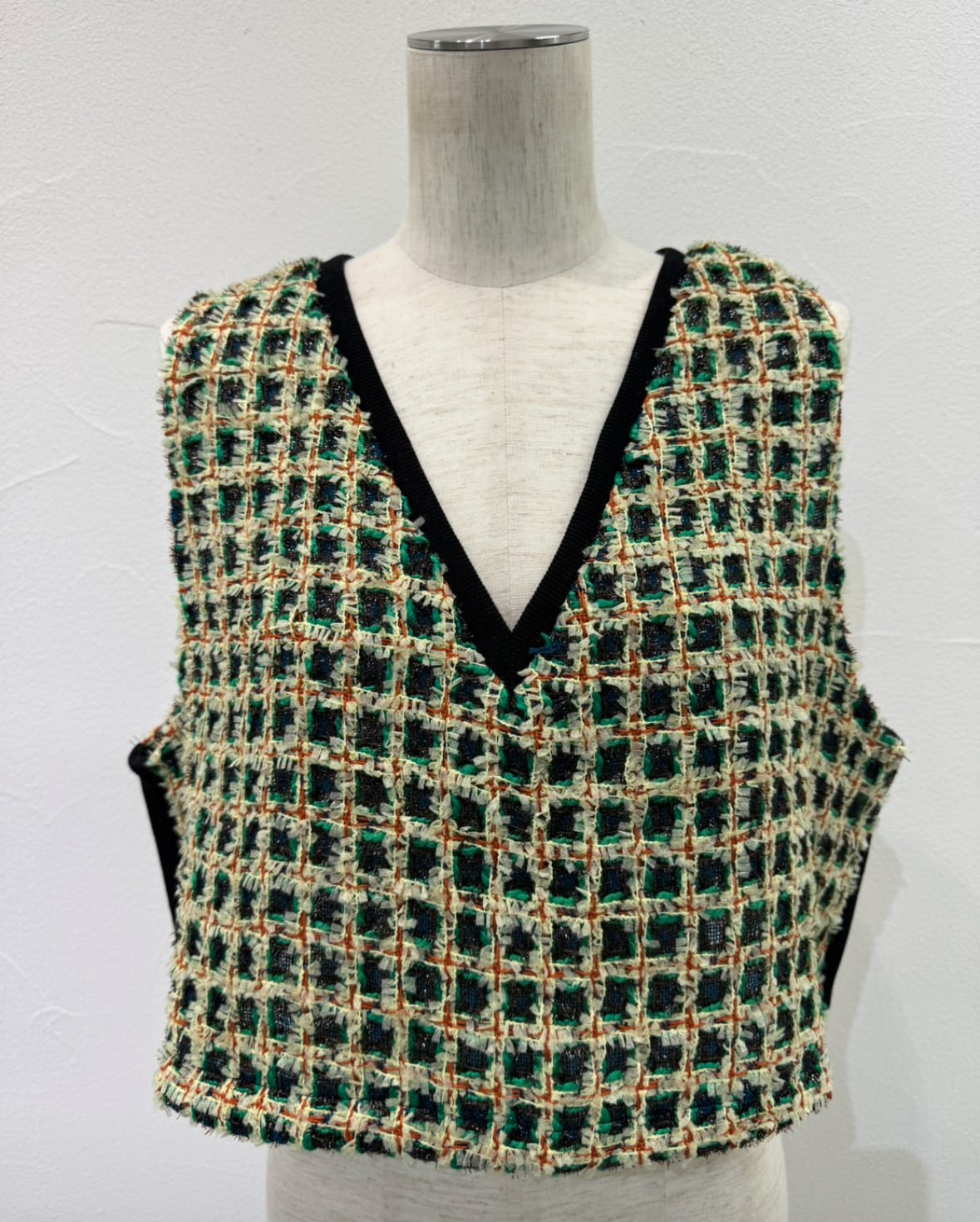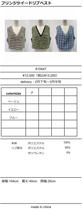 [予約販売] CYAN TOKYO シアントーキョー フリンジツイードリブベスト 610447 (2/下旬〜3/中旬入荷予定)