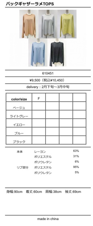 [予約販売] CYAN TOKYO シアントーキョー バッグギャザーラメTOPS 610451 (2/下旬〜3/中旬入荷予定)
