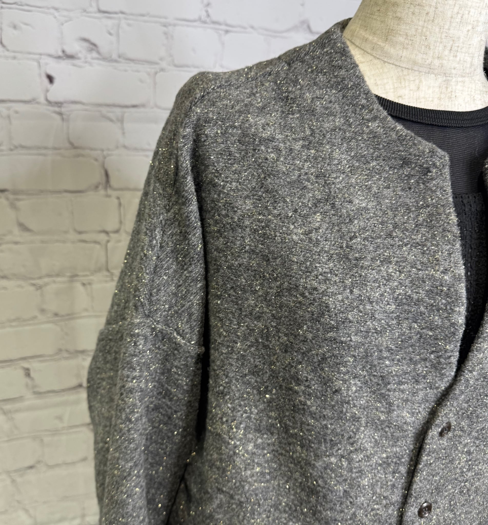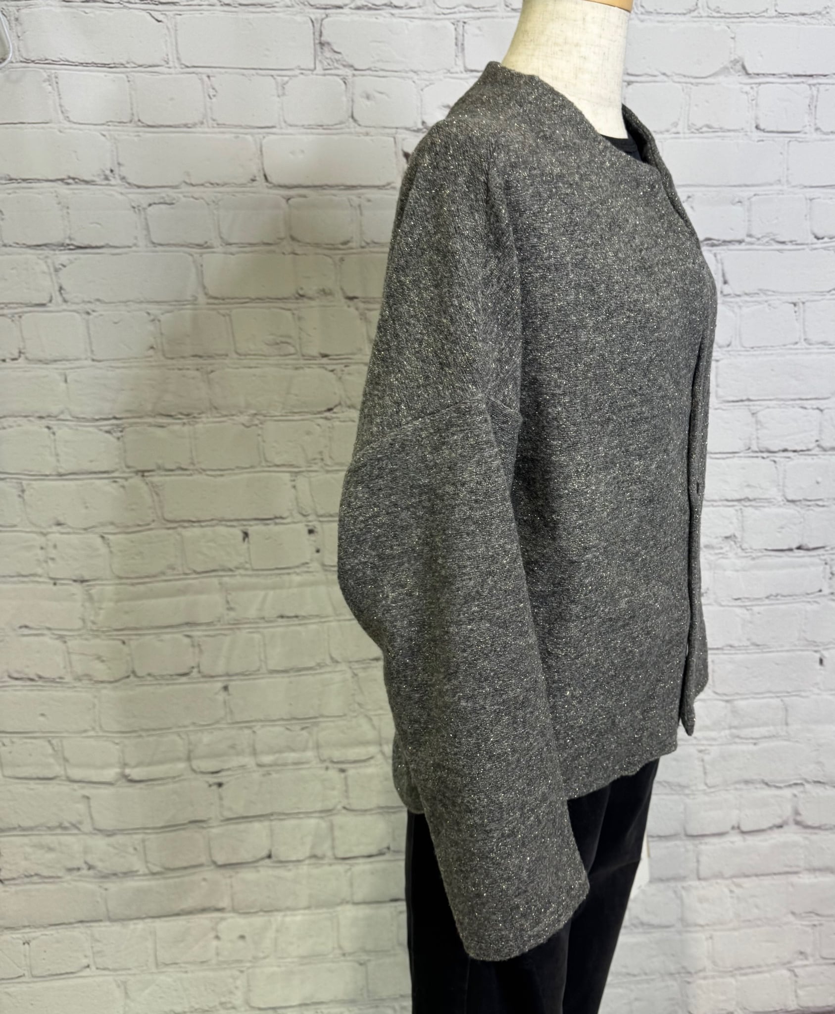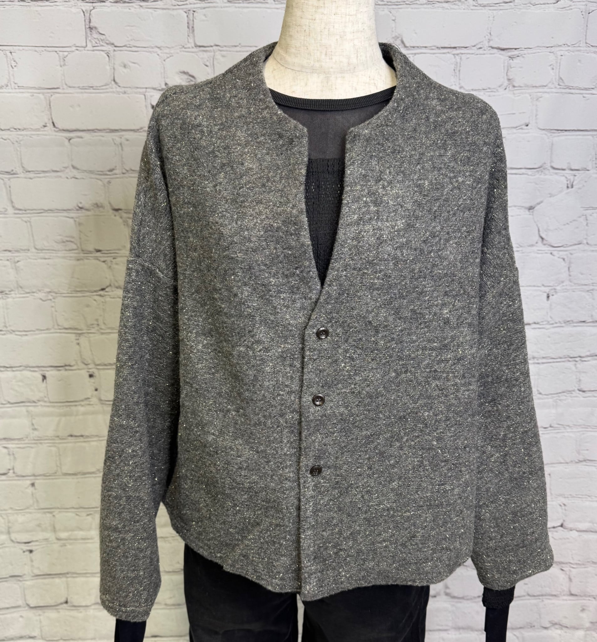 軽くて柔らかい人気のスライバーニットラメカーディガンです。杢調の無地に上品見えするゴールドラメを編みこんでいます。程よい丈感でボトムを選ばずコーデしやすいアイテムです。日本製。