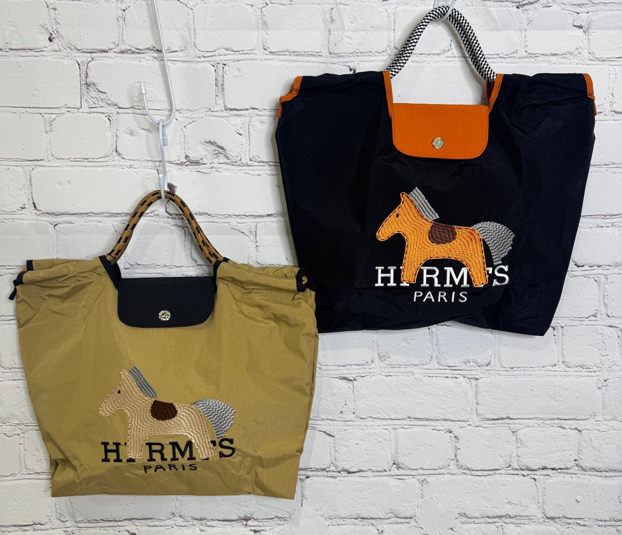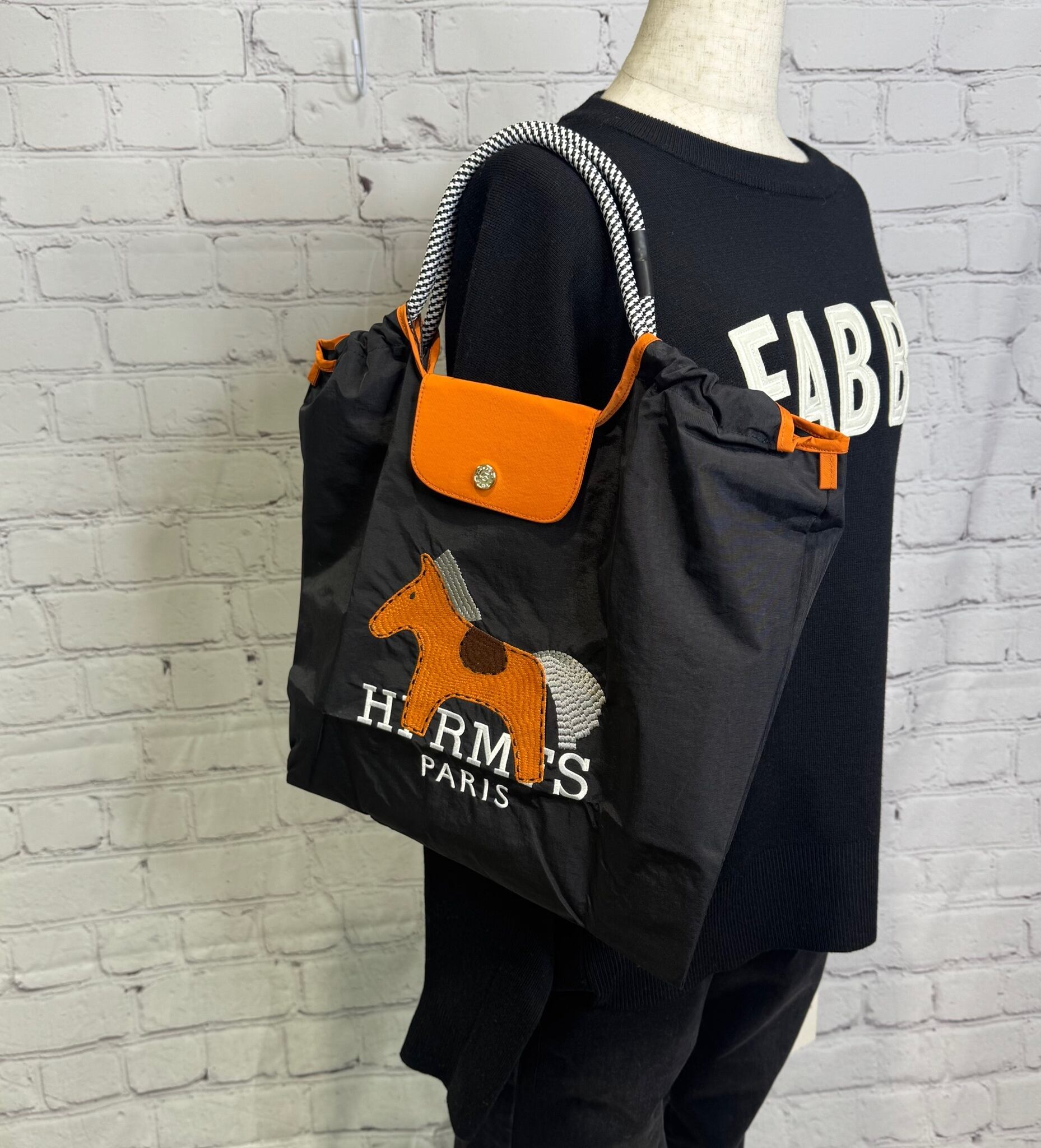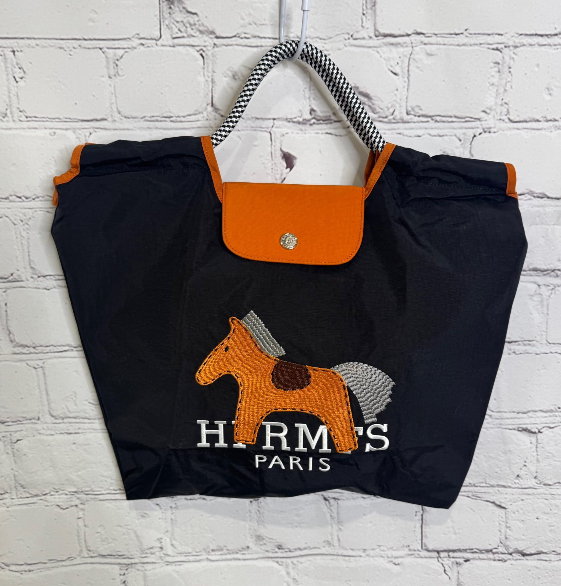 お馬さんの刺繍が可愛いトートバッグです。A4サイズも入りフラップありで実用的。内側ファスナーポケットあり。
