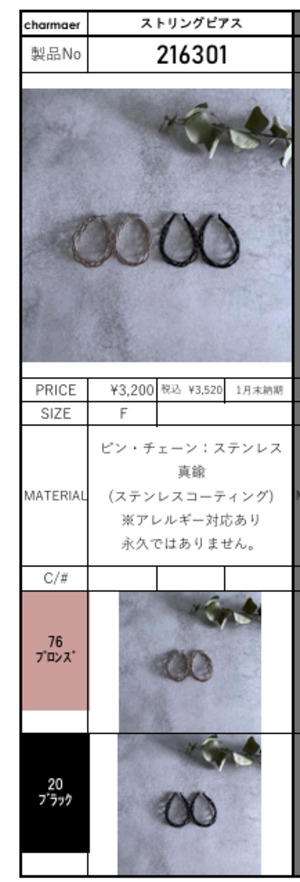 ピン・チェーン:ステンレス 真鍮(ステンレスコーティング)