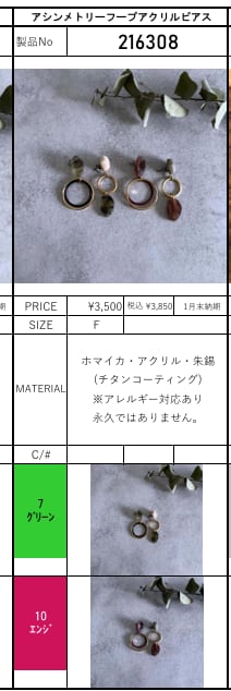 charmaer チャーマー アシンメトリーフープアクリルピアス 216308