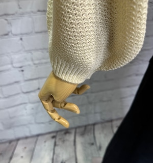 とても柔らかく、落ち感のあるニットです。裾の絞り具合が丈感の調整にとても便利でボトム選びに困らないニットです。編み柄が立体的で大人な印象。コーディネートが非常にまとまりやすく、大人カジュアルコーデにおすすめのアイテムです。ayane大人気のショルダーレースタンク(816312)との相性も◎