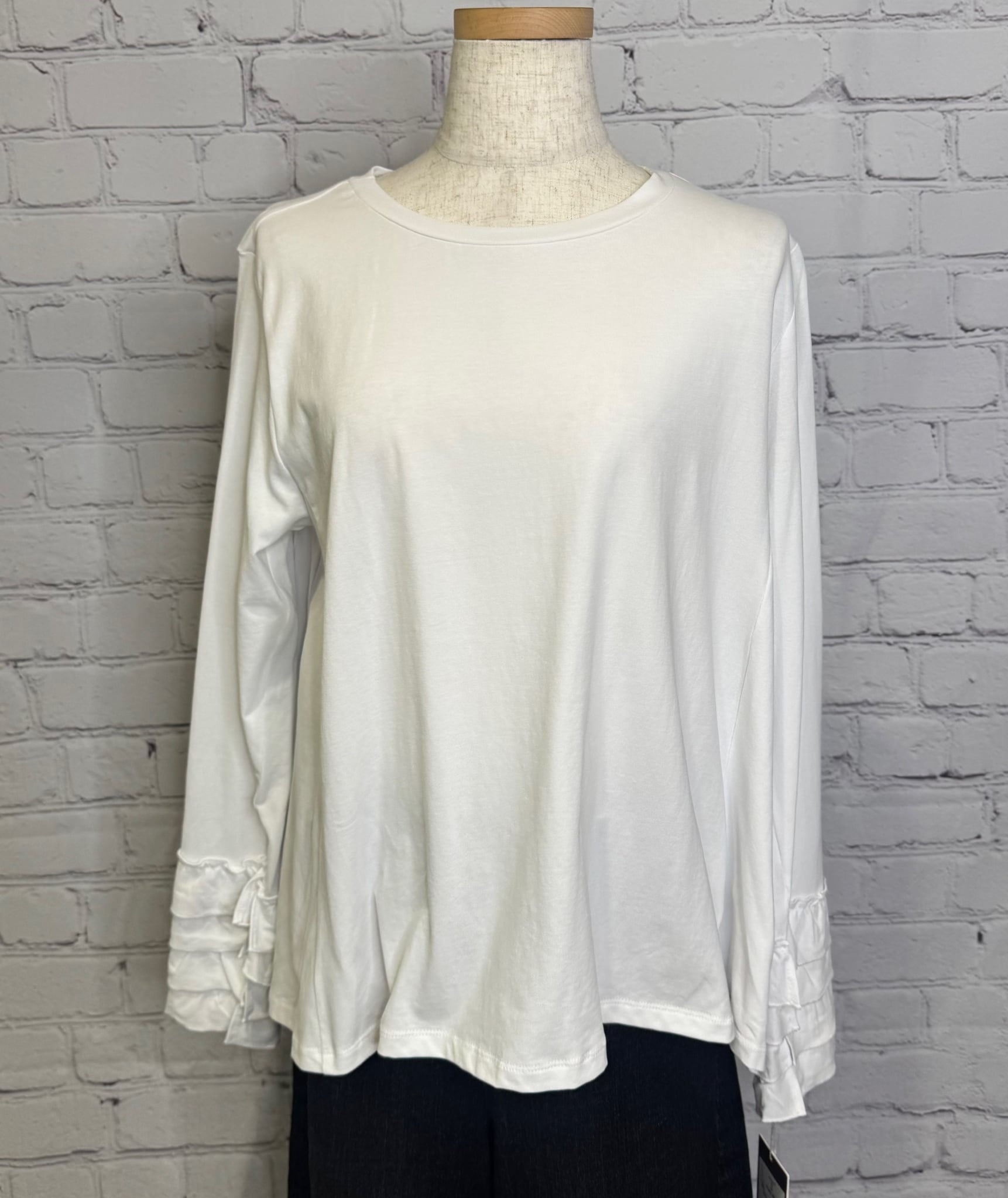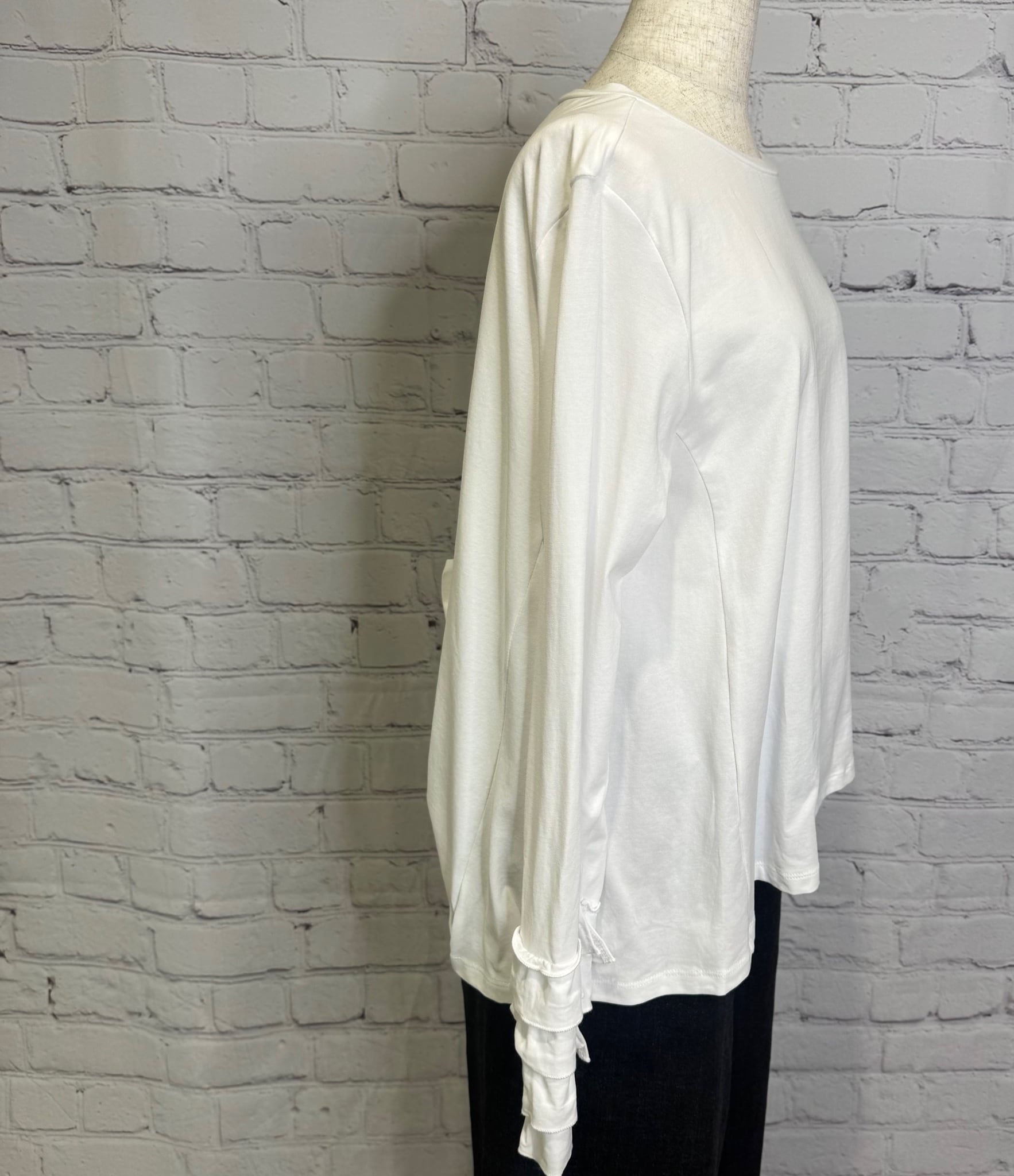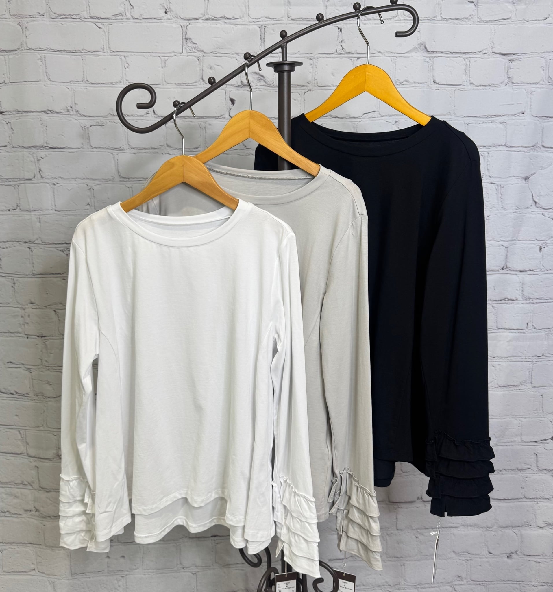前回の展示会で大好評だったフリルカフロンT。今回はインしない設定のフレアタイプの登場です。コーディネートや季節に合わせて使いわけて頂くことをおすすめいたします。インしない場合はお腹に密着しないこちらのフレアタイプが安心です♡ お家で洗えます。