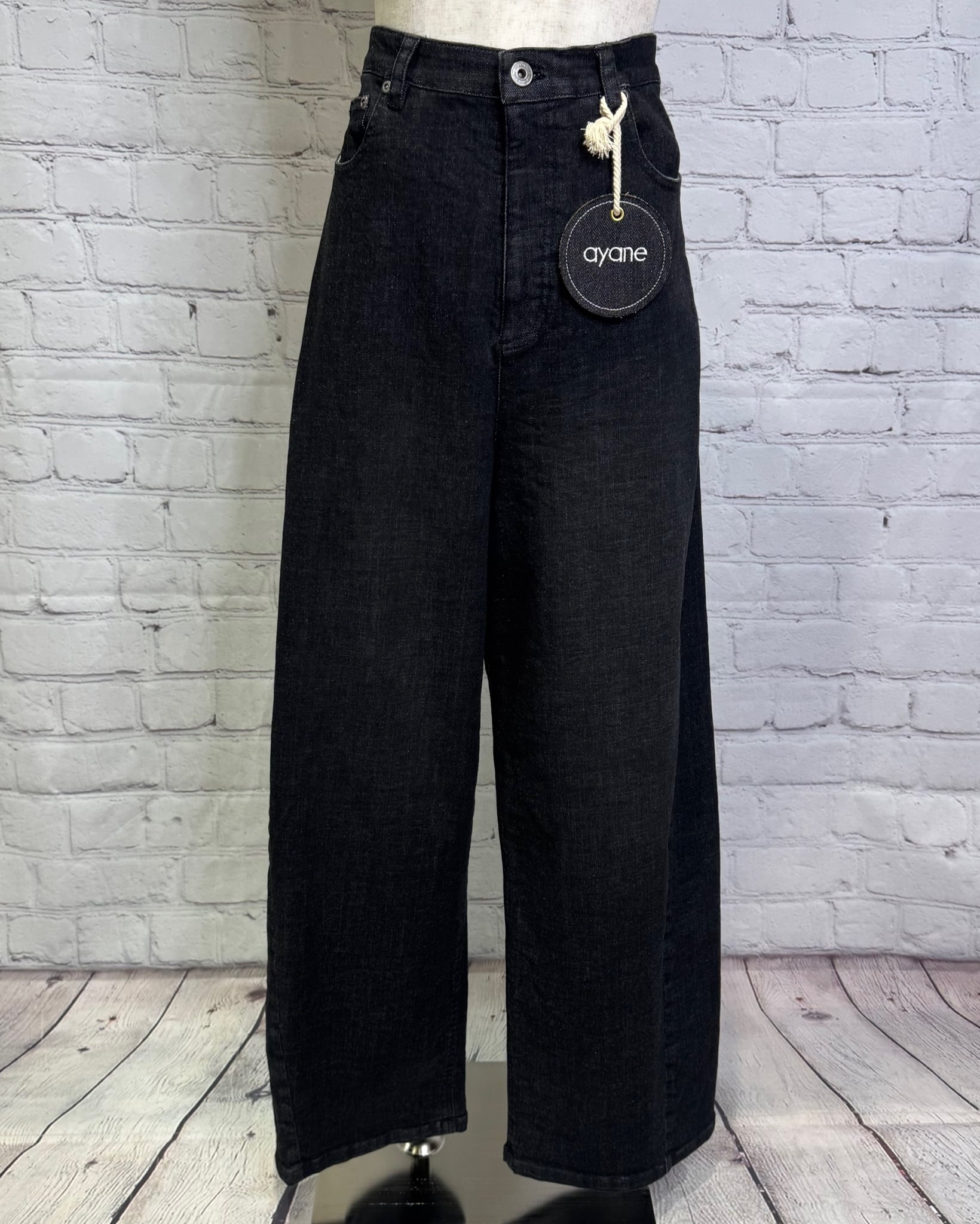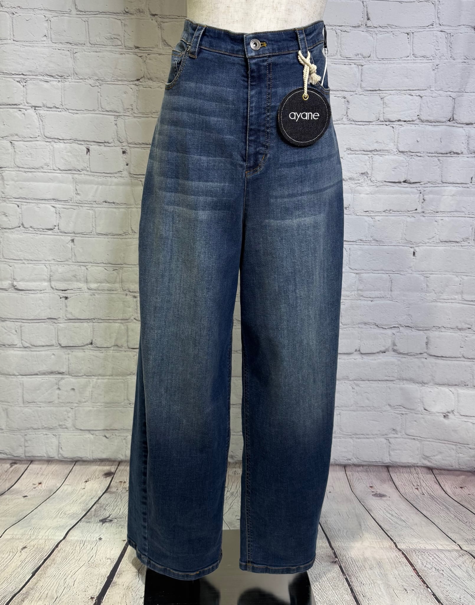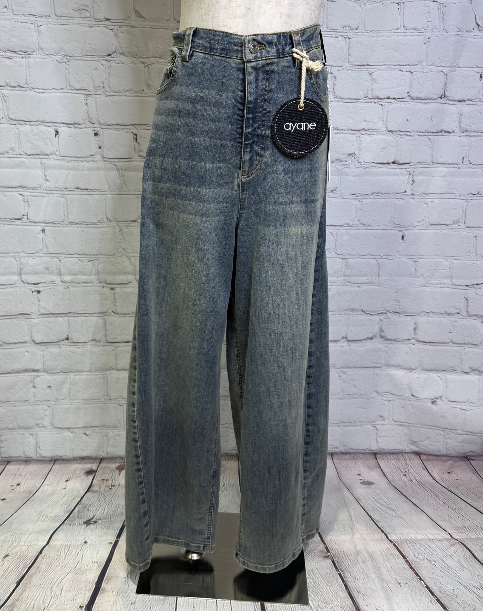 ayane大人気のペイント加工バレルレッグパンツの無地バージョンが登場です!より、コーディネートしやすくなりました。ストレッチ性に富んだとても履きやすいデニムです。ウエスト裏側ゴムで楽ちん! ゆるい時はayaneの大人気アイテムのゴムベルト(896107)のご利用おすすめです♪