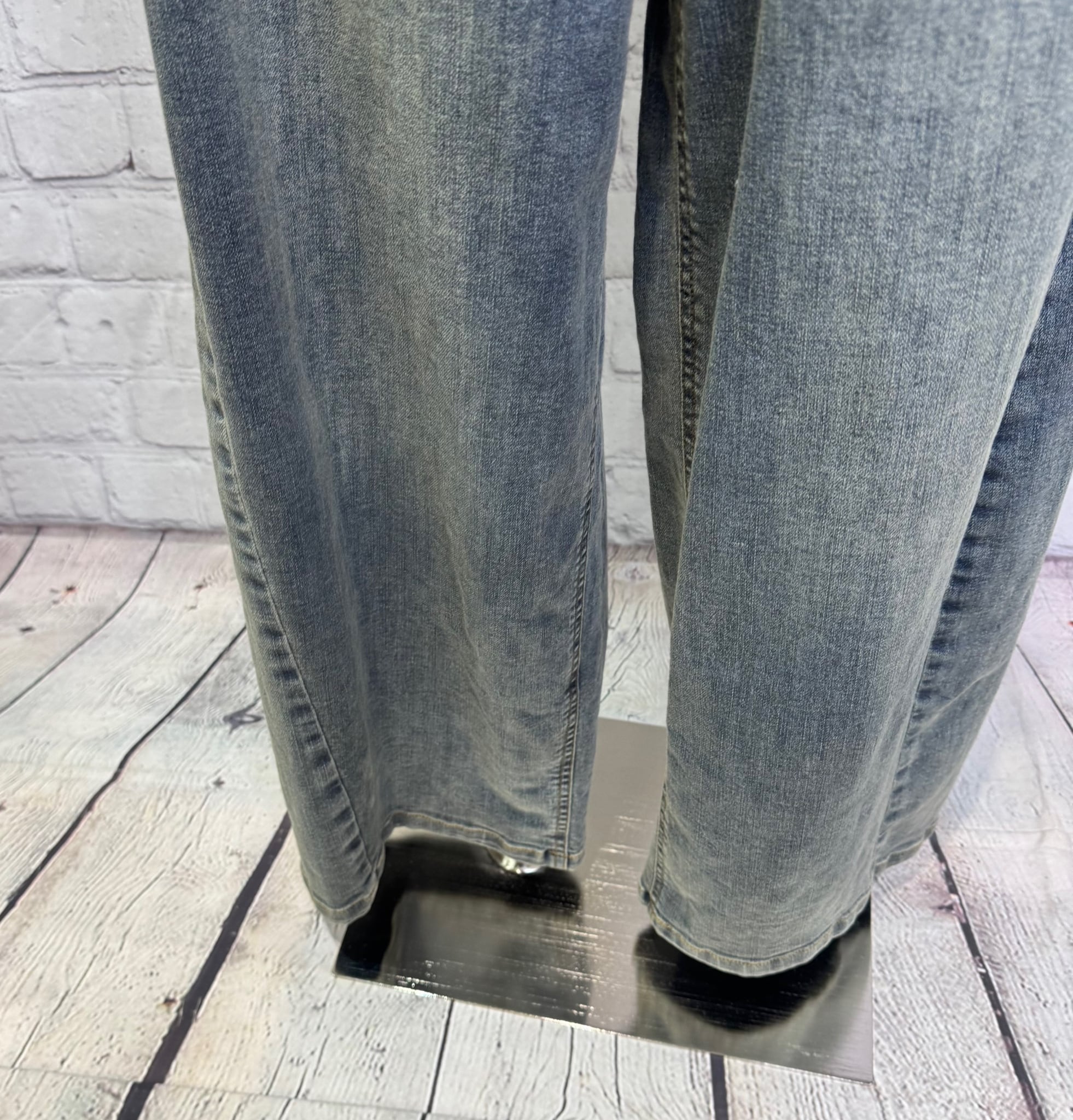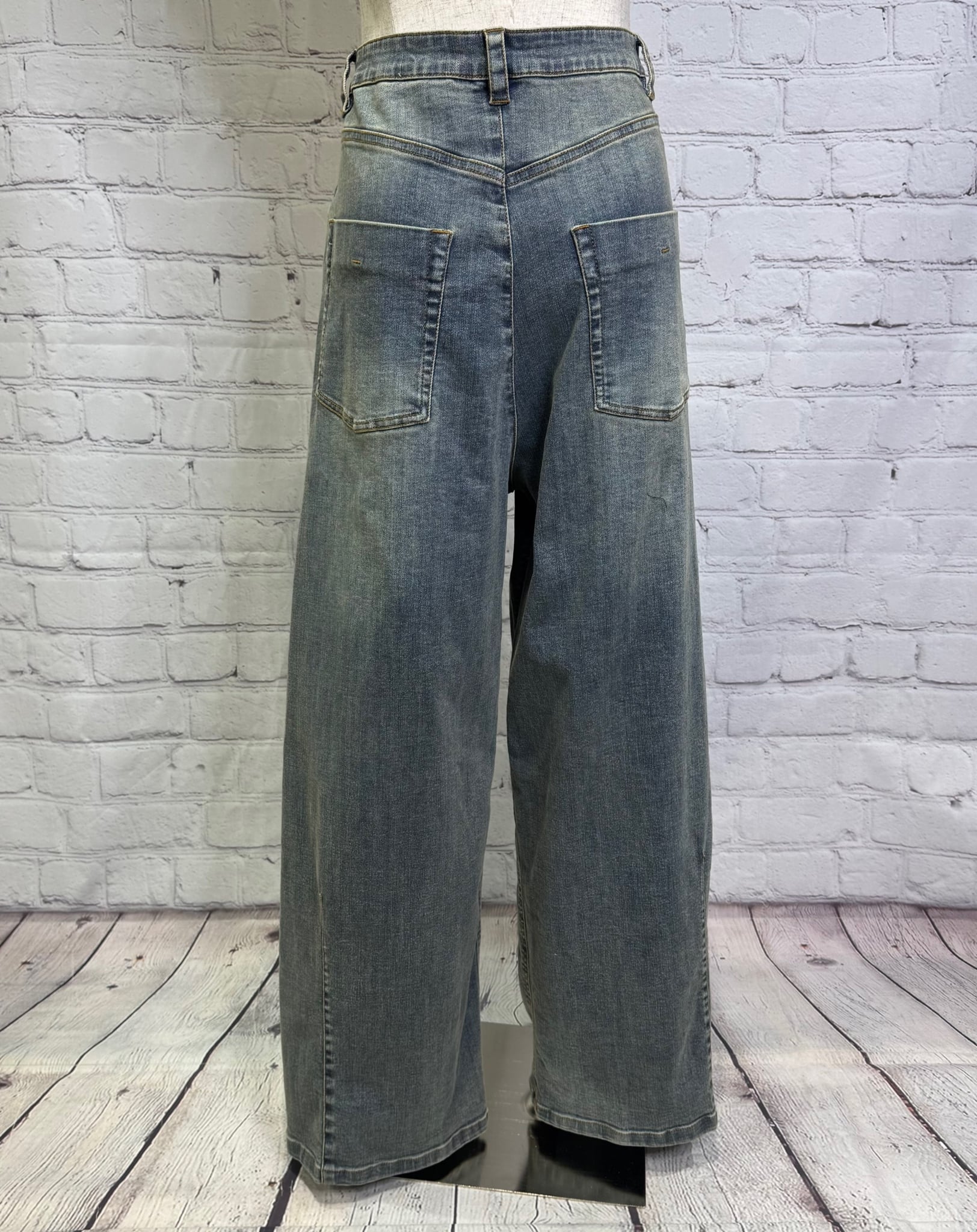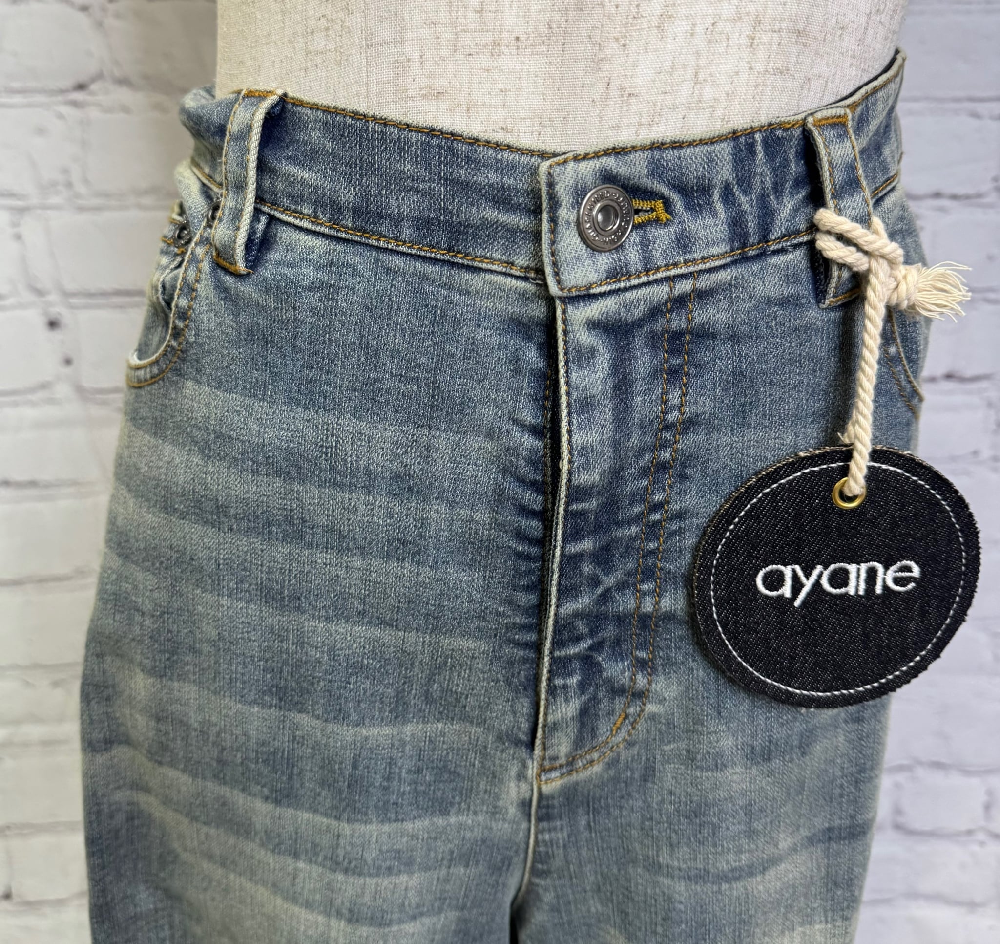 ayane大人気のペイント加工バレルレッグパンツの無地バージョンが登場です!より、コーディネートしやすくなりました。ストレッチ性に富んだとても履きやすいデニムです。ウエスト裏側ゴムで楽ちん! ゆるい時はayaneの大人気アイテムのゴムベルト(896107)のご利用おすすめです♪