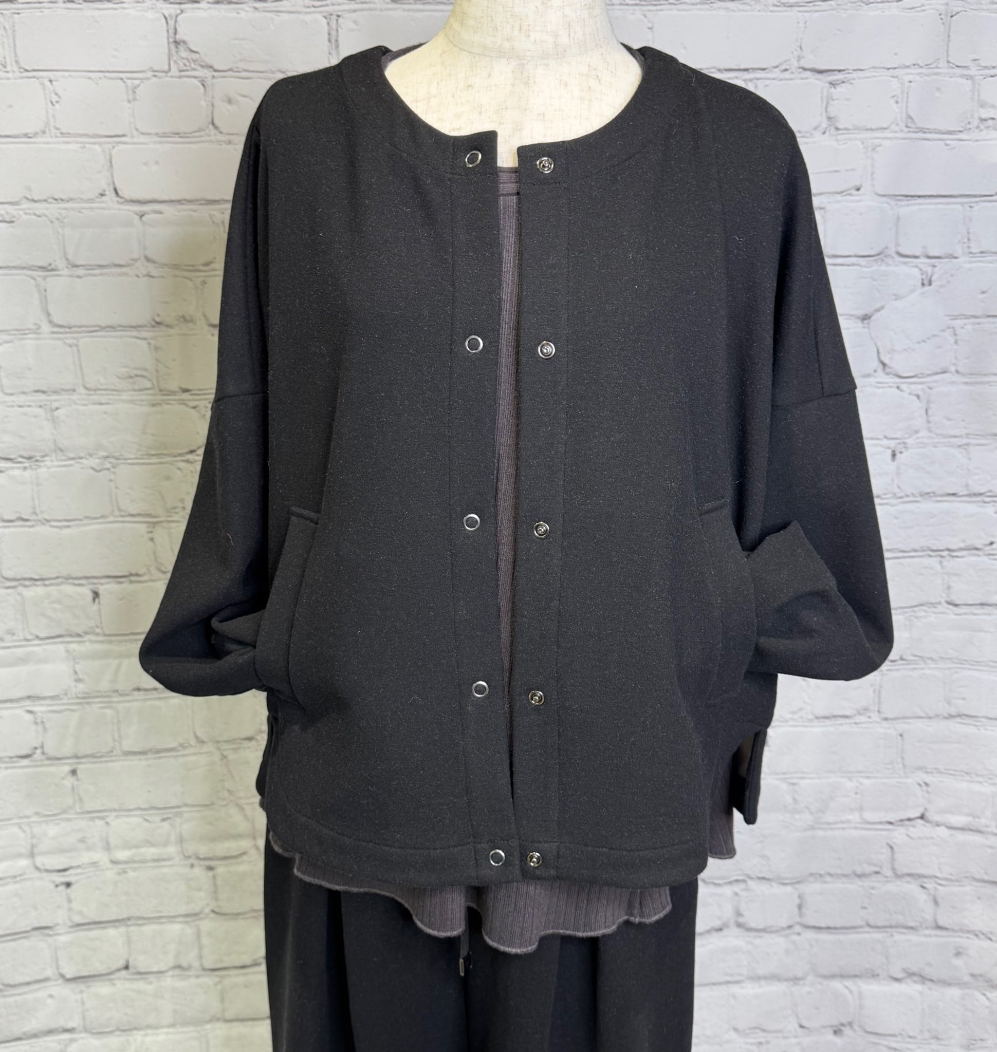注目の新素材、ウォーム感のあるモチモチ系の素材です。ちょうど良い肉感と気持ちの良い肌触りの高級生地を使った、シンプルなデザインのカーディガンです。ポケットあり。同色同素材のワイドパンツ(896123)とセットアップコーデもできます。お家で洗えます。