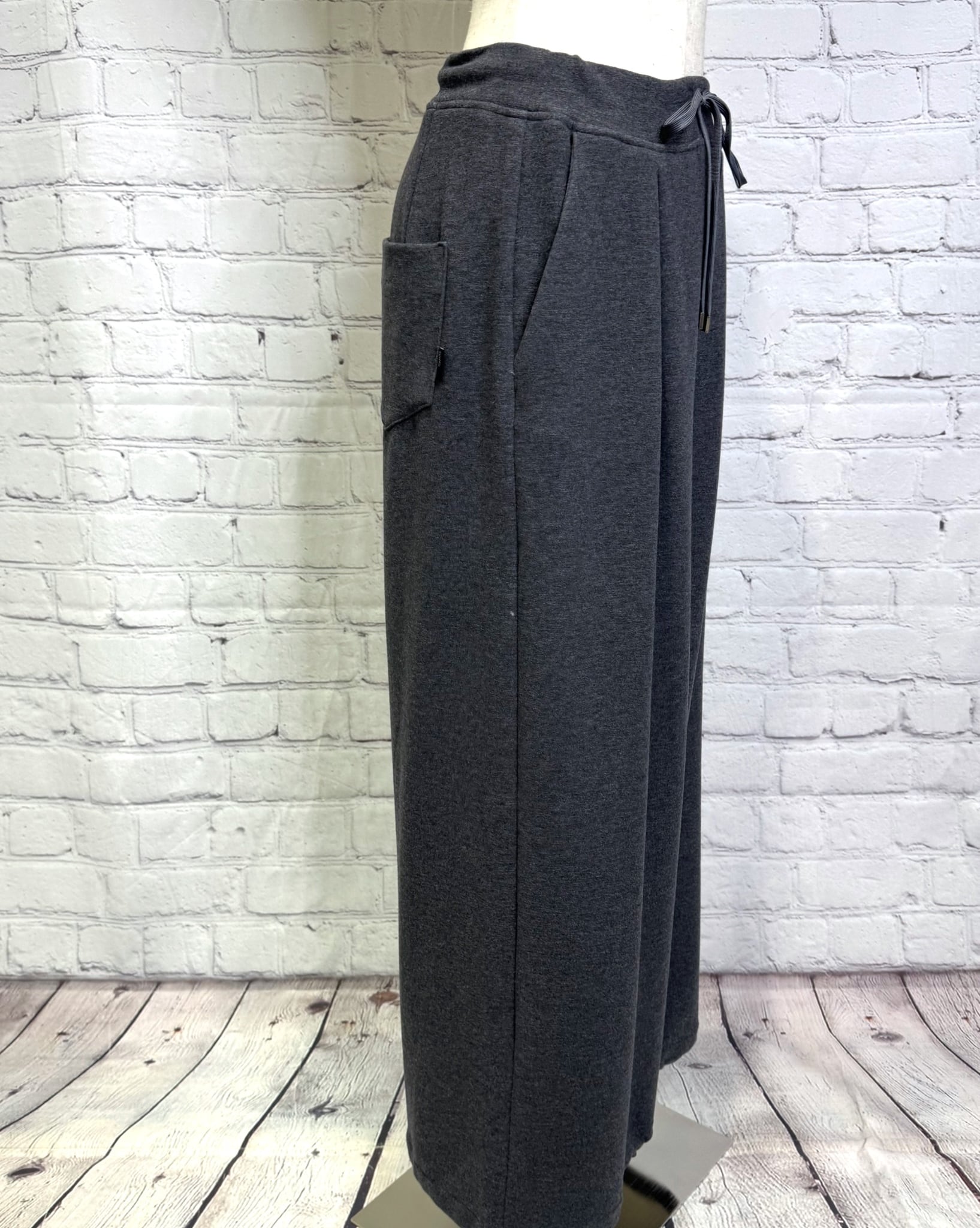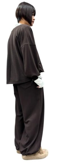 注目の新素材、ウォーム感あるモチモチ系の素材です。ちょうど良い肉感と気持ちの良い肌触りの高級生地を使った、ゆったりしたワイドパンツです。裾内側ドロストで裾絞れますので、きれいめにもカジュアルにも着用いただけます。ウエスト紐で調節できます。同色同素材のカーディガン(896122)とセットアップコーデできます。お家で洗えます。