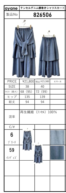 [予約販売] ayane アヤン テンセルデニム腰巻きシャツスカート 826506 (4/中〜末入荷予定)