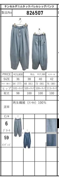 [予約販売] ayane アヤン テンセルデニムタックバレルレッグパンツ 826507 (4/中〜末入荷予定)